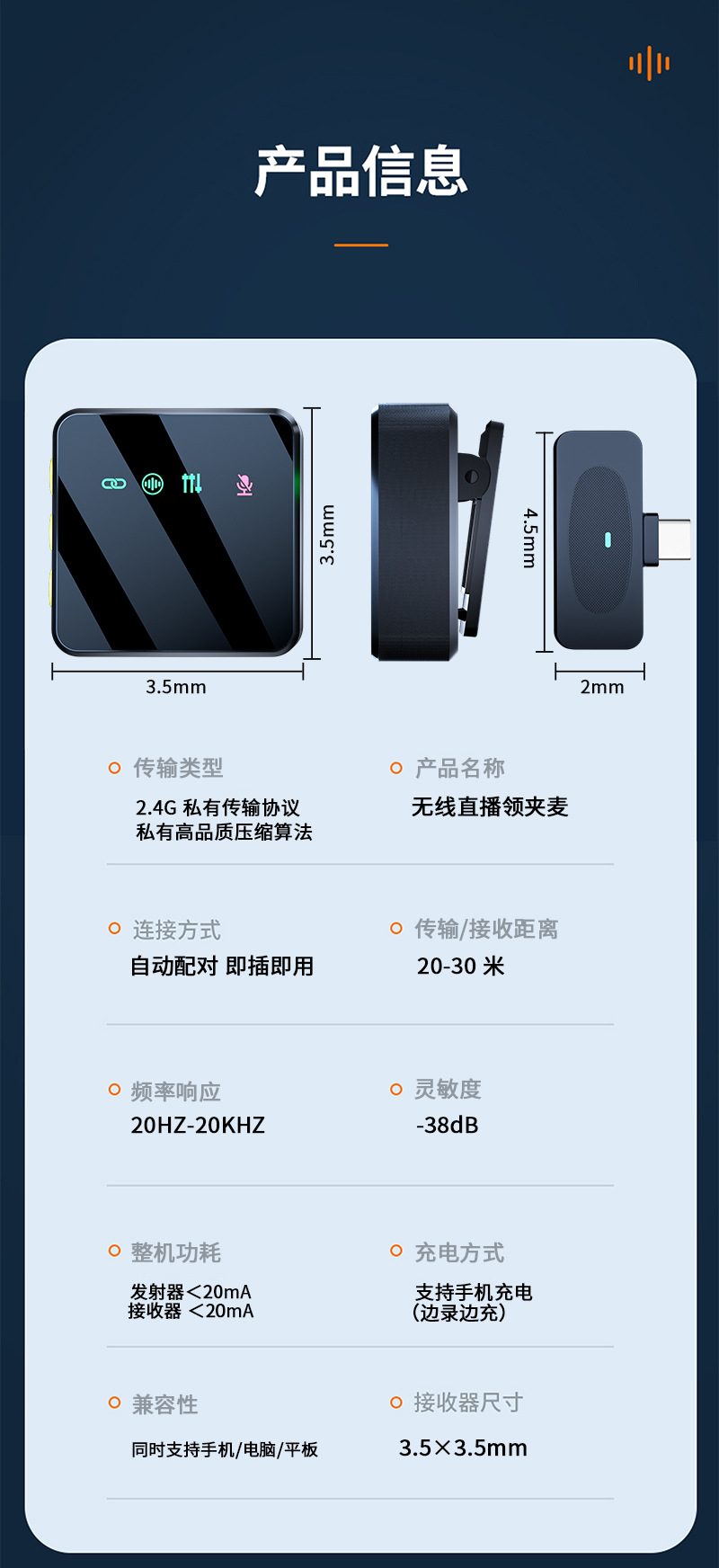 새로운 무선 칼라 클립 마이크 지능형 소음 감소 전문 라디오 야외 라이브 오디오 사운드 카드 미니 마이크
