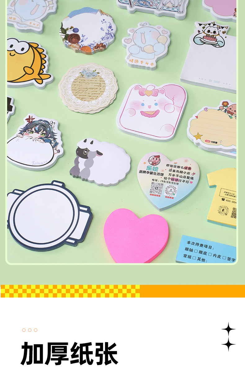 맞춤형 특수 모양의 강력 접착 스티커 메모지, 종이 카드가 포함된 고급 스티커 메모지, 학생들에게 보상으로 주는 멋진 디자인의 스티커 메모지스토어 가기
