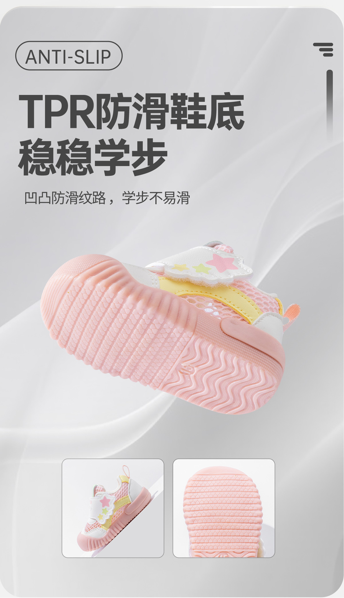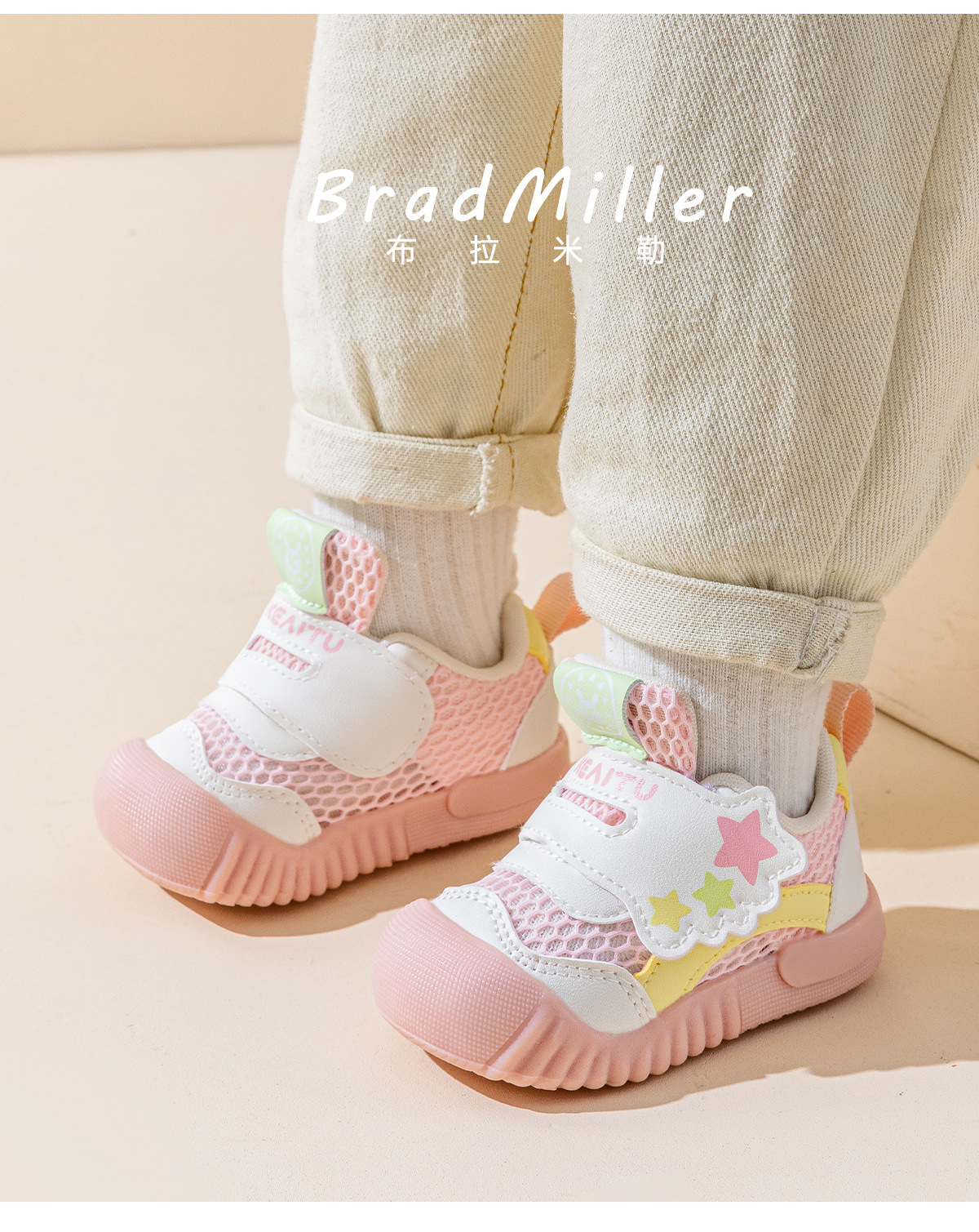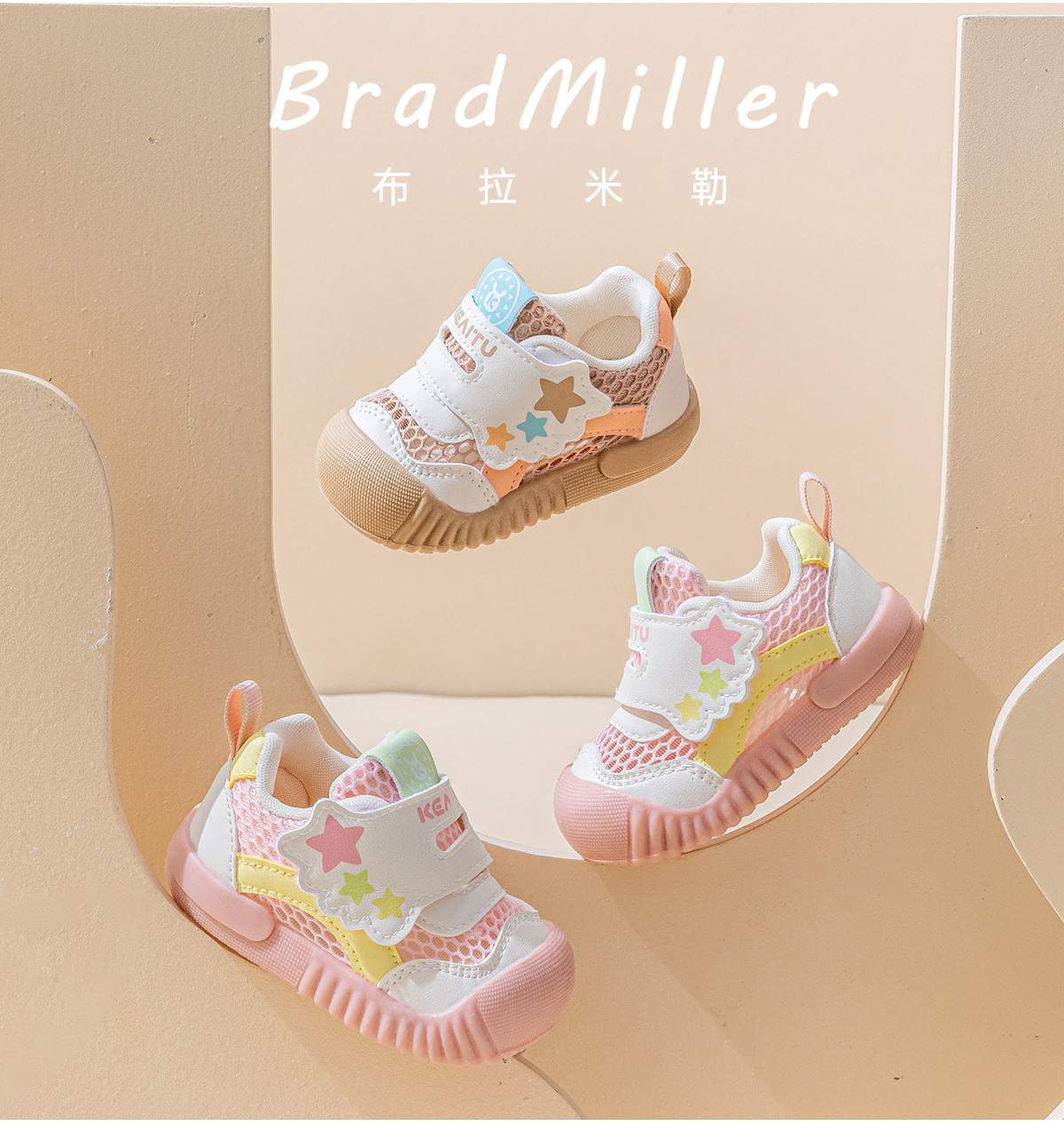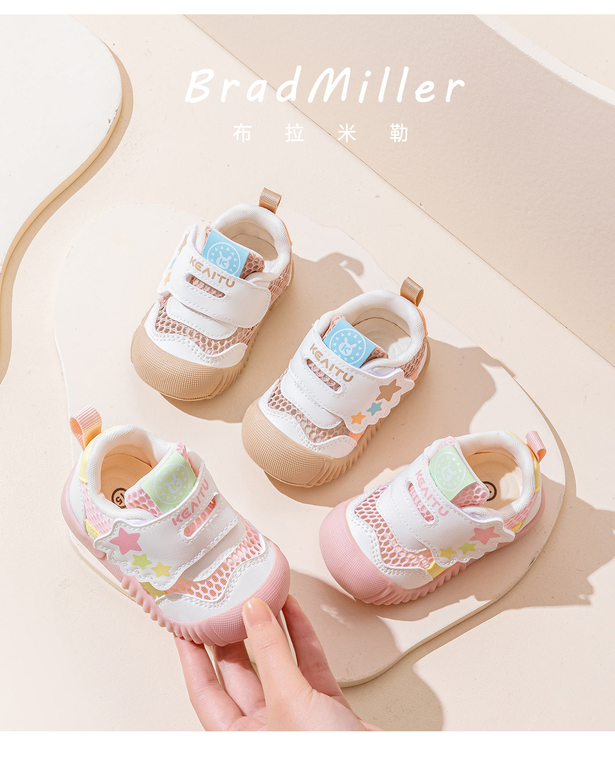 봄과 여름 새로운 2025 아기 소녀 유아 신발 여성의 유아 미끄럼 방지 신발 남성 그물 신발 통기성 아기 신발스토어 가기