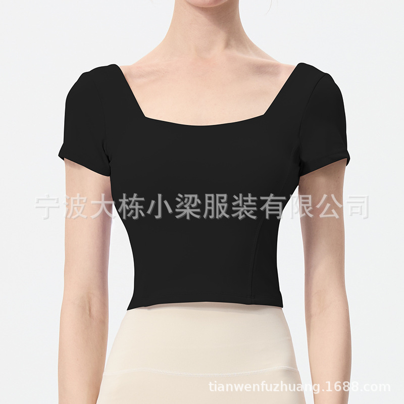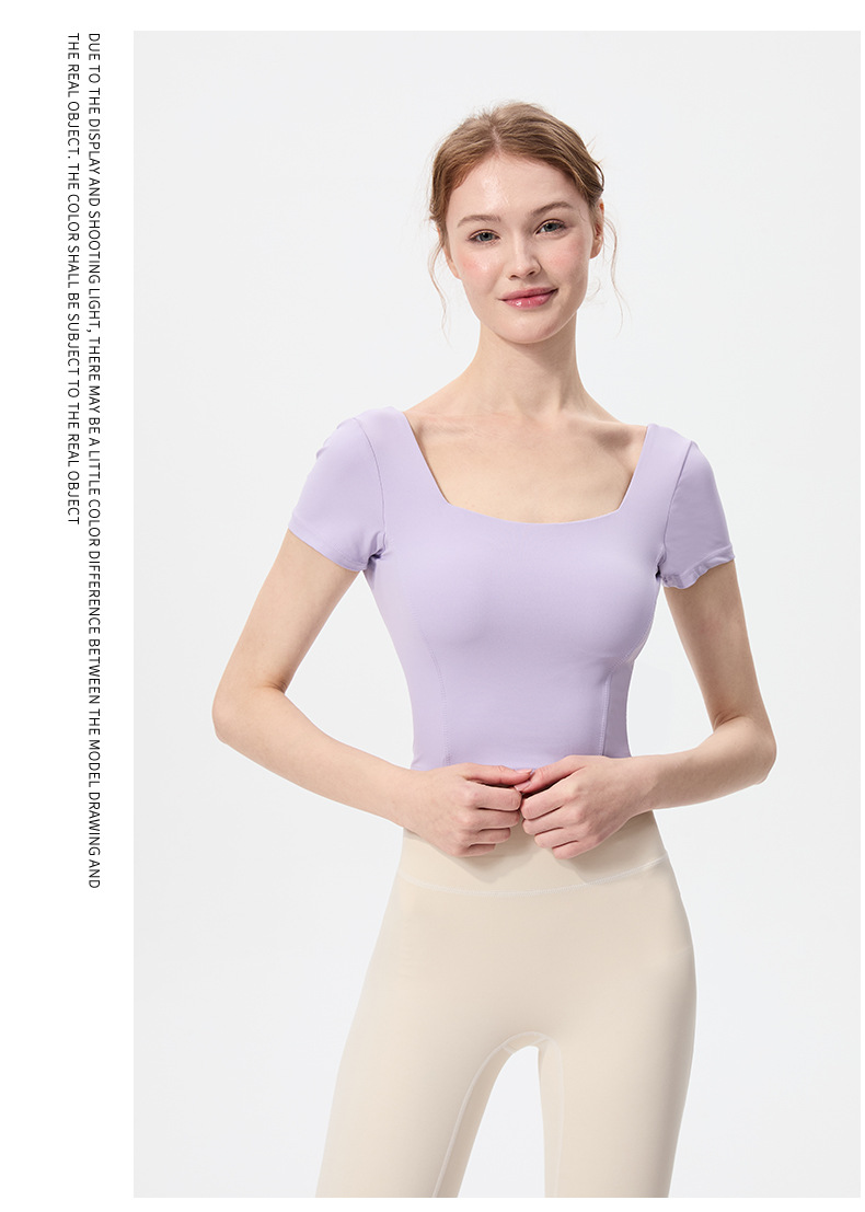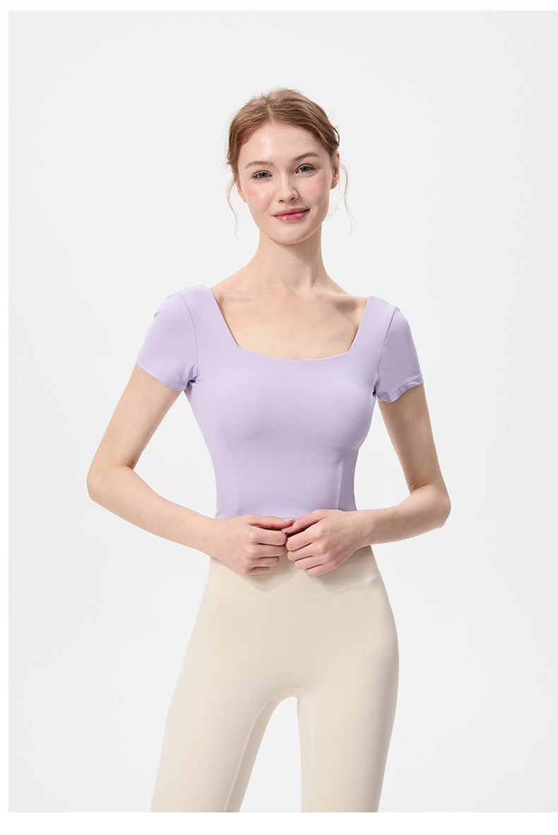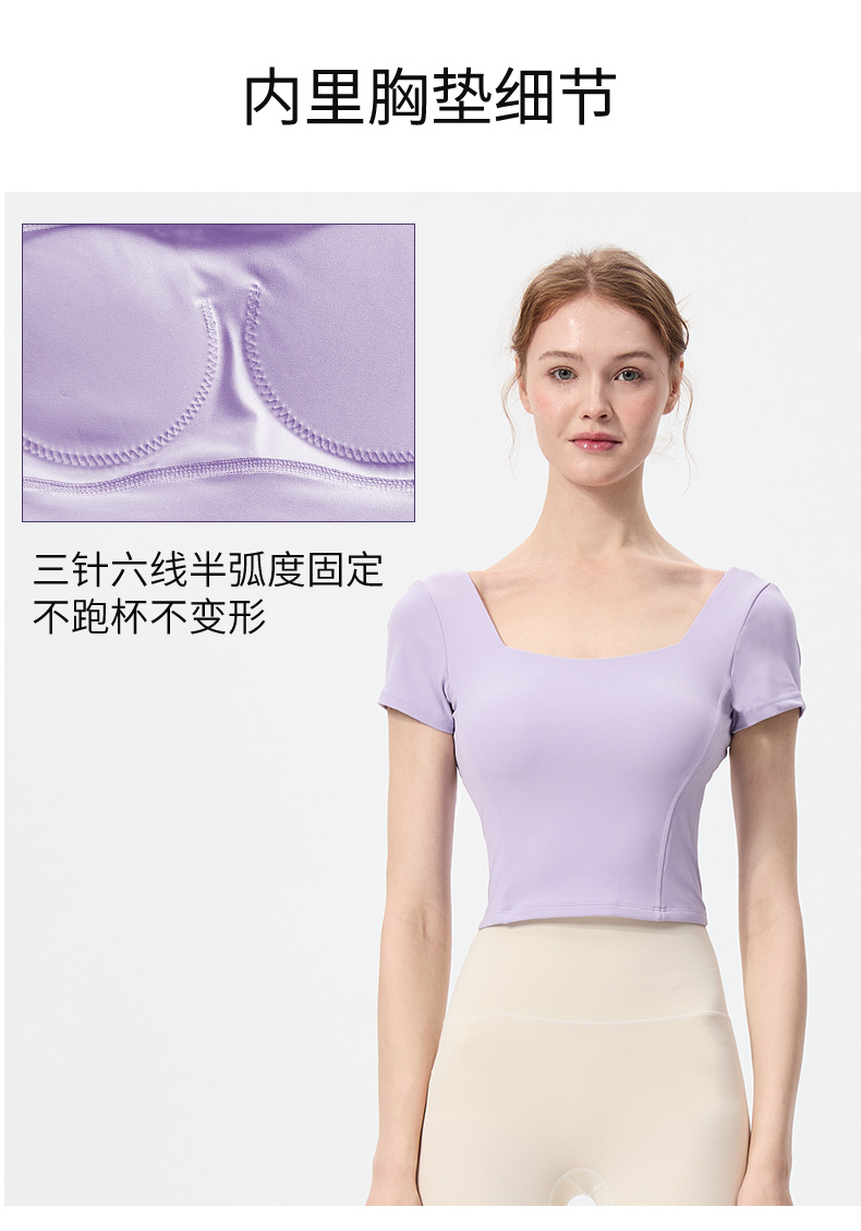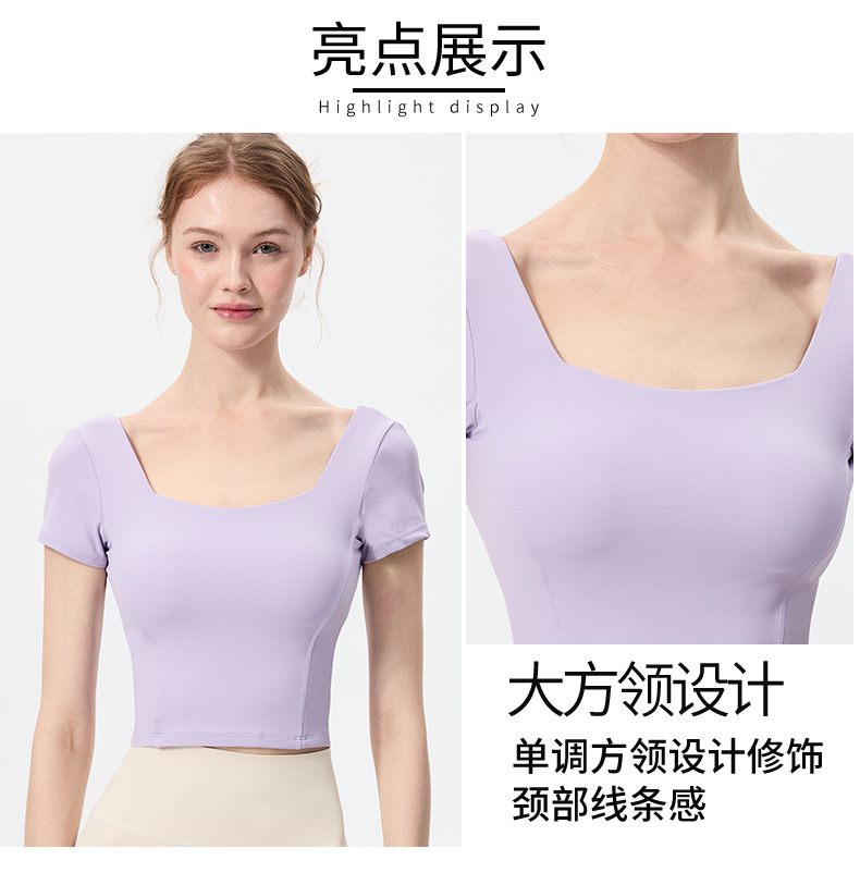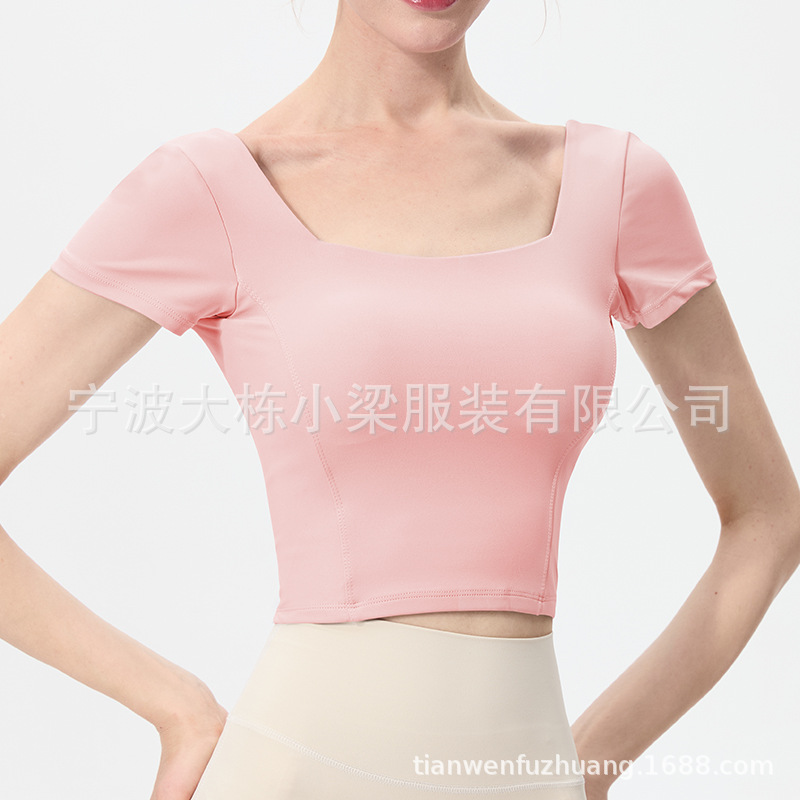 스포츠 반팔 여성 원피스 컵 탄성 충격 방지 피트니스 러닝 티셔츠 섹시한 대형 백리스 요가 옷 반팔 슬림