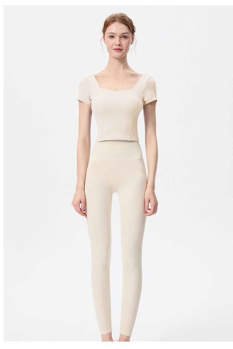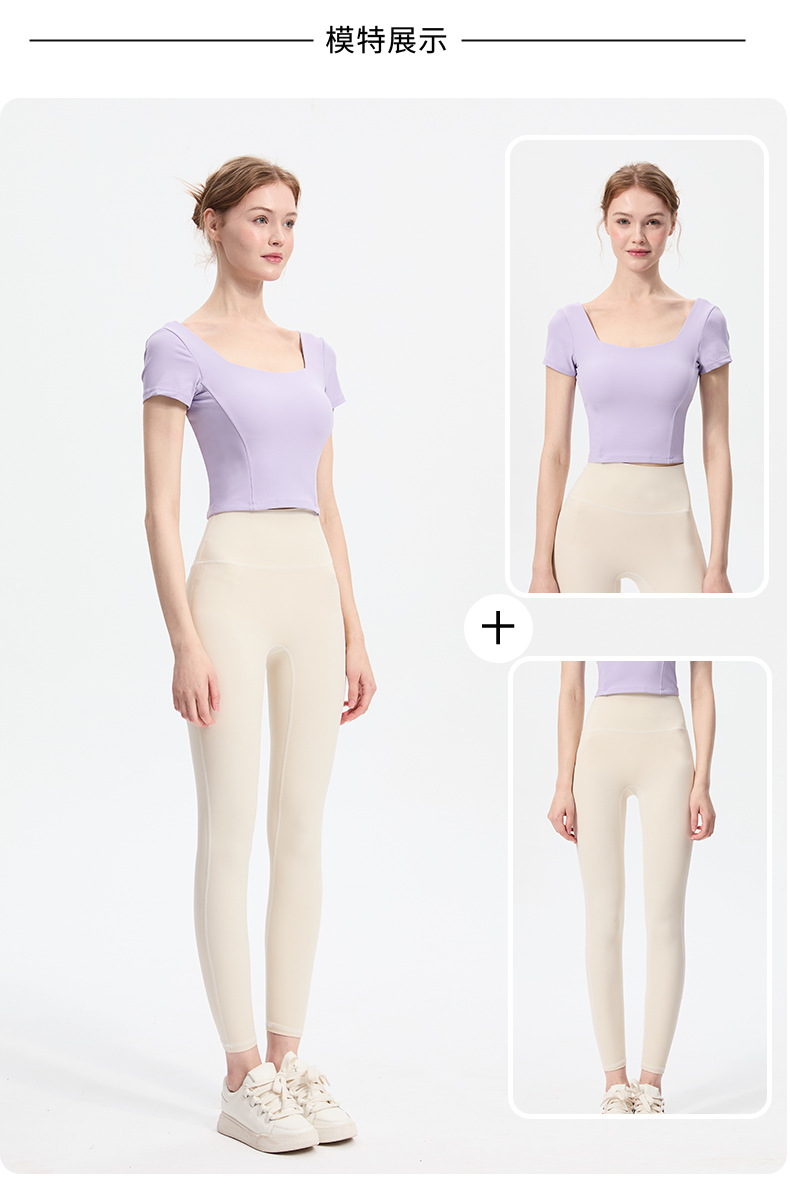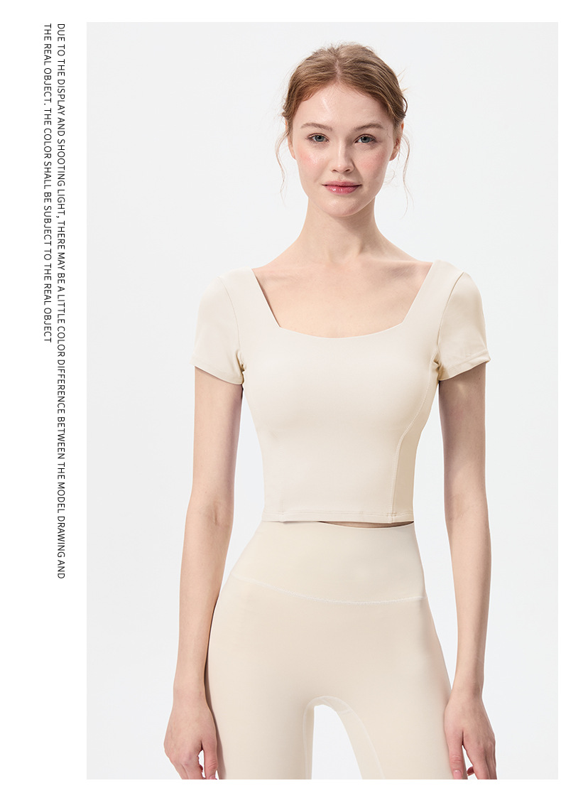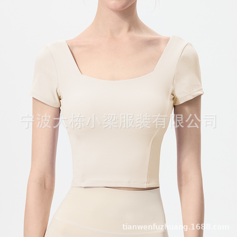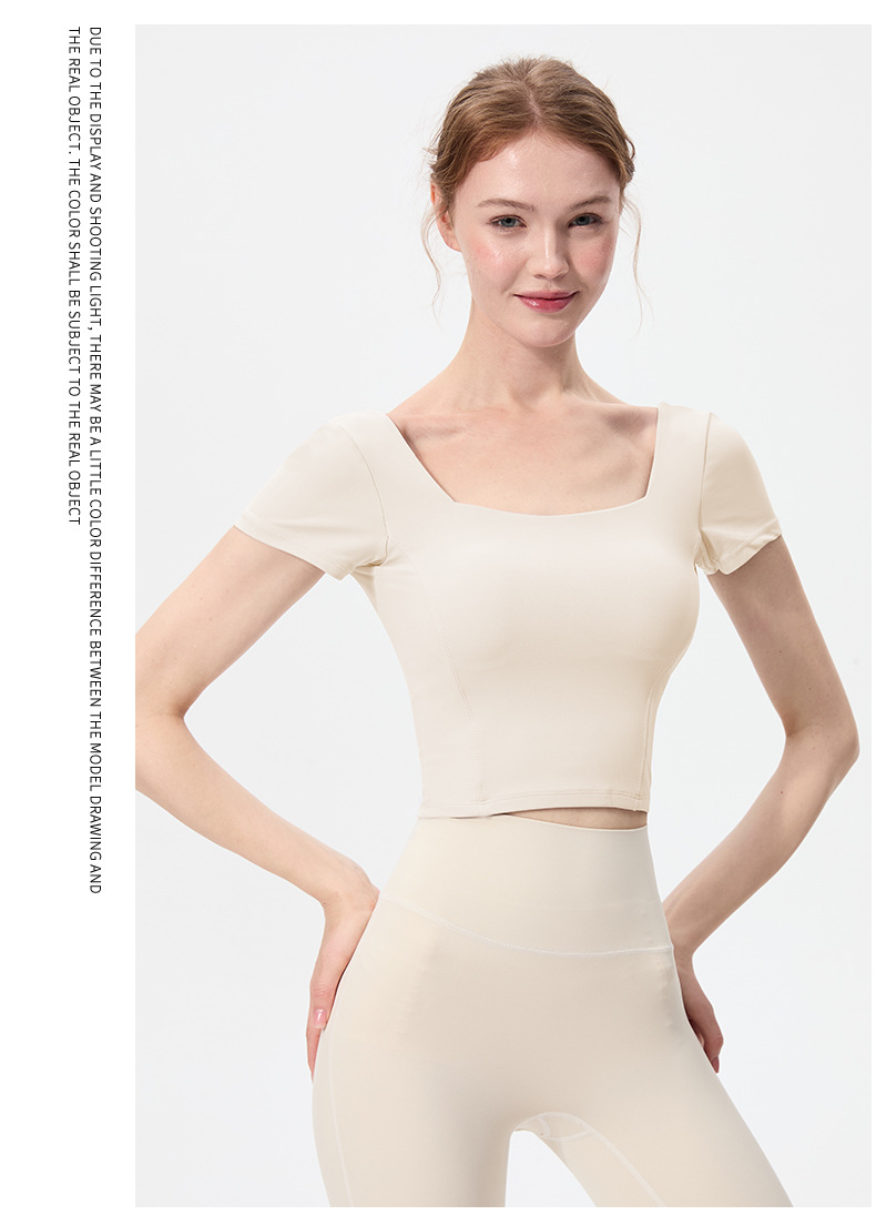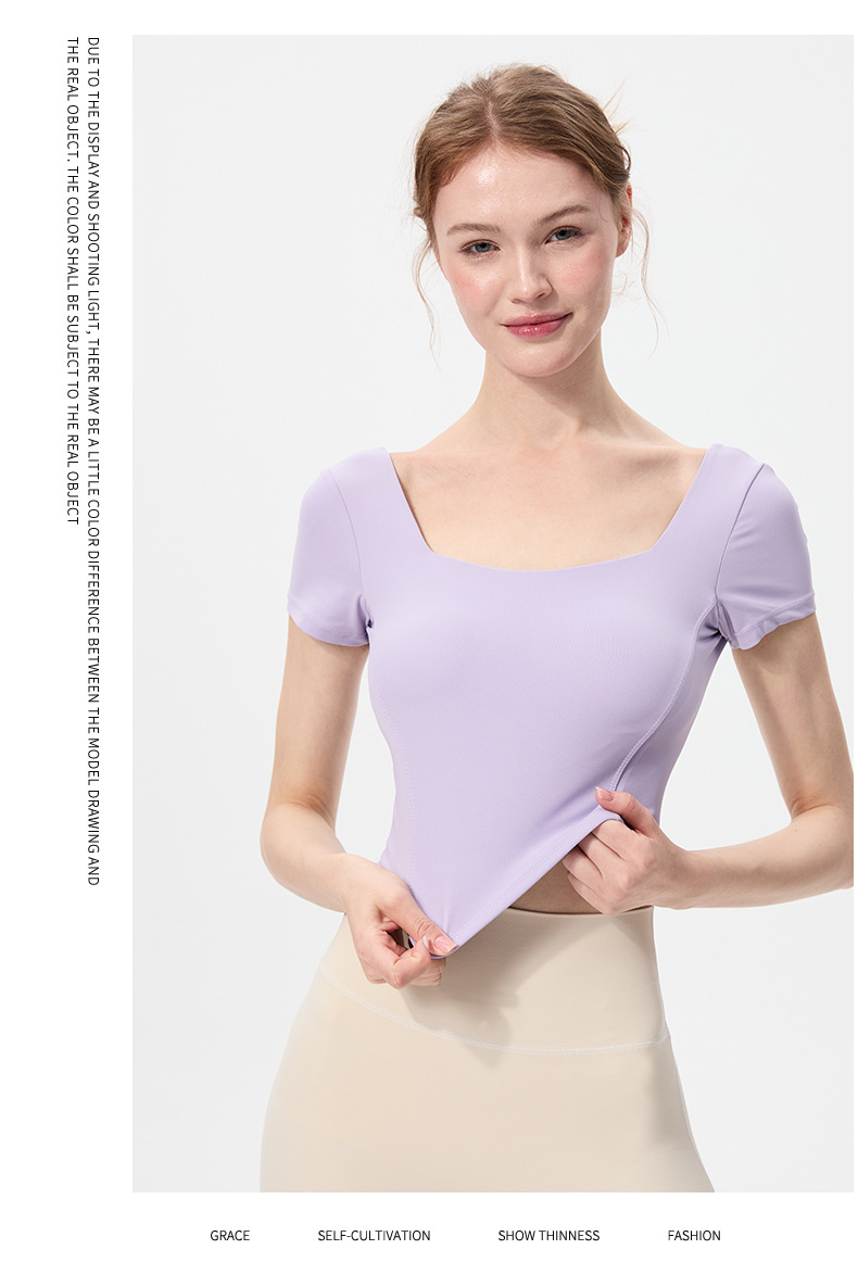 스포츠 반팔 여성 원피스 컵 탄성 충격 방지 피트니스 러닝 티셔츠 섹시한 대형 백리스 요가 옷 반팔 슬림