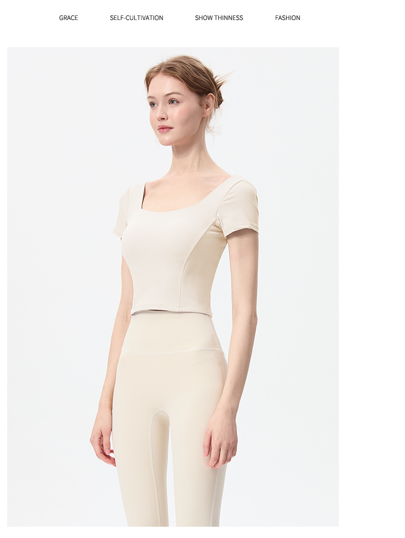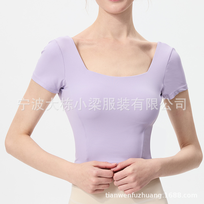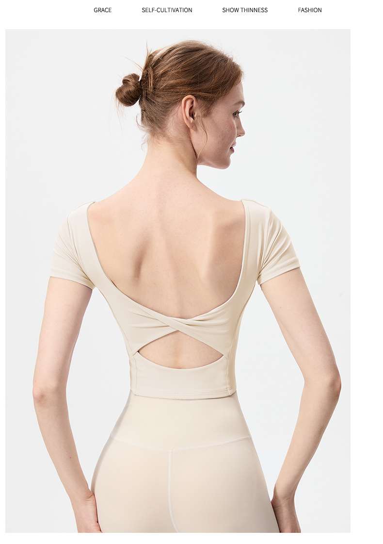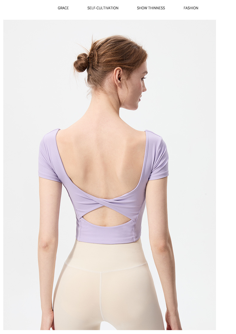 스포츠 반팔 여성 원피스 컵 탄성 충격 방지 피트니스 러닝 티셔츠 섹시한 대형 백리스 요가 옷 반팔 슬림스토어 가기