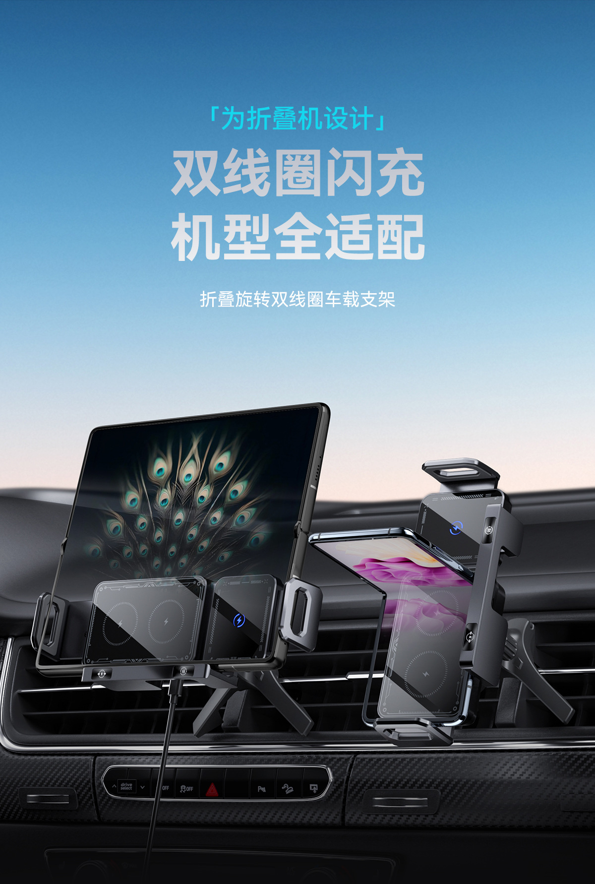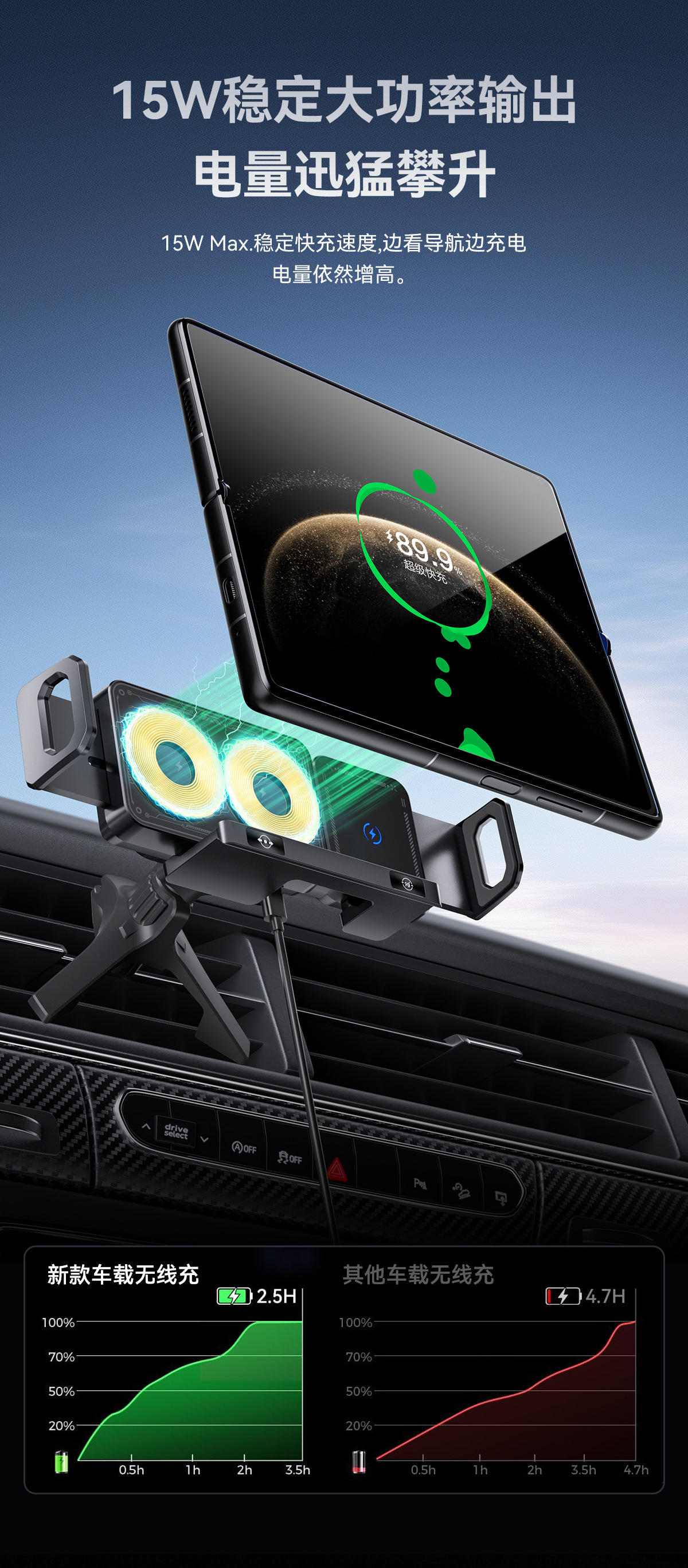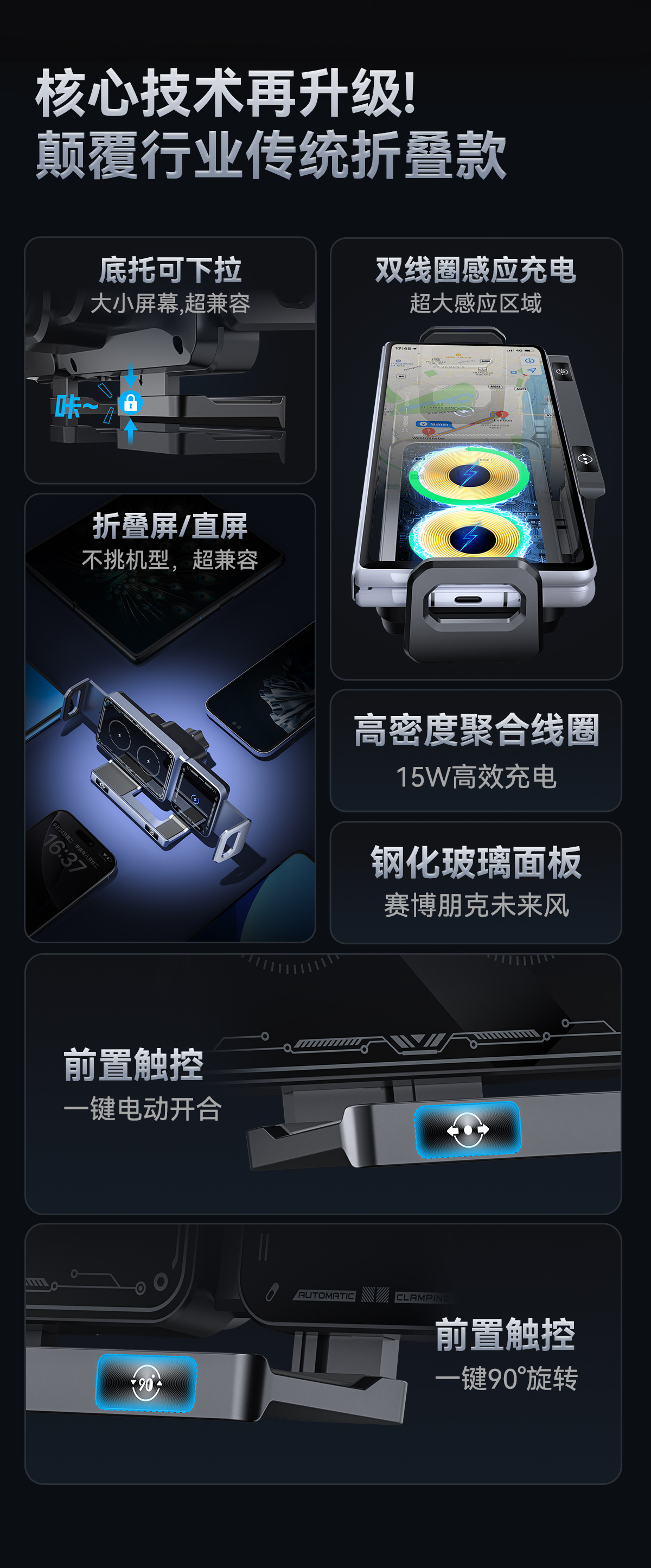 국경 접이식 스크린 자동차 브래킷 15W 무선 충전 콘센트 내비게이션 접이식 스크린 자동차 휴대 전화 브래킷 유니버설스토어 가기