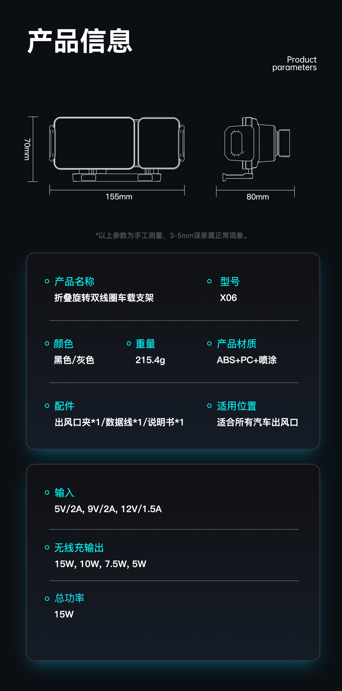 • [럭셔리 모델] X06 블랙 무선 충전 브래킷* 바브 삼각대