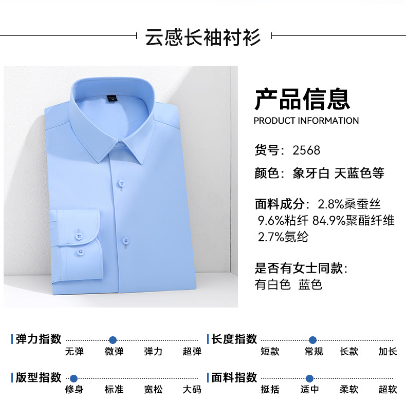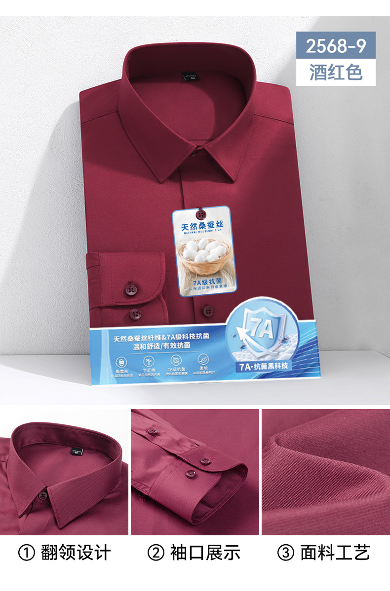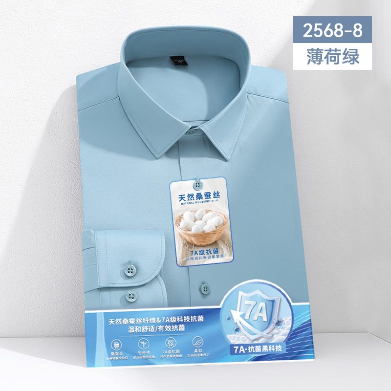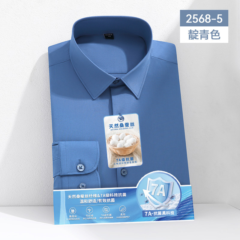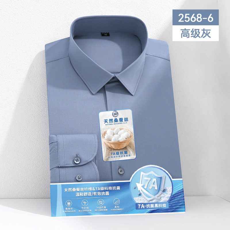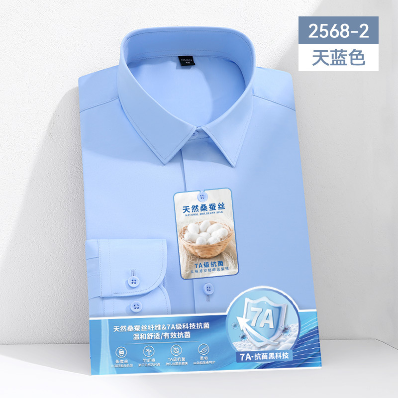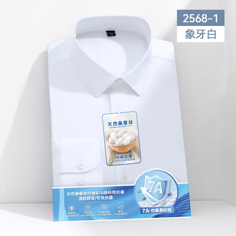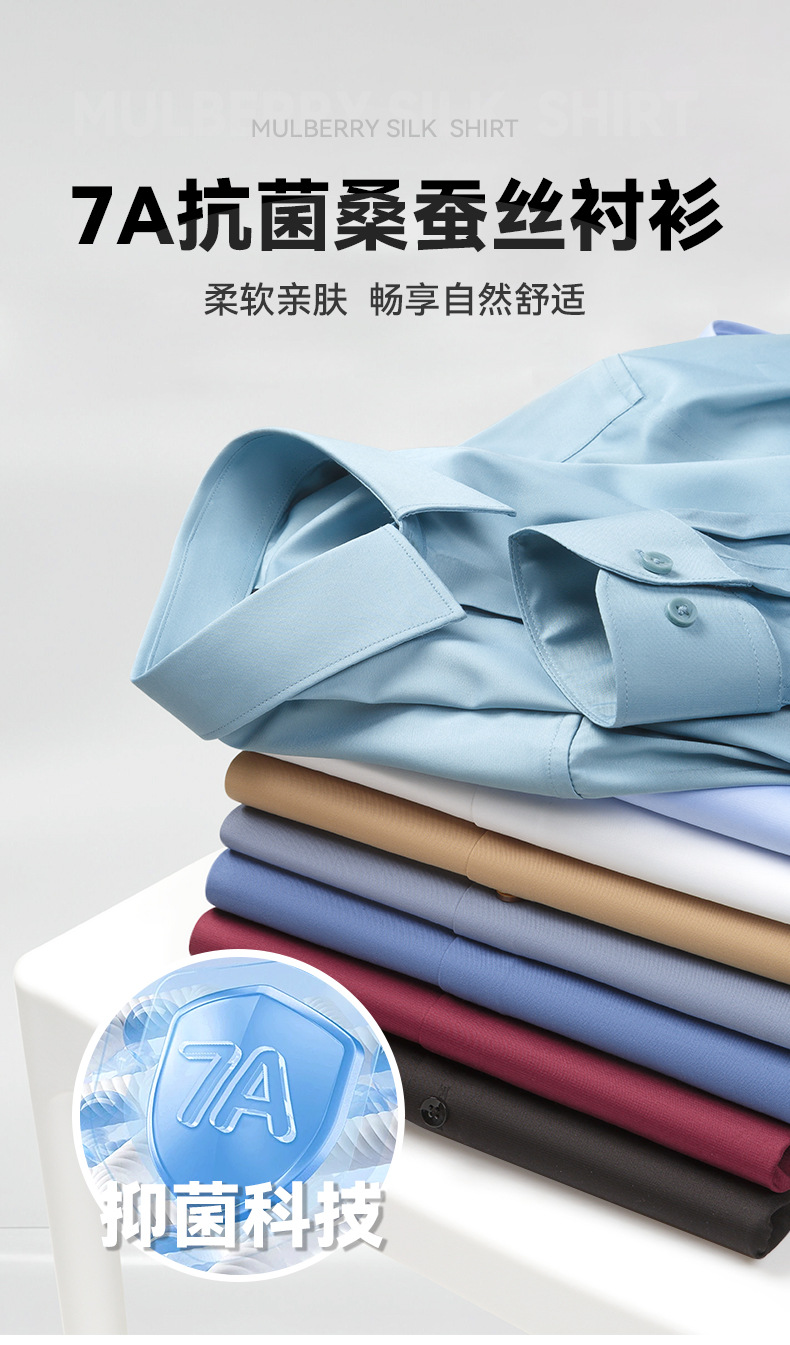 7A 항균 뽕나무 실크 셔츠 남성용 긴팔 비즈니스 캐주얼 화이트 셔츠 남성용 대나무 섬유 주름 방지 다리미 남성용 셔츠스토어 가기