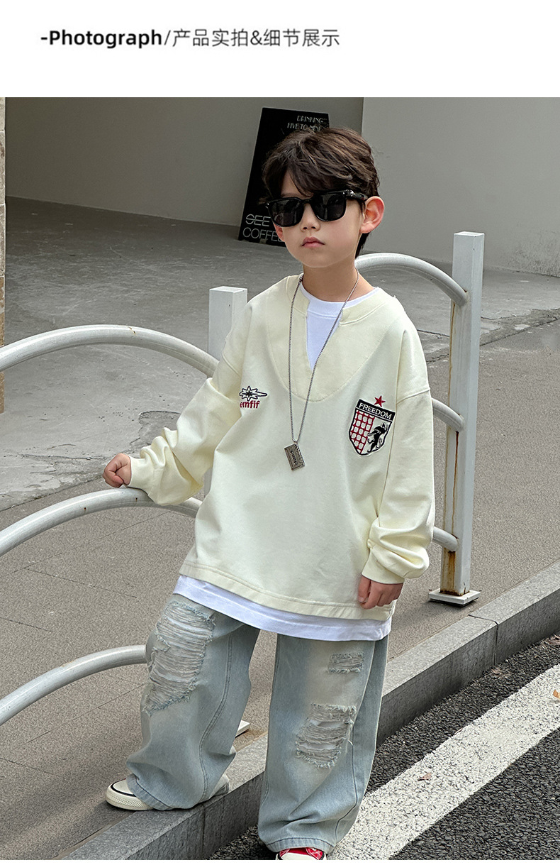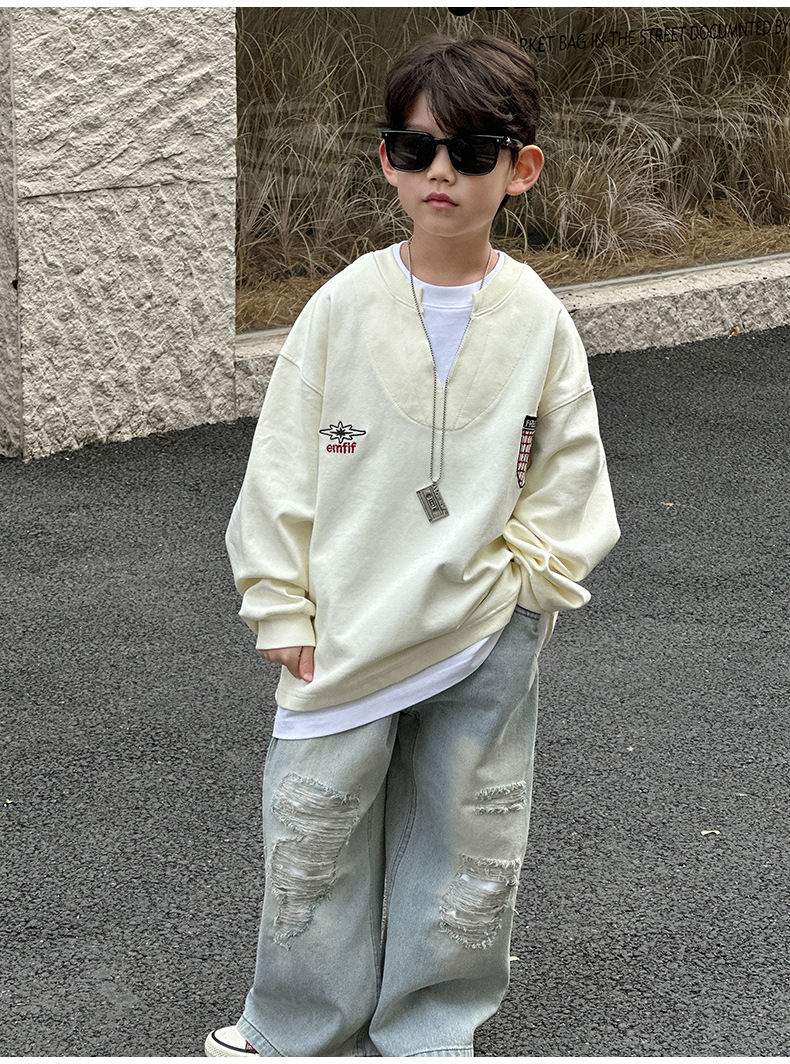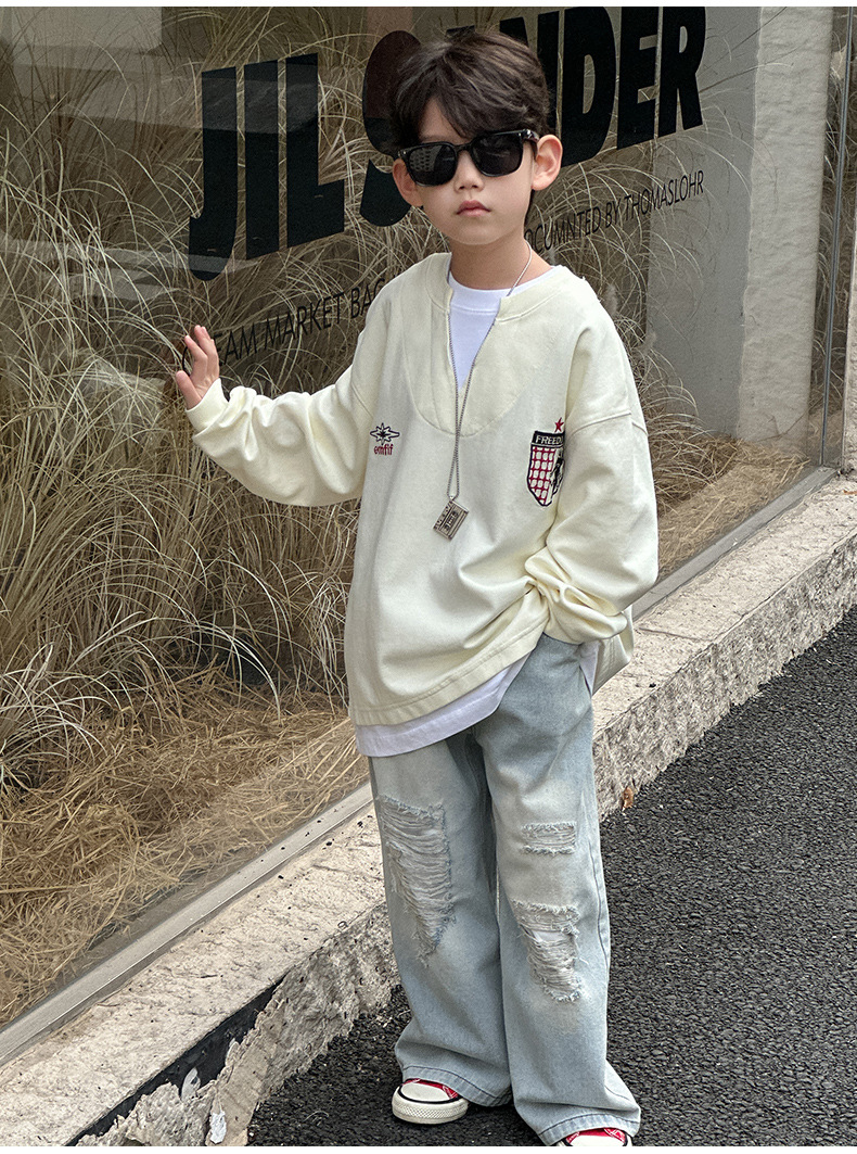 소년 찢어진 청바지 2025 봄 신작 어린이 한국 바지 중소형 어린이 봄 캐주얼 아동 바지스토어 가기