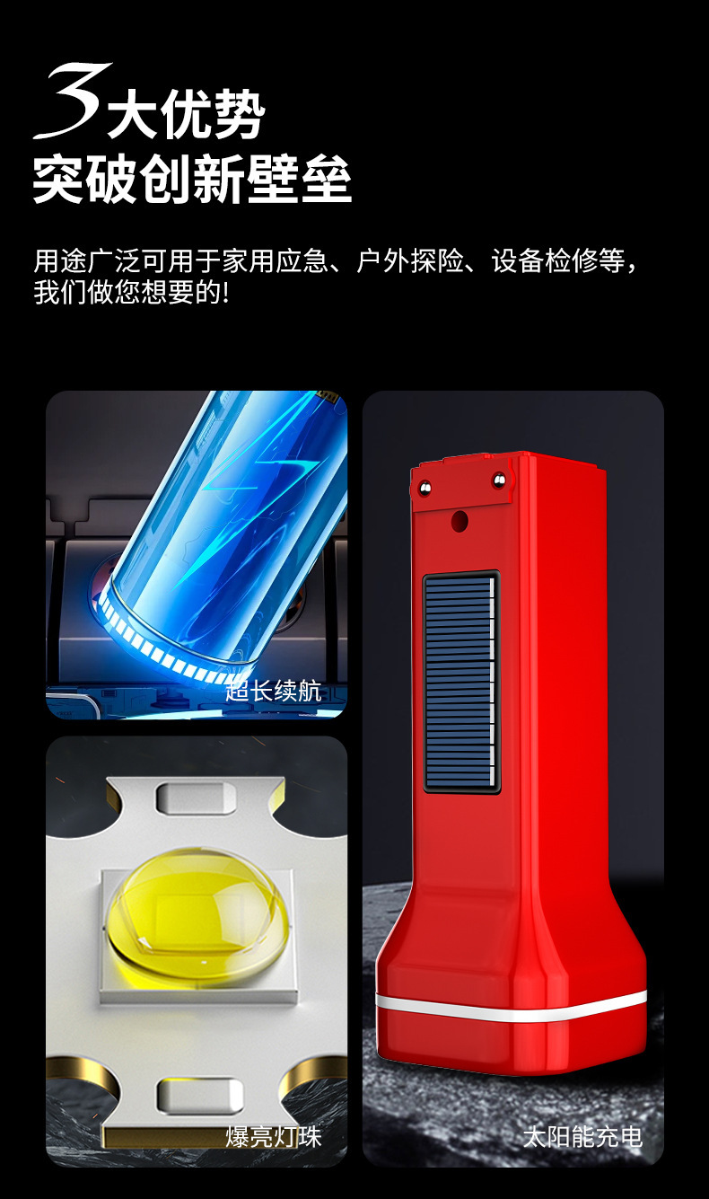 노인 가정을 위한 LED 태양 충전식 손전등 휴대용 충전식 새로운 하이라이트 에너지 절약 손전등