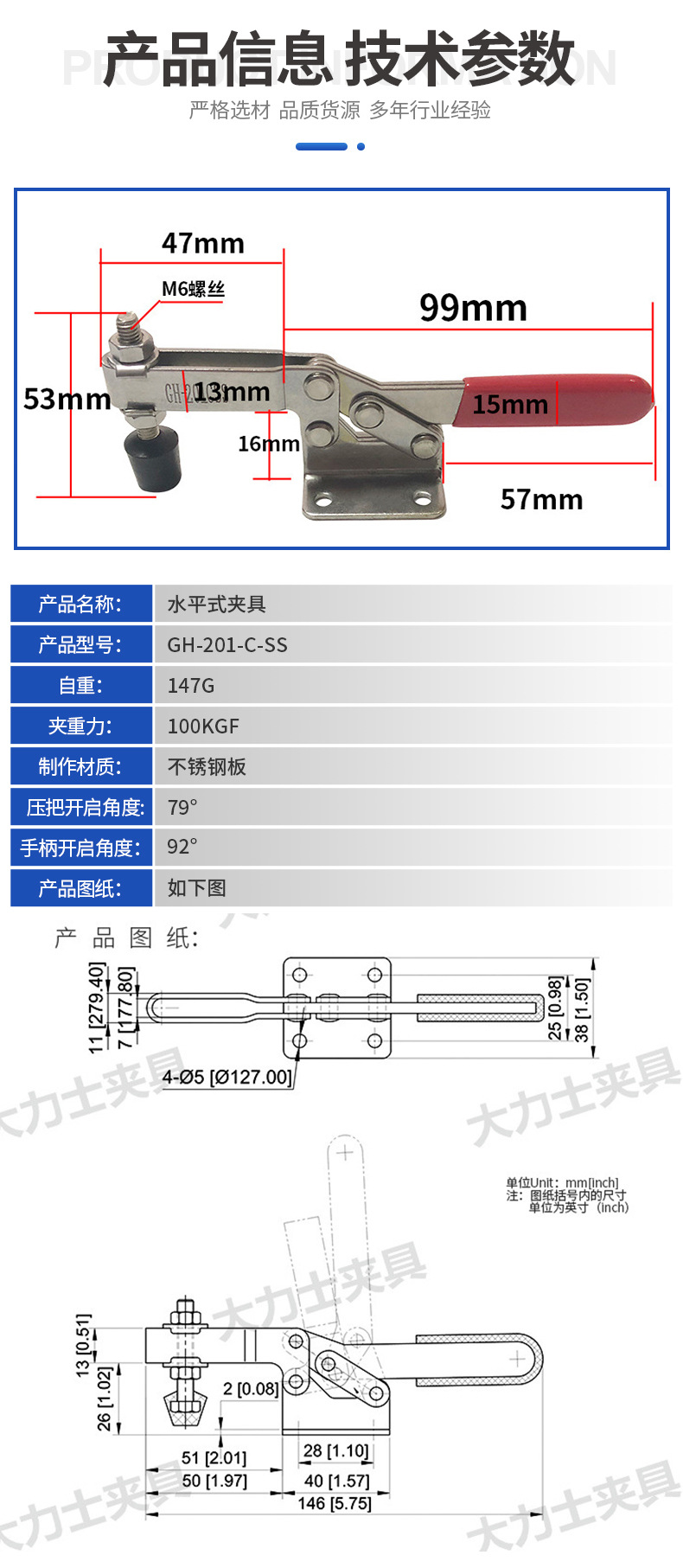 공장 직접 판매 헤라클레스 클램프 GH-201C-SS-WDC 스테인레스 스틸 수평 클램프 팔꿈치 클램프 퀵 클램프스토어 가기
