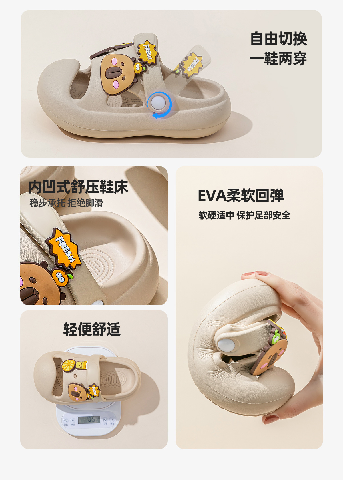 2025 여름 새로운 어린이 동굴 신발 여성 만화 미끄럼 방지 소형 및 중형 슬리퍼 남성용 아기 통기성 여름 샌들