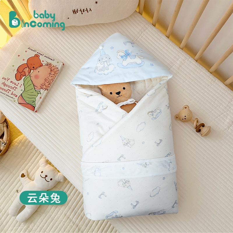 아기 코튼 퀼트 클래스 순수한 코튼 모자 방풍 외출 담요 만화 인쇄 신생아 Swaddle