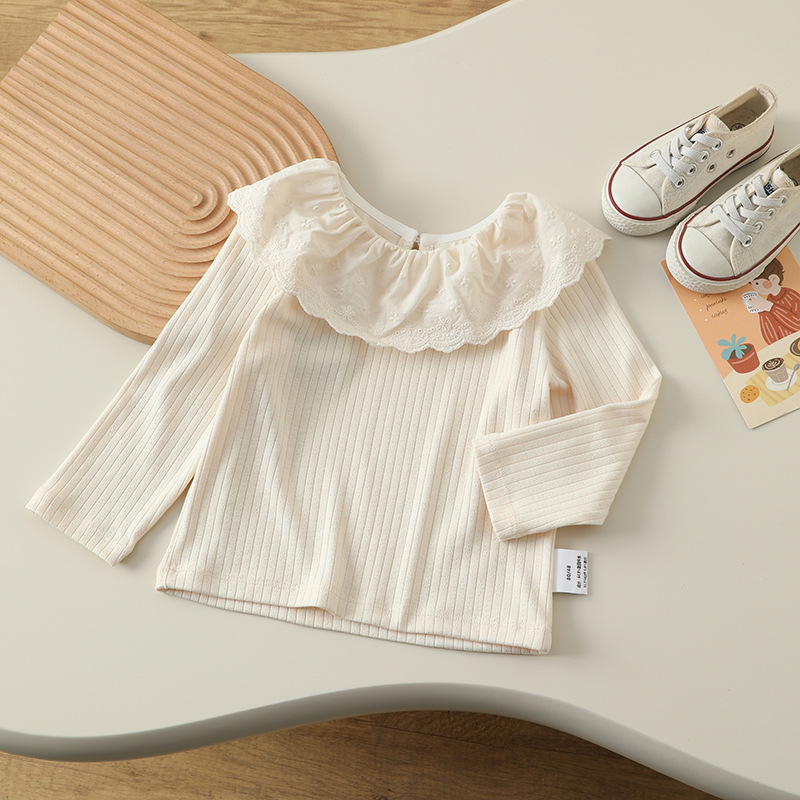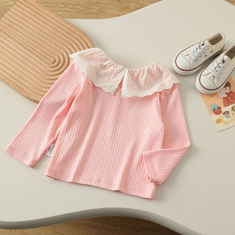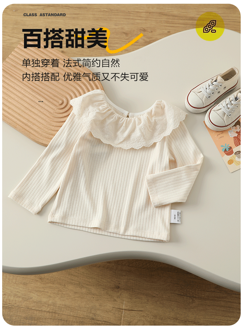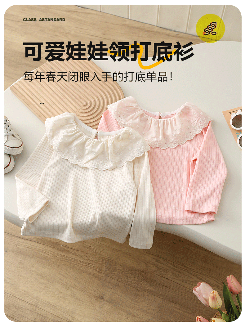 여아 봄 가을 긴팔 상의, 새로운 스타일의 연잎 칼라, 다용도 여아 베이비 레이어드 셔츠, 아동 레이어드 셔츠, 봄철 얇은 모델스토어 가기