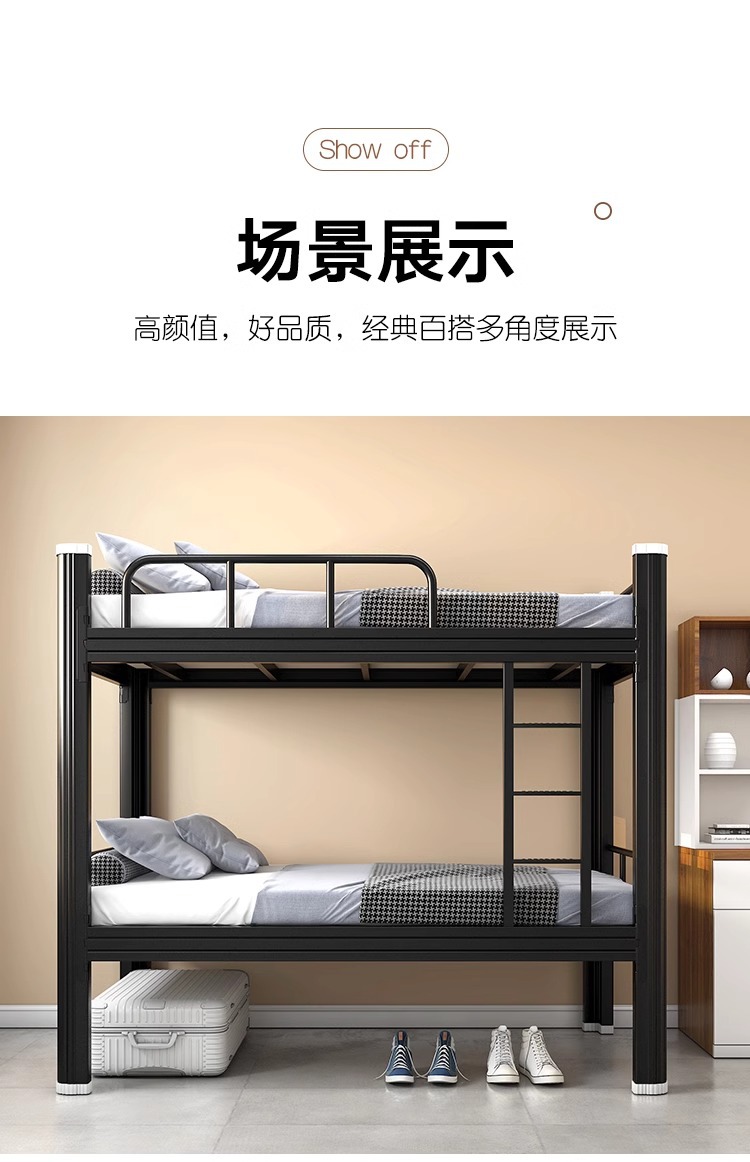 이층 이층 침대 철 예술 아파트 학생 강철 프레임 높고 낮은 침대 이중 직원 철 프레임 침대 기숙사 2 층 철제 침대스토어 가기