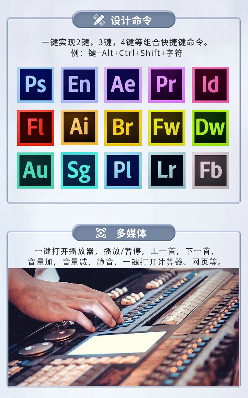 • 투명 크리스탈 샤프트(사무실 권장) - 흰색(디지털 키캡) 기능 직접 설정하거나 영어 키 값을 기록 - 공식 표준 구성