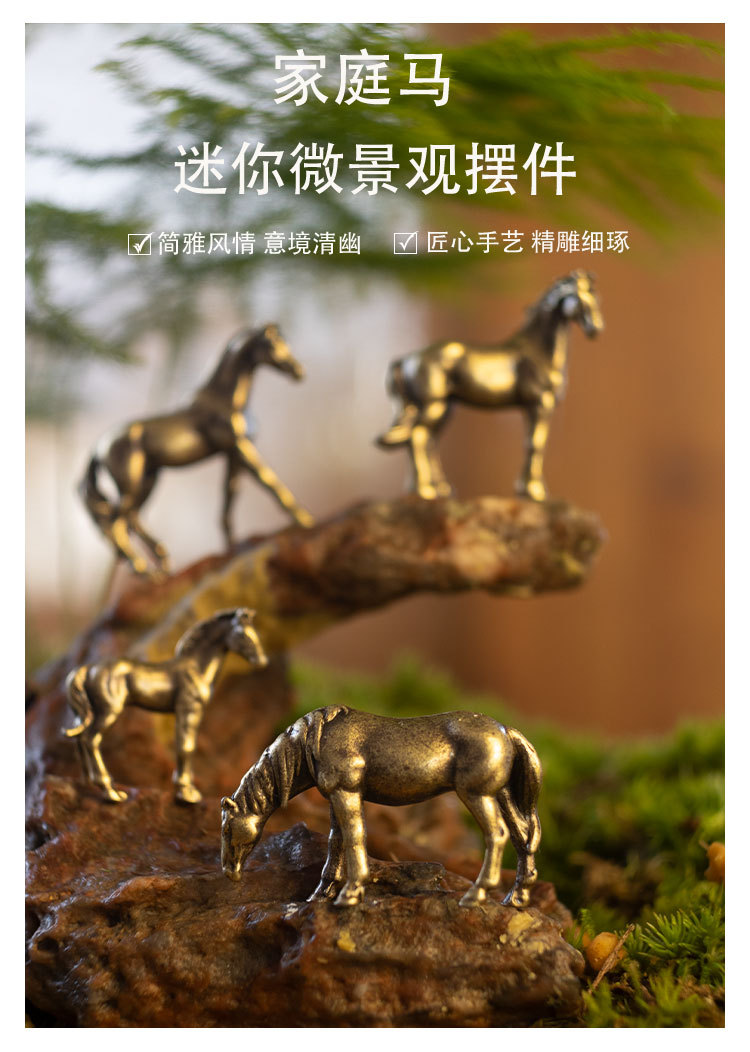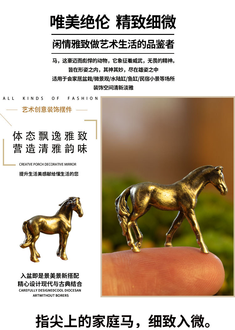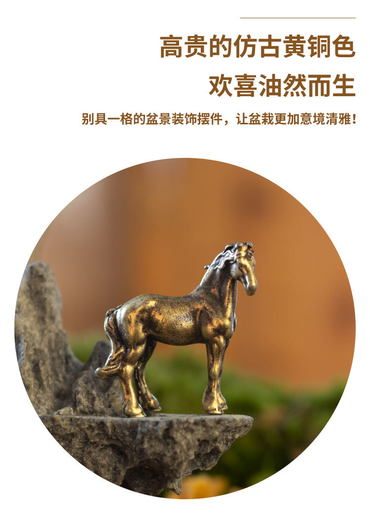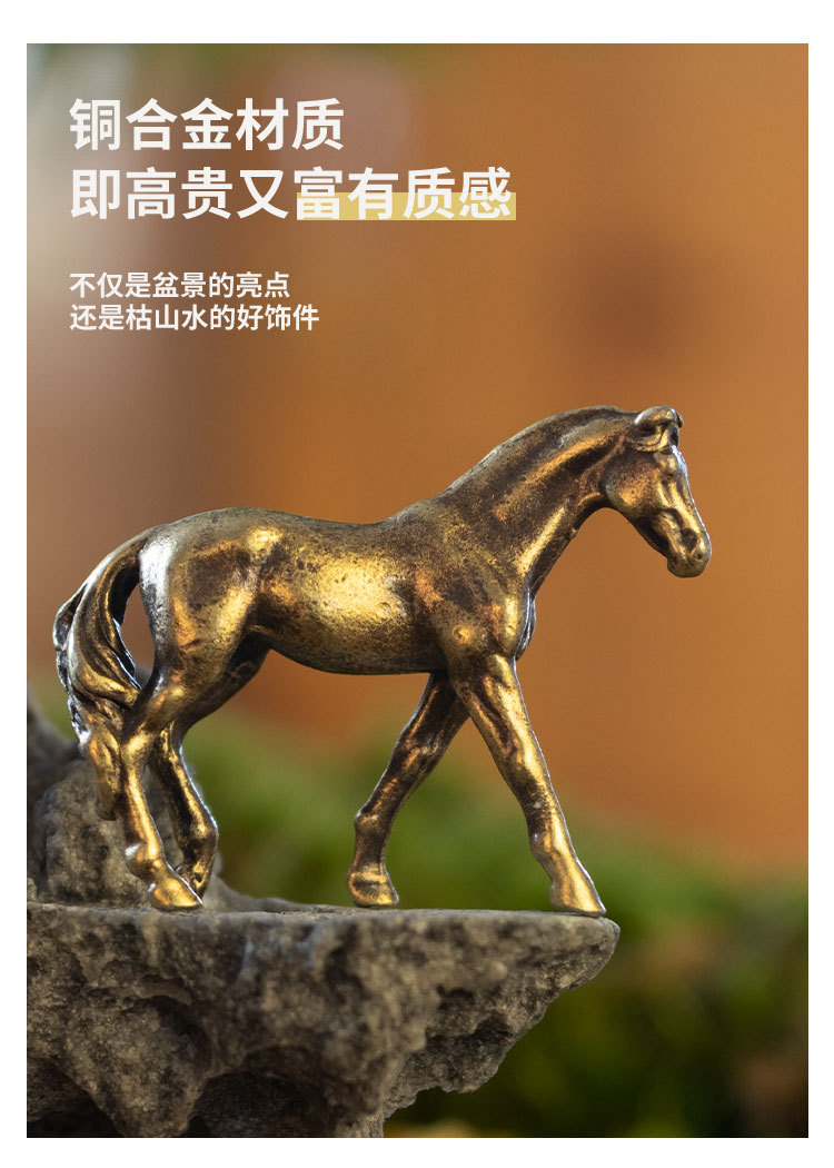 구리 합금 말 모스 꽃 냄비 물고기 탱크 마이크로 풍경 장식품 동물 미니 분재 조경 장식 마이크로 조각 작은 장식품스토어 가기