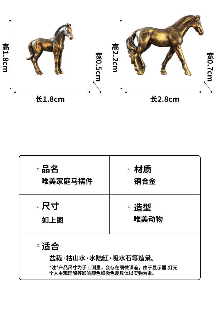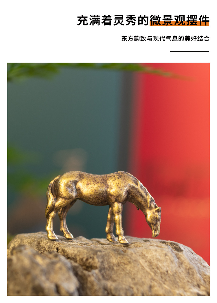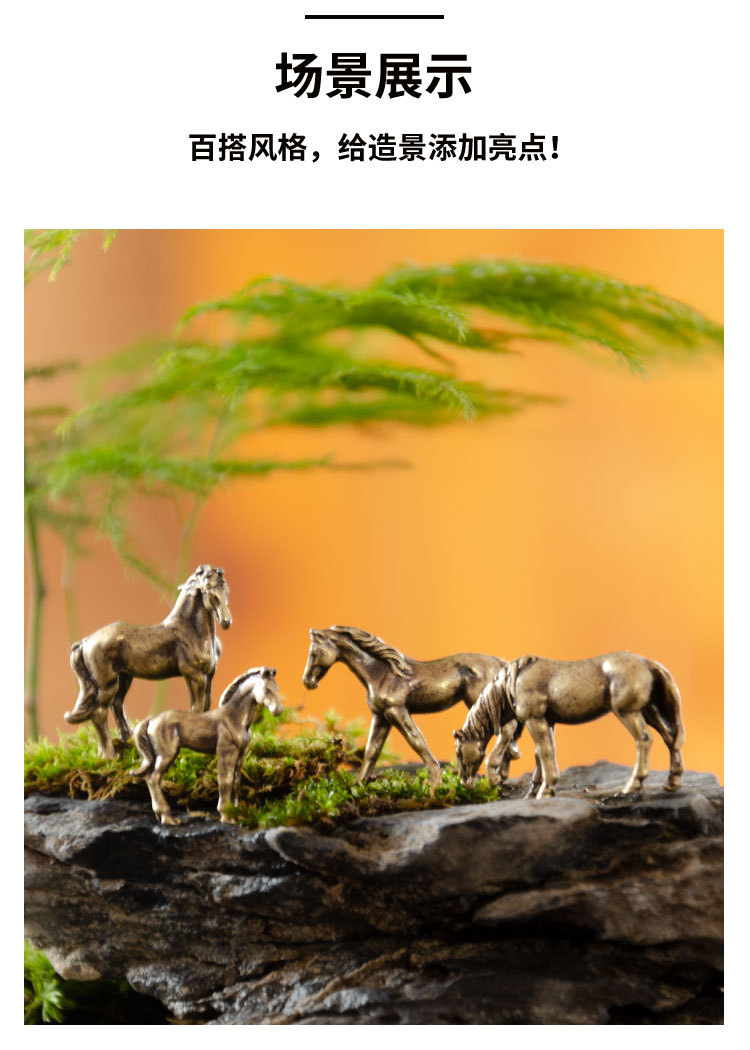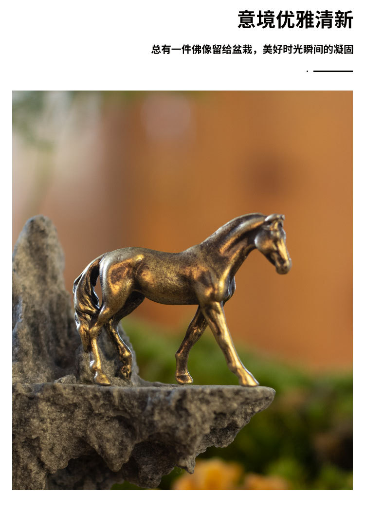 구리 합금 말 모스 꽃 냄비 물고기 탱크 마이크로 풍경 장식품 동물 미니 분재 조경 장식 마이크로 조각 작은 장식품스토어 가기