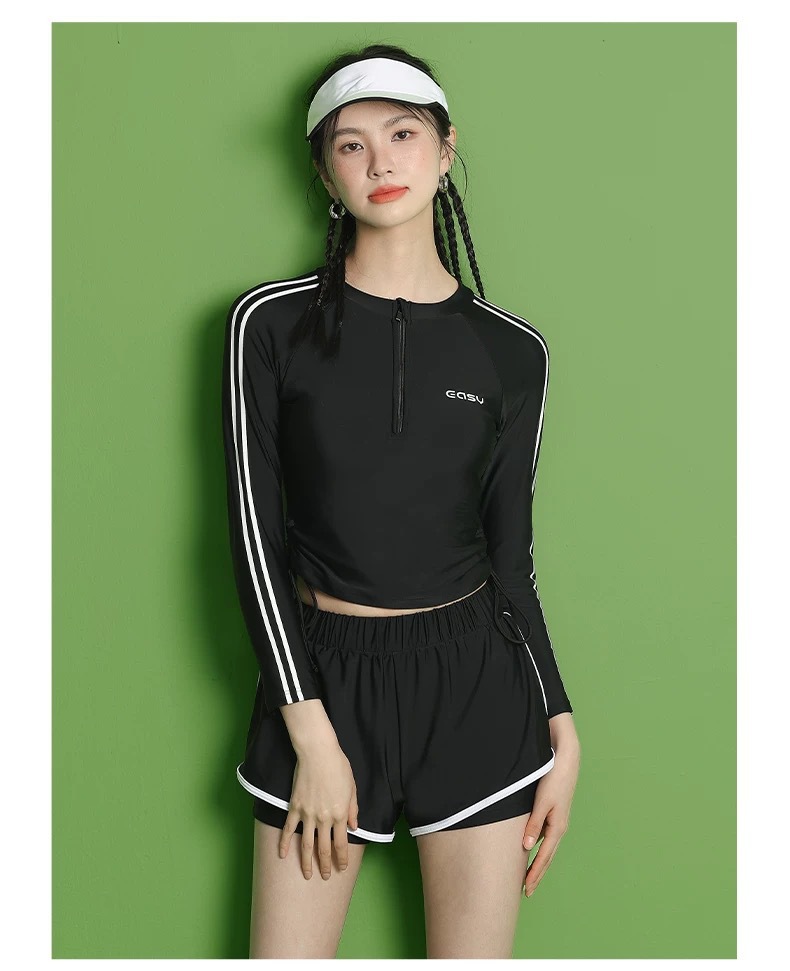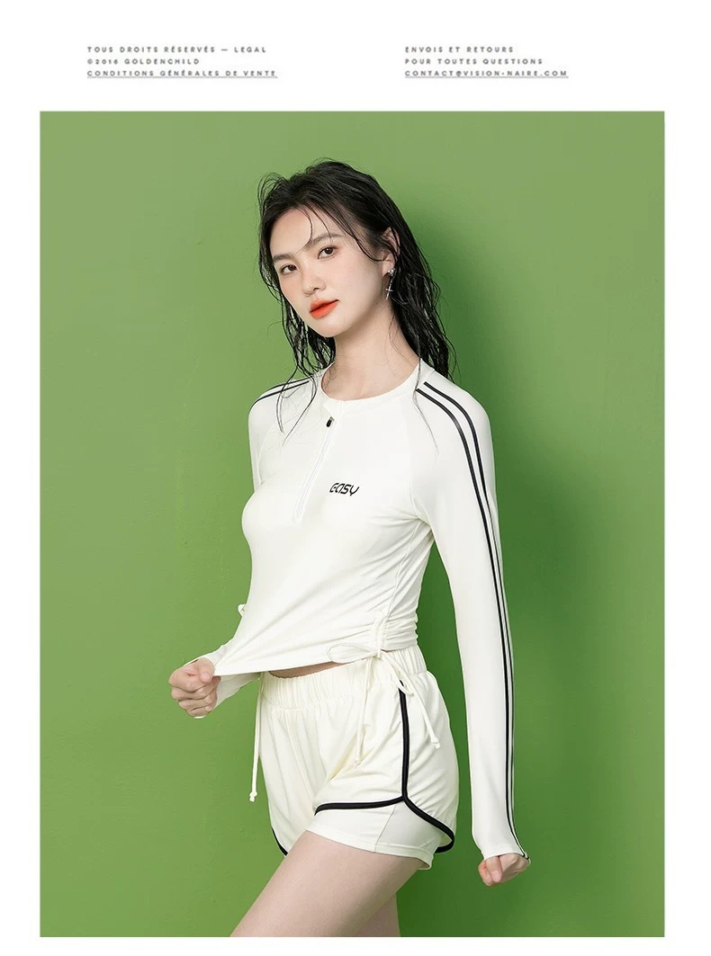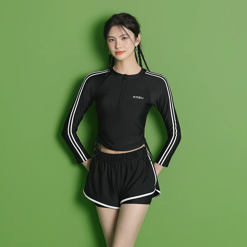 온천 여성용 긴팔 자외선 차단 스플릿 수영복 2025 새로운 고급 보수적 슬리밍 스포츠 서핑 수영복스토어 가기
