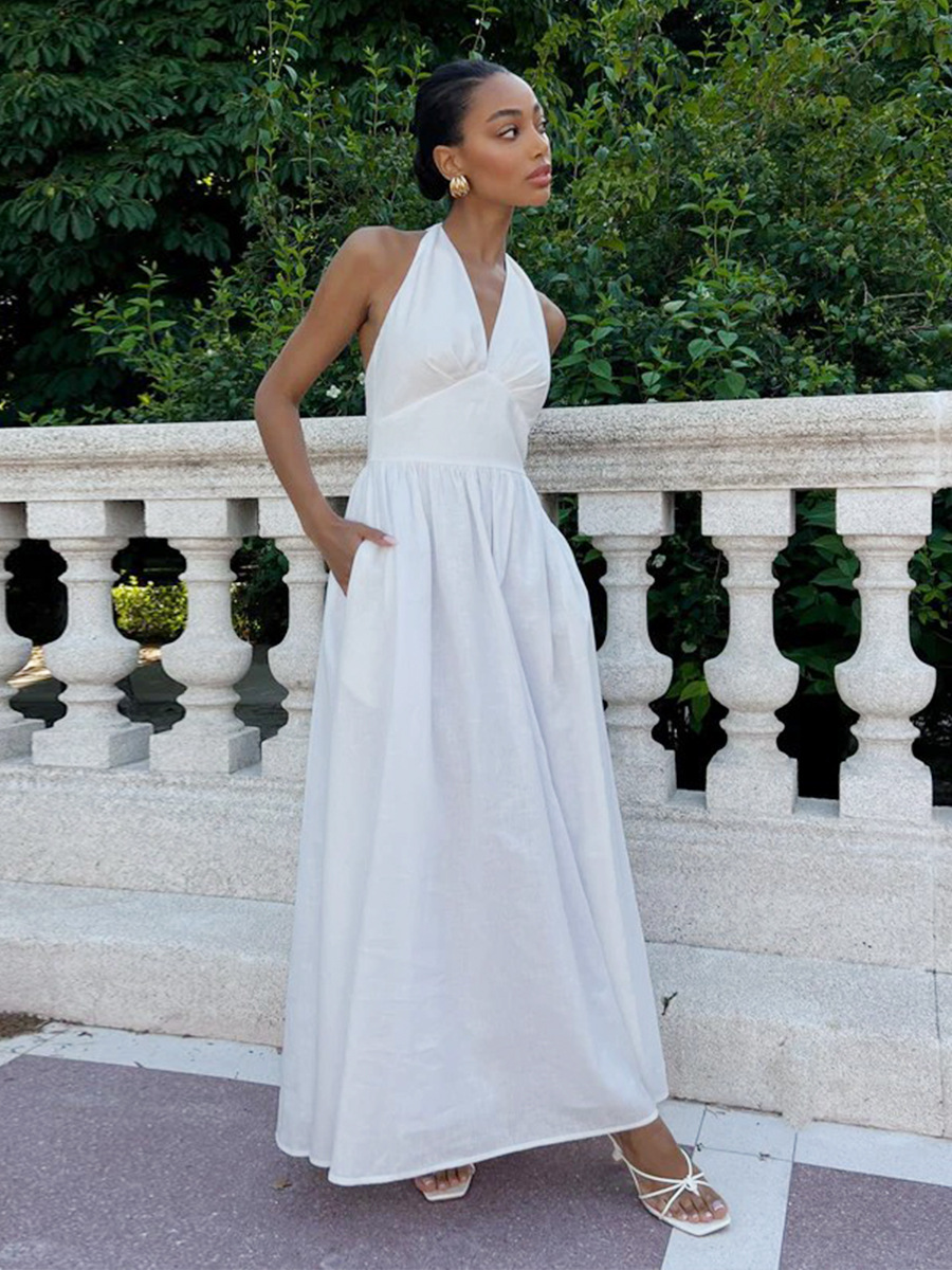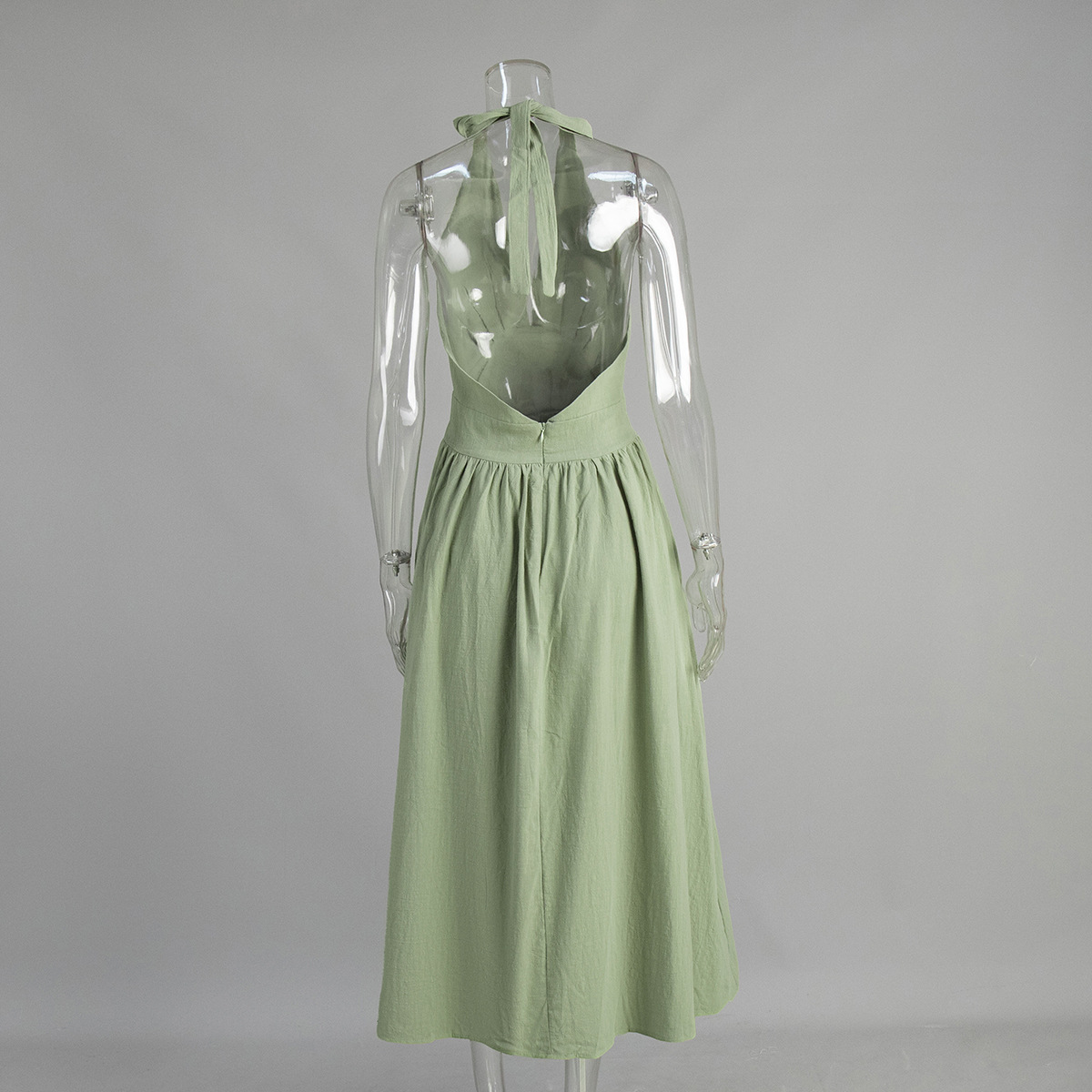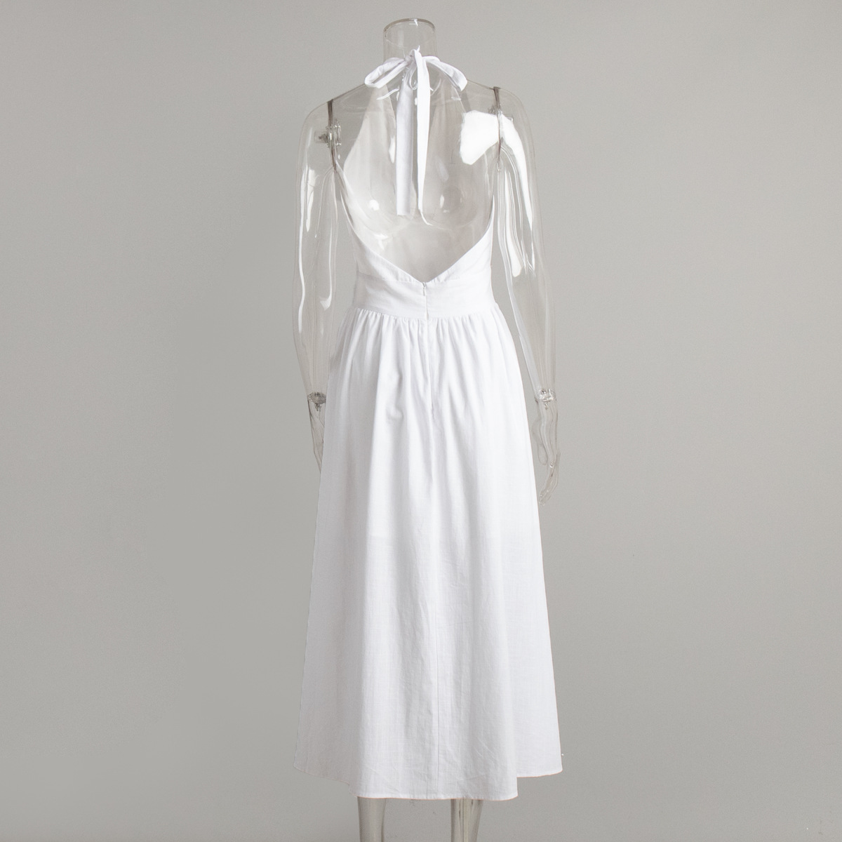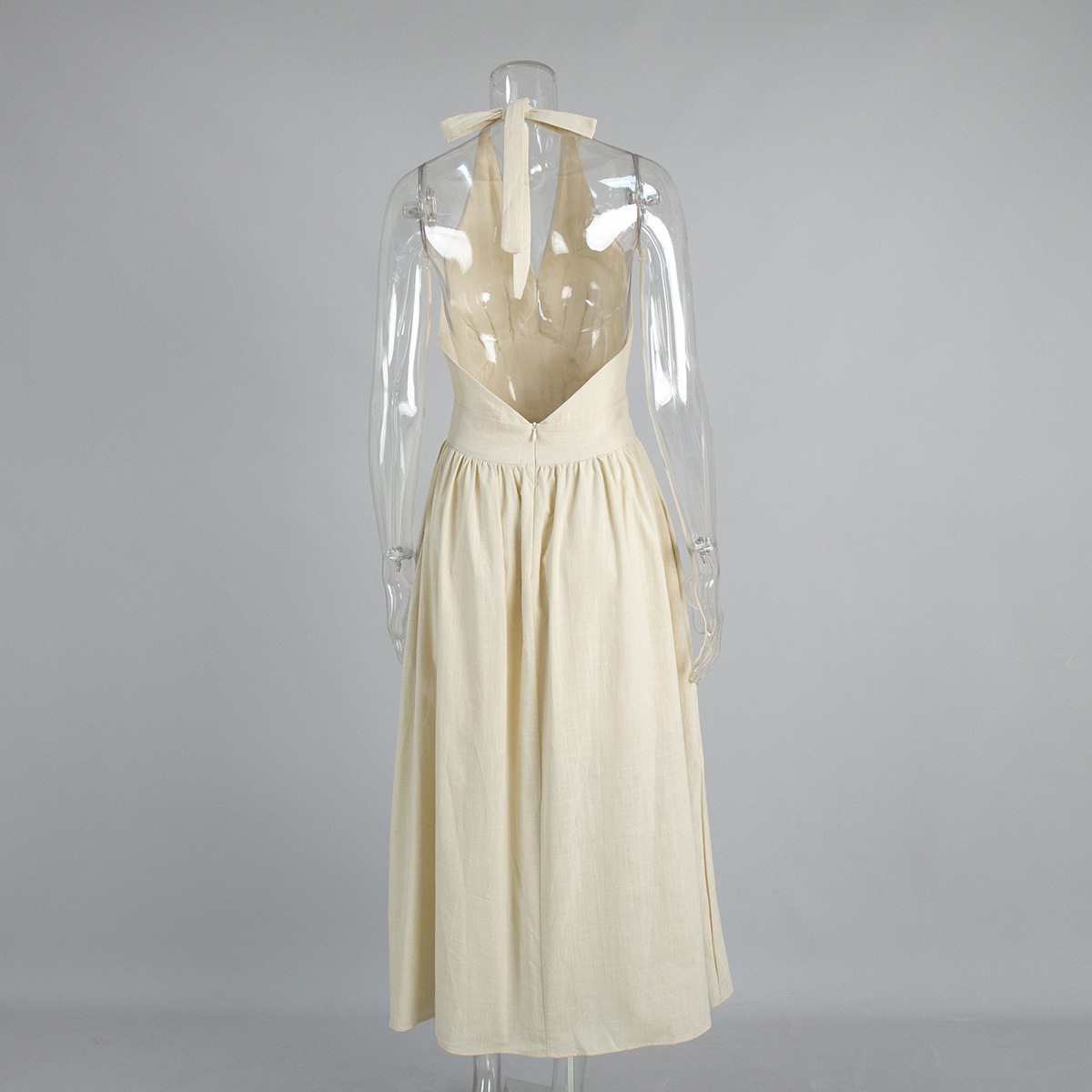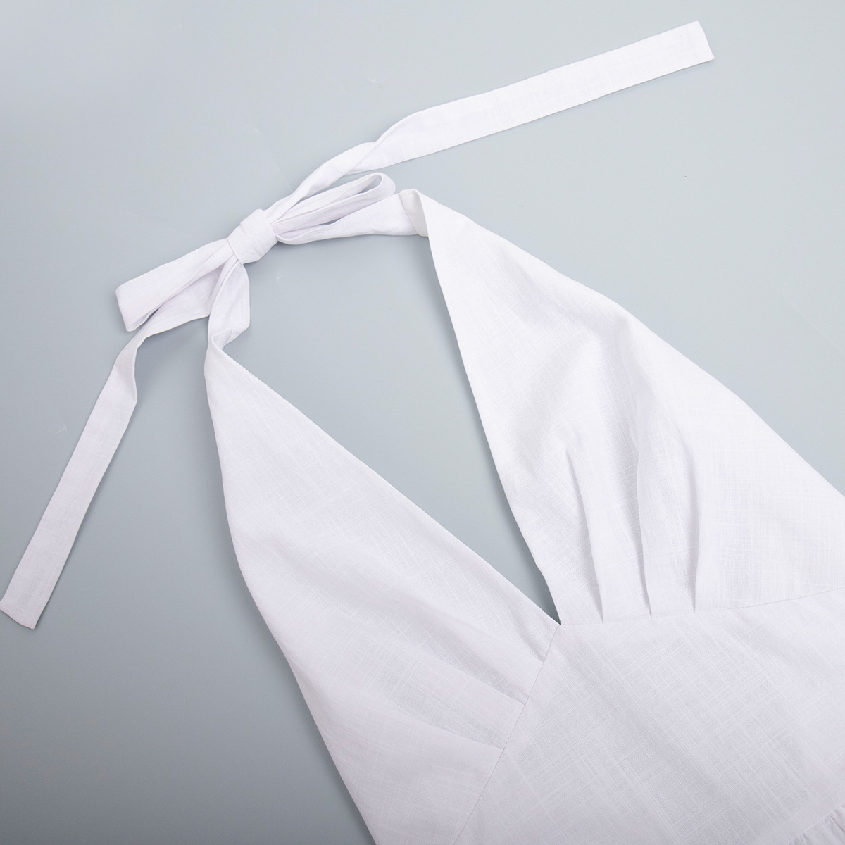 국경 간 순수 코튼 긴 원피스 유럽과 미국 2025 년 봄 및 여름 웨이스트 V 넥 스트랩 대형 스윙 원피스 여성과 긴 원피스스토어 가기