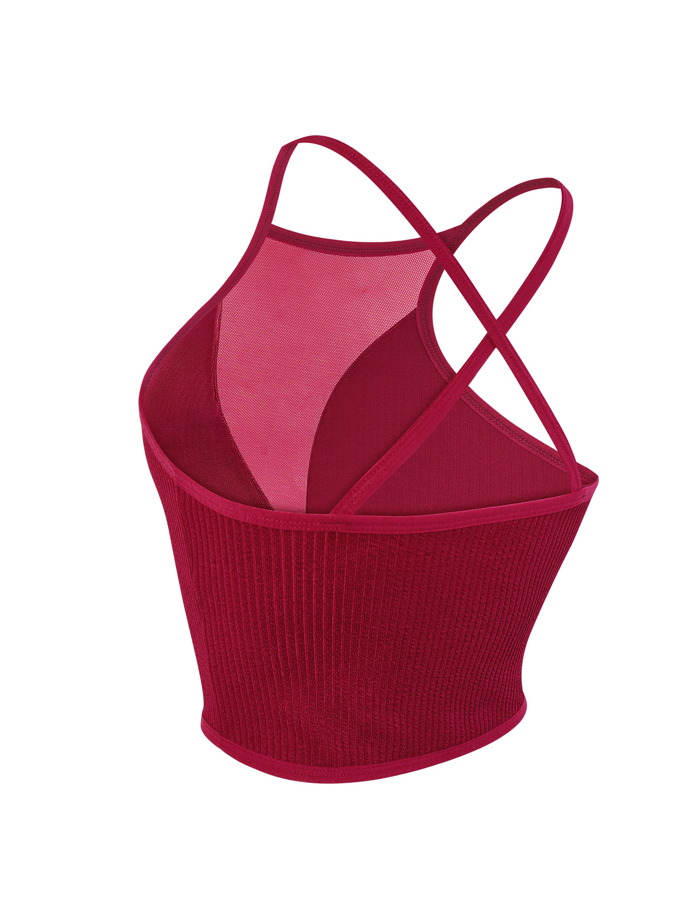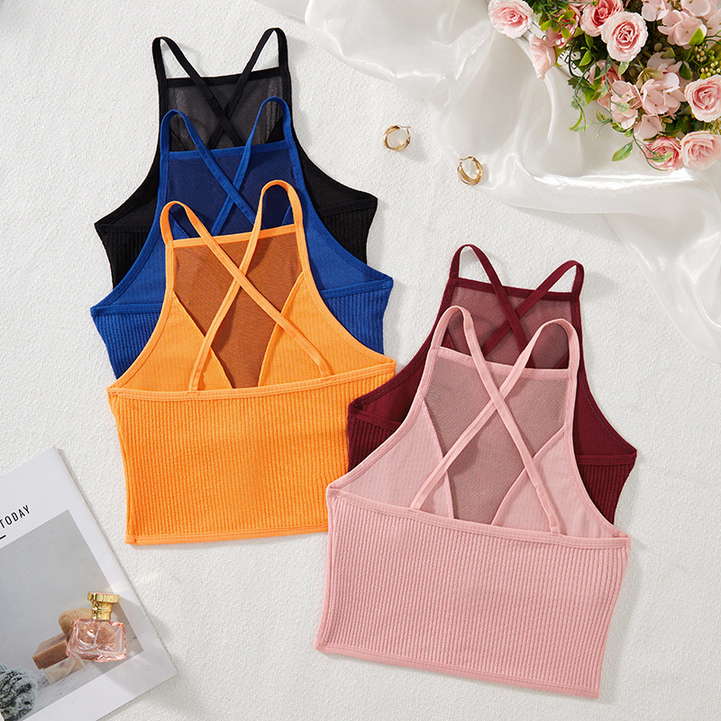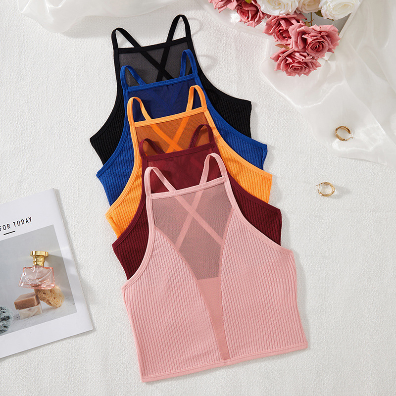 아마존 여성용 속옷, 메쉬 패치워크 베스트 스타일, 아름다운 등 디자인, 얇은 스트랩 크로스, 2025 봄 신상, 홀터넥 브라, 백리스스토어 가기