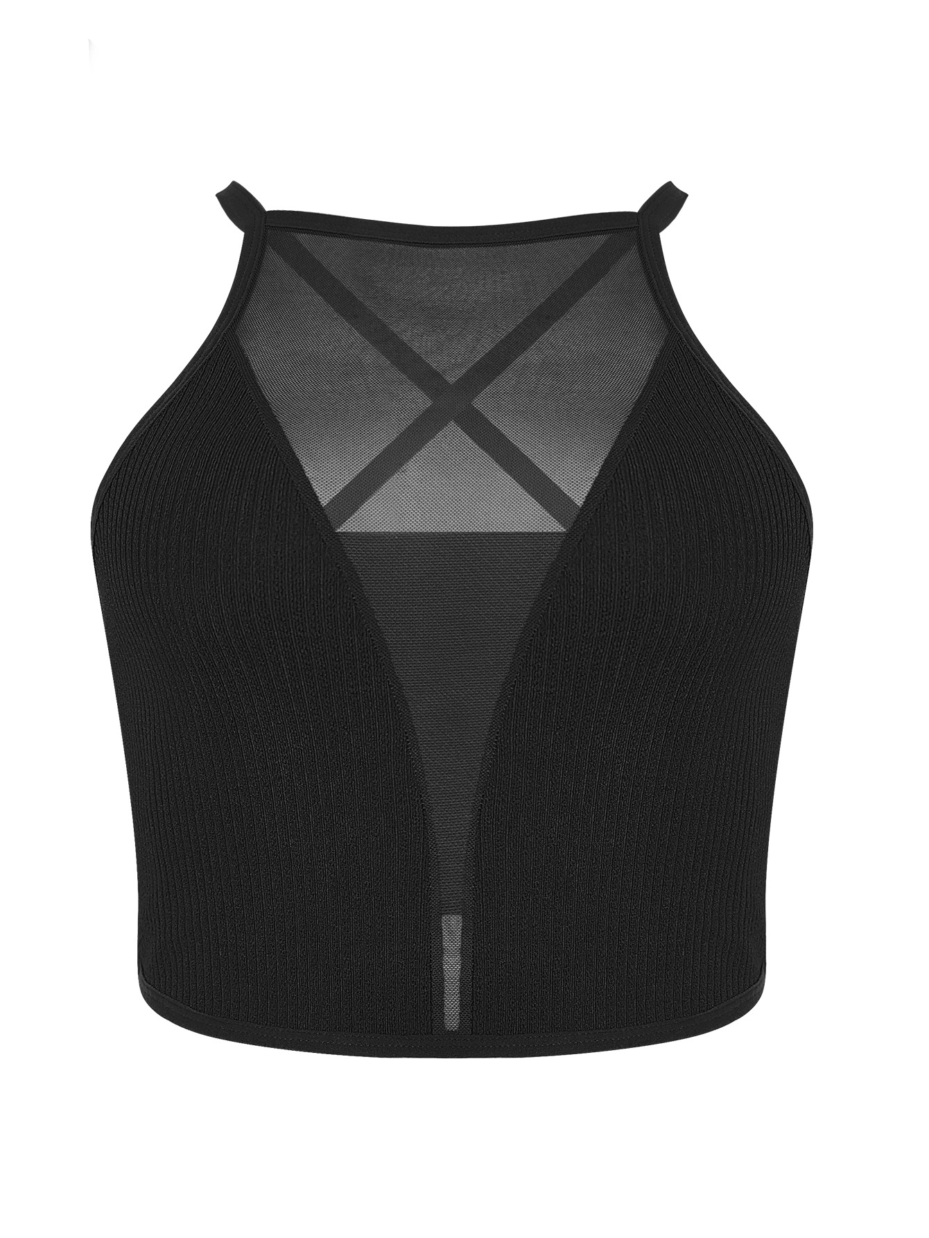 아마존 여성용 속옷, 메쉬 패치워크 베스트 스타일, 아름다운 등 디자인, 얇은 스트랩 크로스, 2025 봄 신상, 홀터넥 브라, 백리스