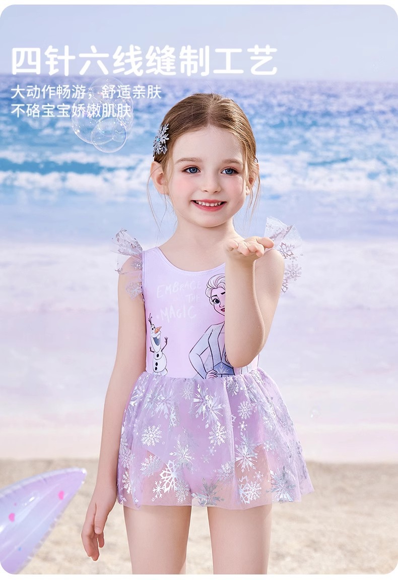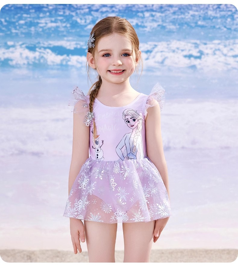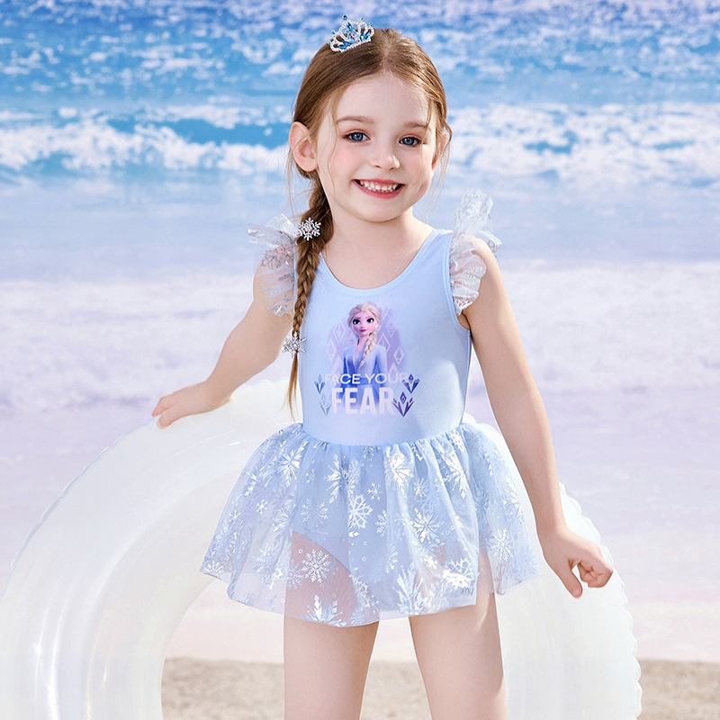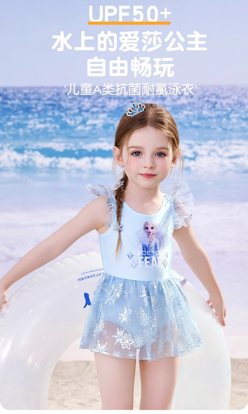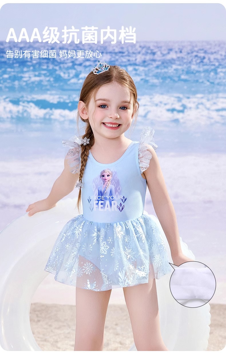 디즈니 어린이 수영복 소녀 아기 2025 엘사 귀여운 공주 드레스 어린이 원피스 태양 보호 수영복