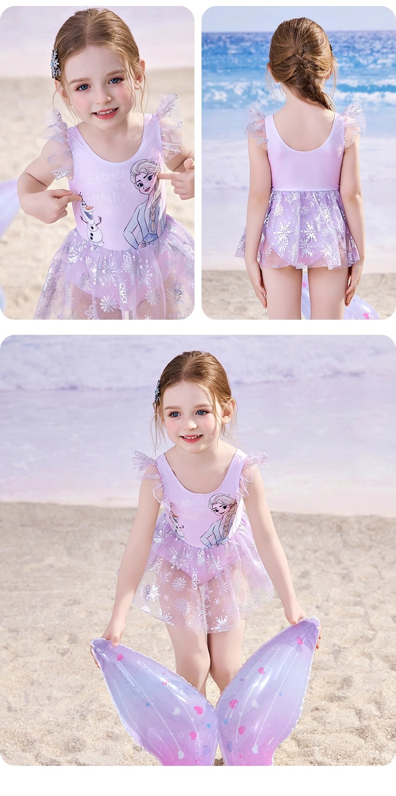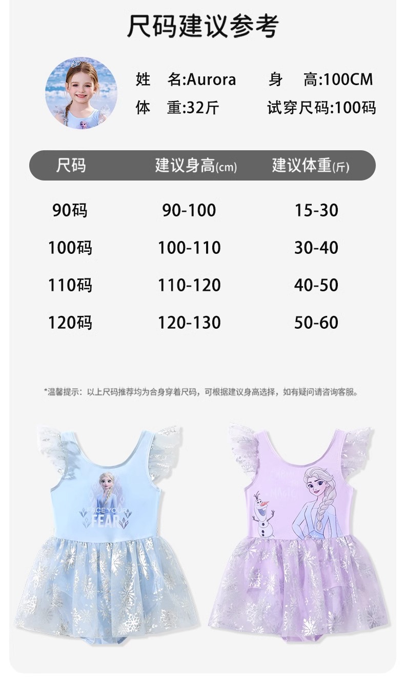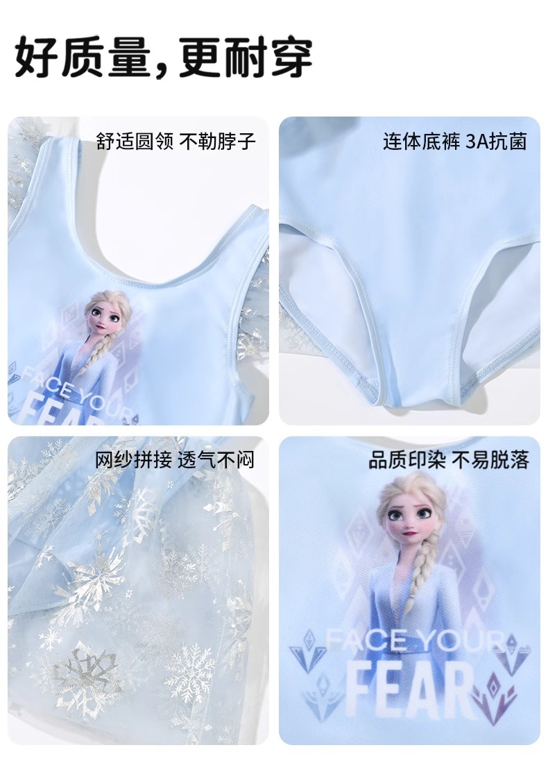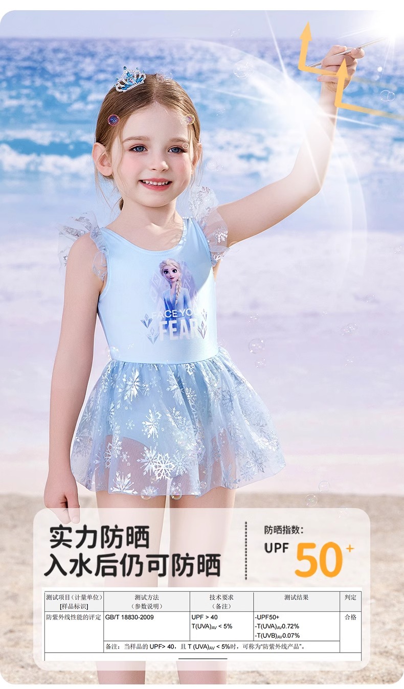 디즈니 어린이 수영복 소녀 아기 2025 엘사 귀여운 공주 드레스 어린이 원피스 태양 보호 수영복
