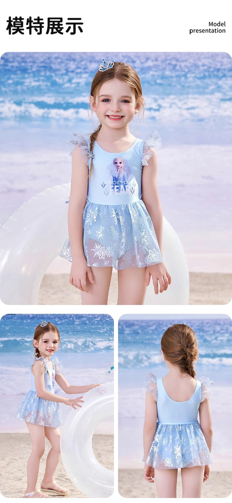 디즈니 어린이 수영복 소녀 아기 2025 엘사 귀여운 공주 드레스 어린이 원피스 태양 보호 수영복스토어 가기