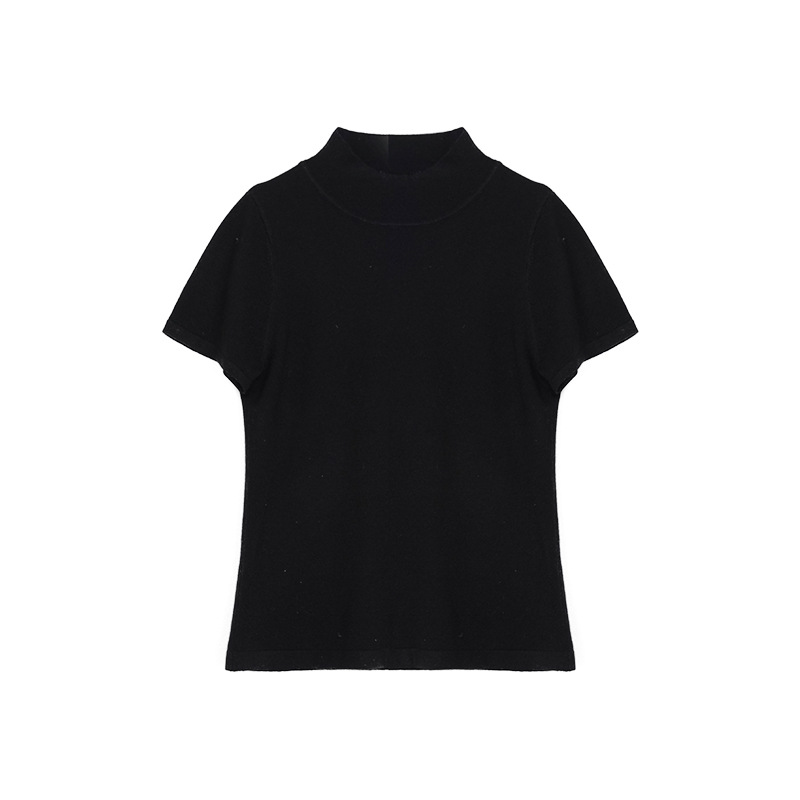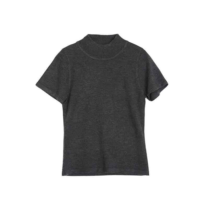 Wanwei 울 하프 터틀넥 탑 여성 2025 봄 신작 대형 백리스 슬림 니트 반팔 티셔츠 P2912