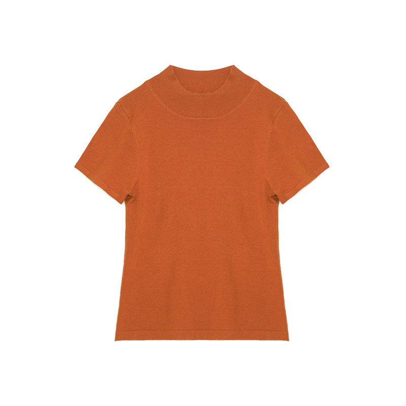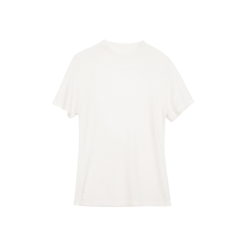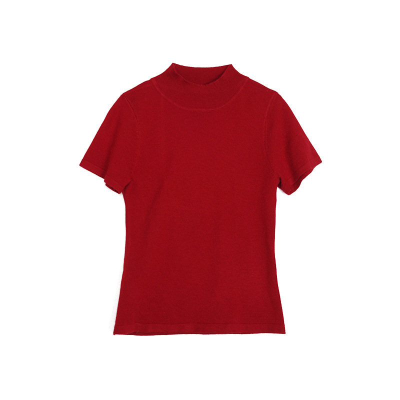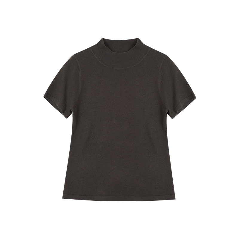 Wanwei 울 하프 터틀넥 탑 여성 2025 봄 신작 대형 백리스 슬림 니트 반팔 티셔츠 P2912스토어 가기