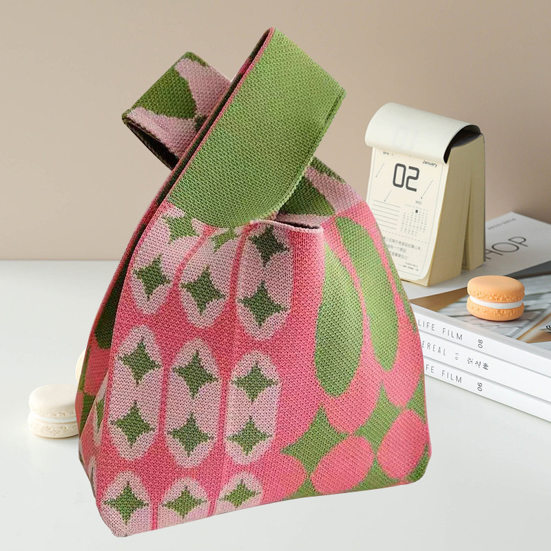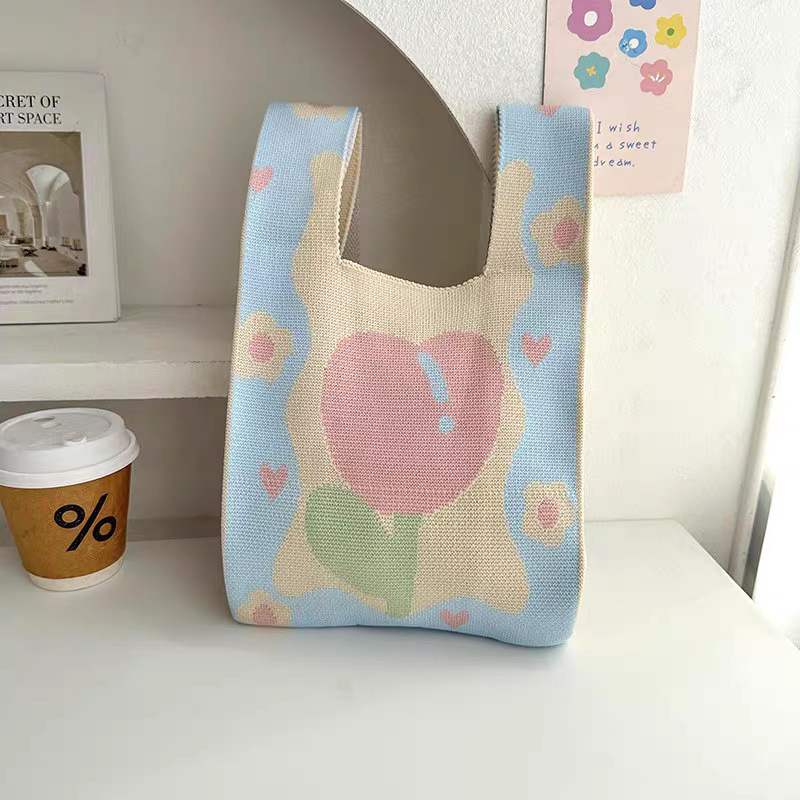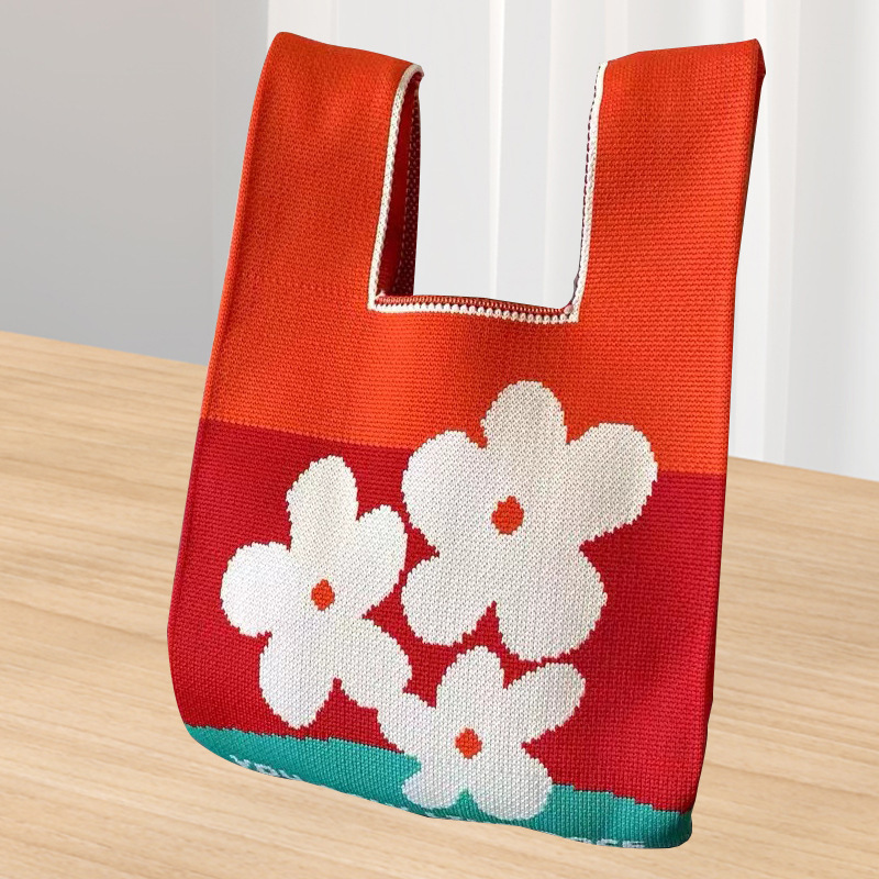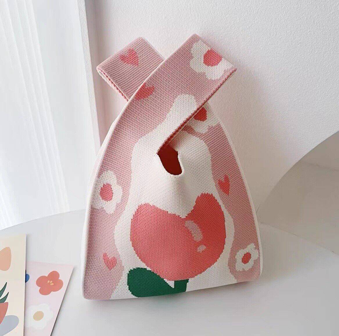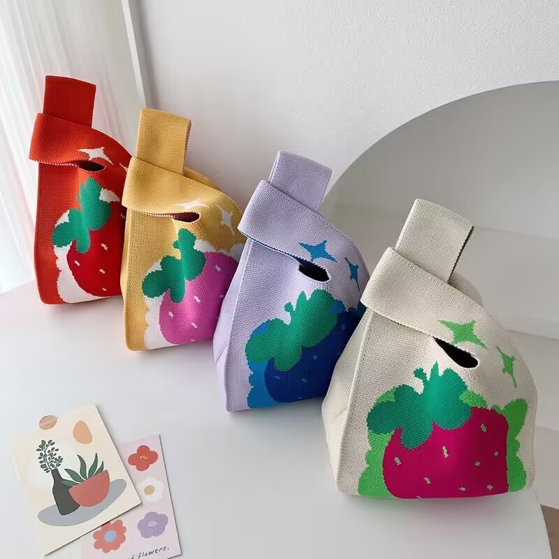 한국 스타일의 새로운 기능 스타일 틈새 패션 디자인 니트 가방 여성 일일 매칭 통근 핸드백 과일 가방스토어 가기