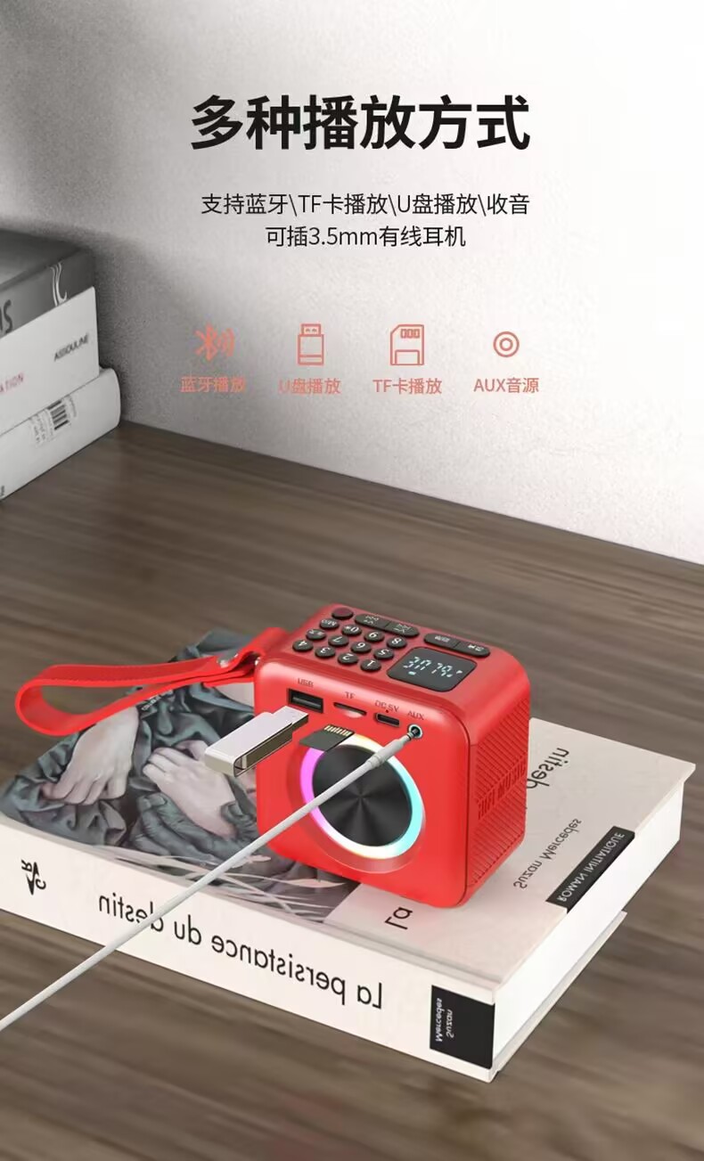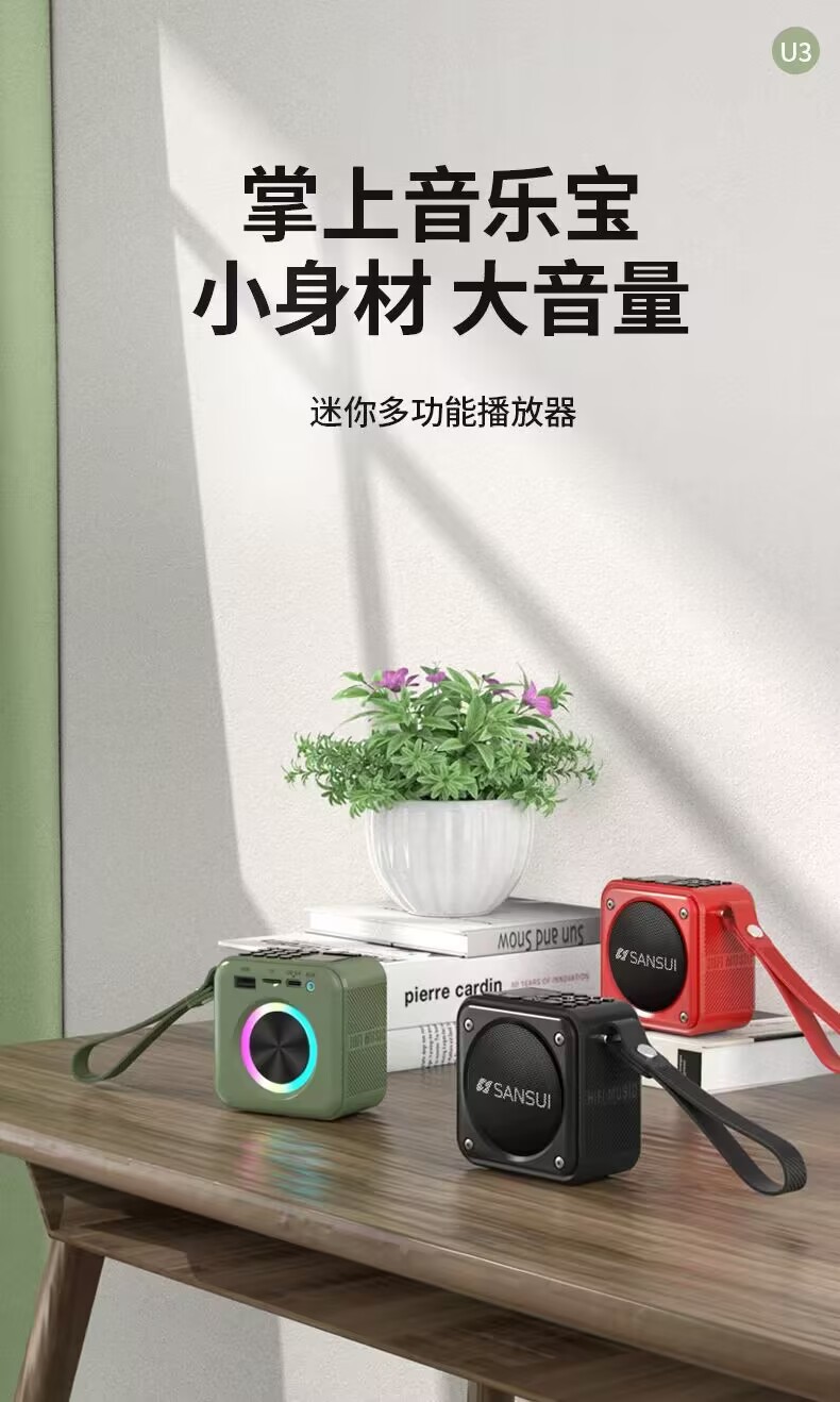 라이브 방송실에서 사용하는 것과 같은 U3 디지털 노래방 기기 블루투스 스피커, 카드 삽입 가능, 소형 휴대용, 녹음 기능, 무선 블루투스 스피커스토어 가기