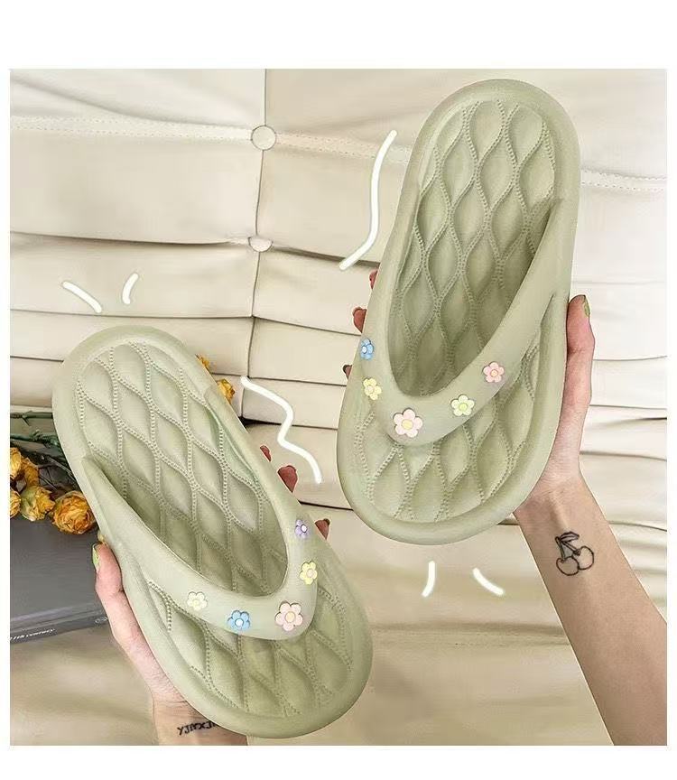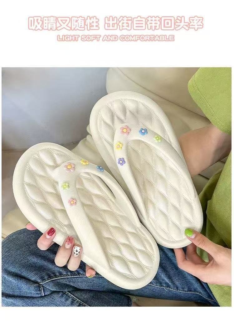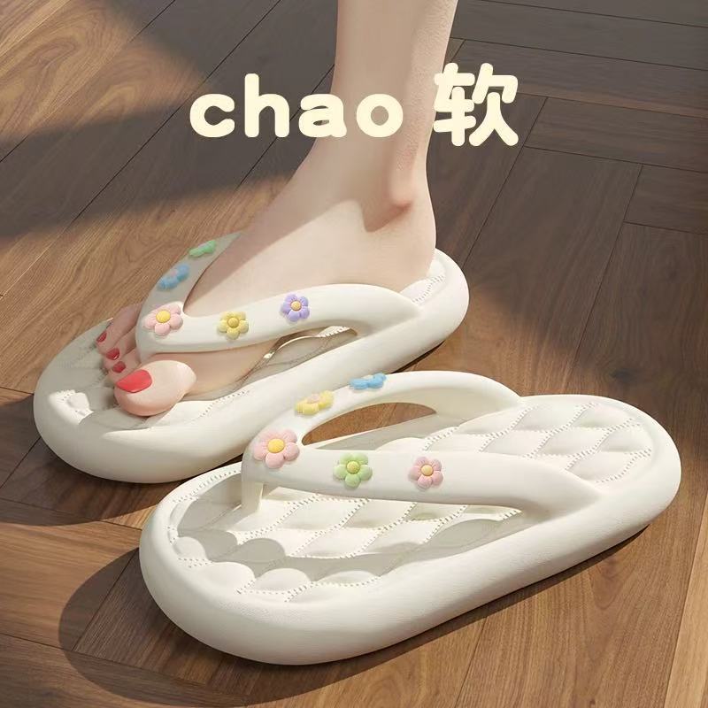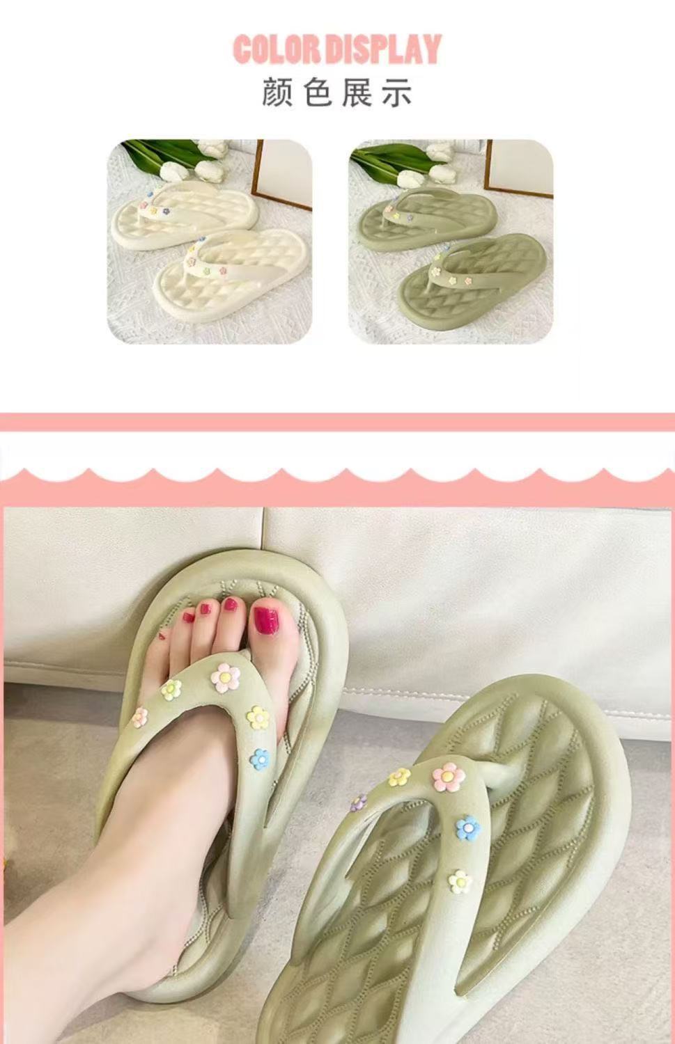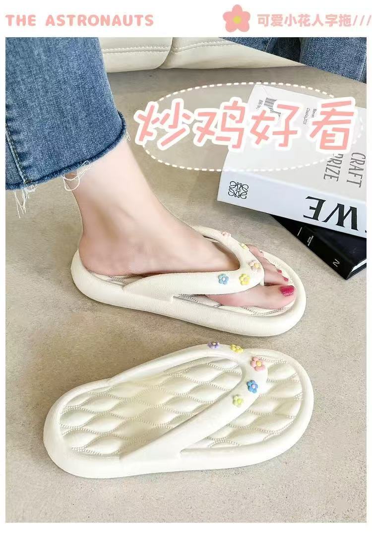 여성용 귀여운 꽃무늬 플립플랍, 여름용 2026년 신상 ins 스타일 미끄럼 방지 두꺼운 밑창 비치 슬리퍼스토어 가기