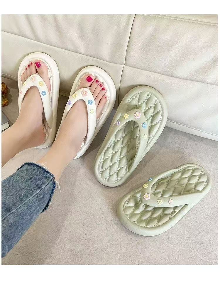 여성용 귀여운 꽃무늬 플립플랍, 여름용 2026년 신상 ins 스타일 미끄럼 방지 두꺼운 밑창 비치 슬리퍼