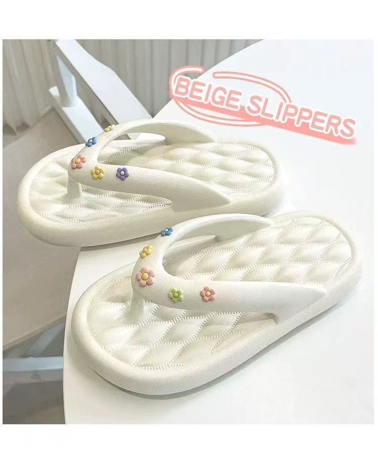 • 꽃 장식이 있는 흰색 마사지 밑창 플립플롭
