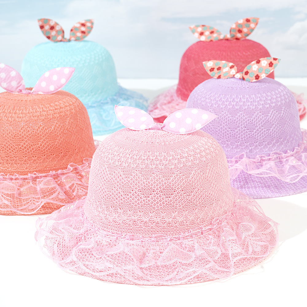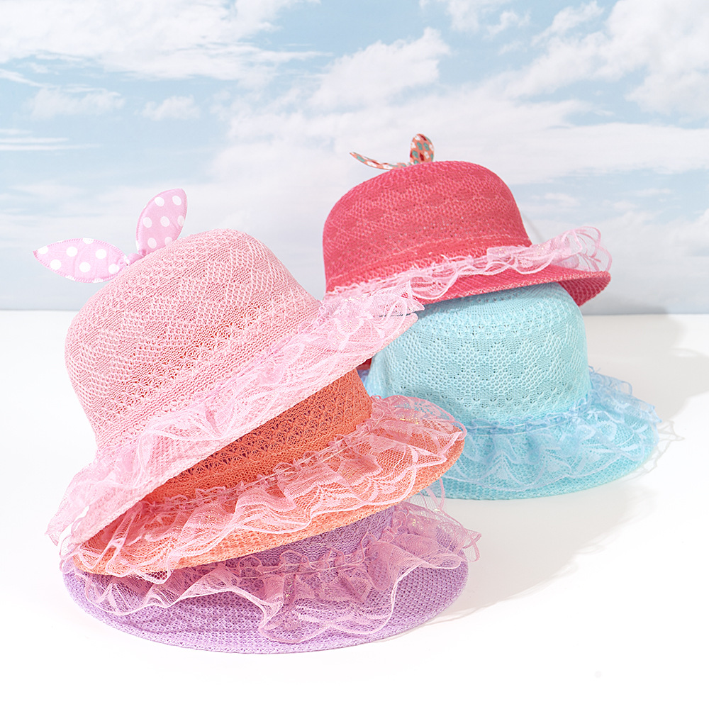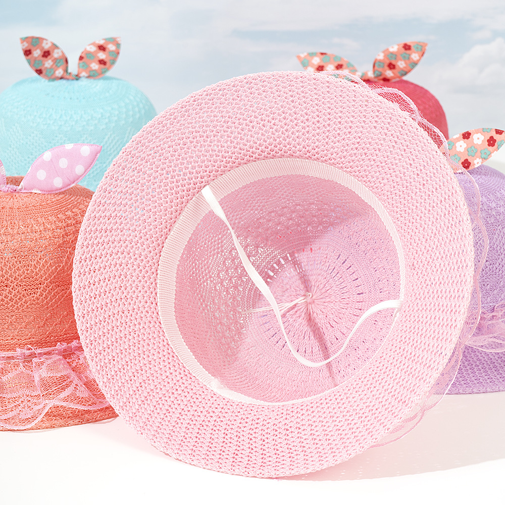 어린이 밀짚 모자 여름 새 태양 모자 야외 태양 보호 활 밀짚 모자 짠 태양 모자 귀여운 소녀 모자