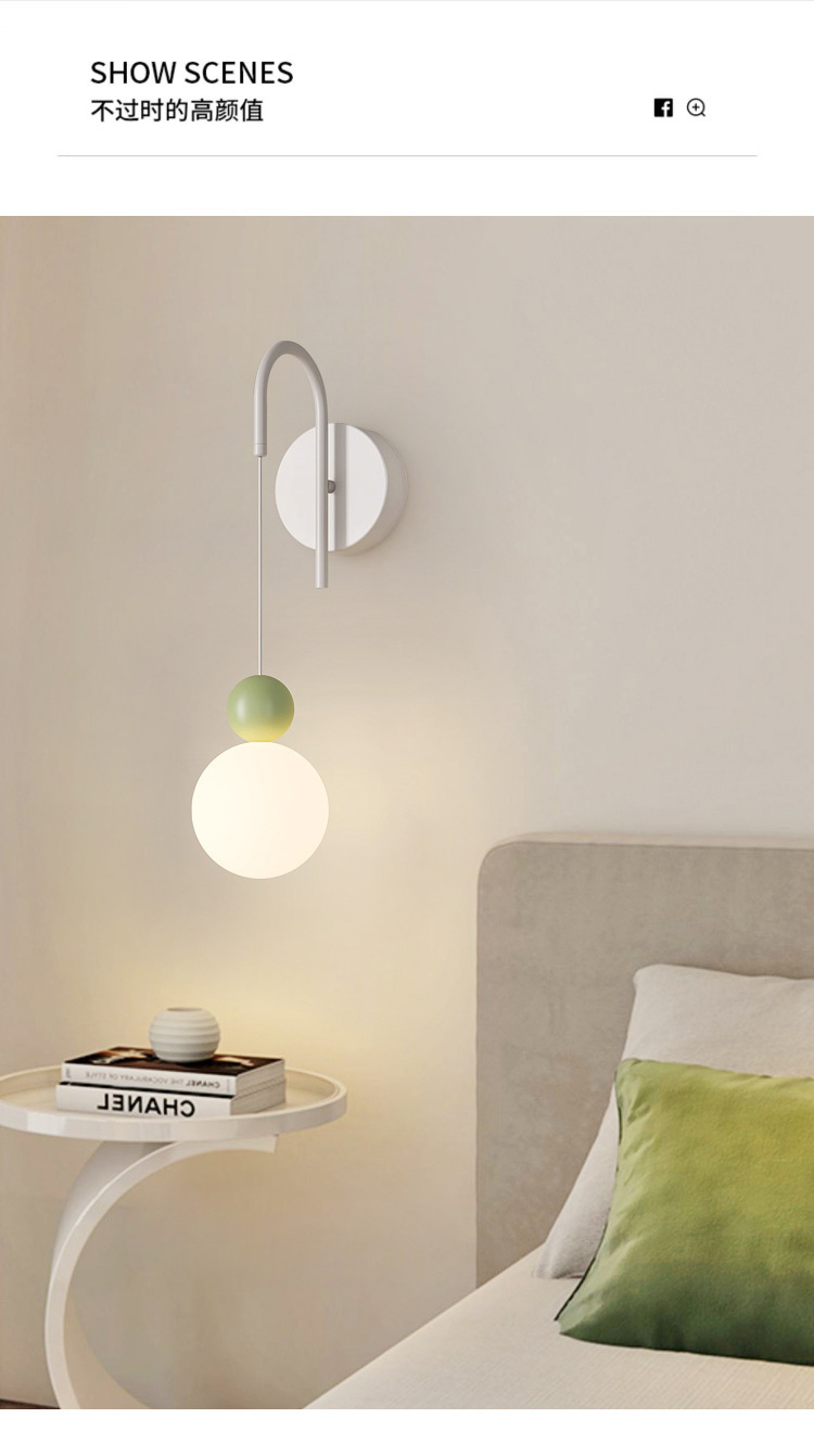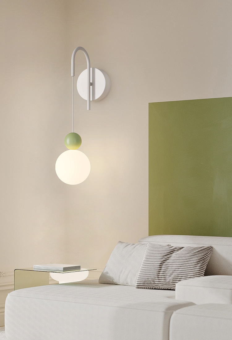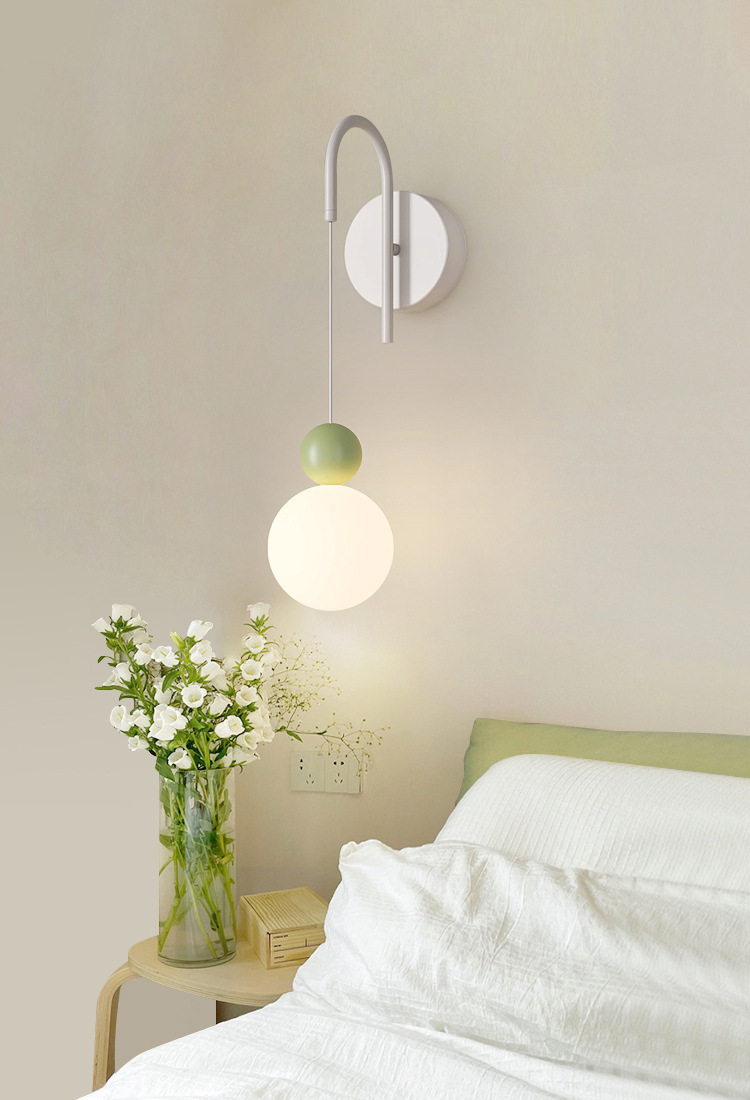 크림 스타일 침실 침대 옆 벽 램프 창조적 인 간단한 현대 작은 신선한 녹색 거실 배경 벽 장식 벽 램프스토어 가기