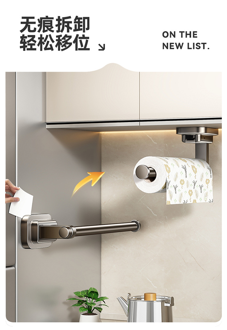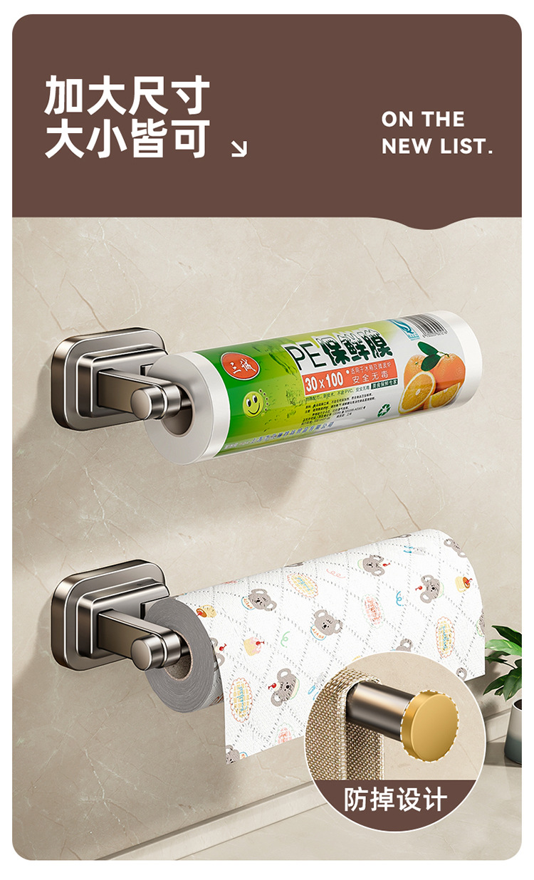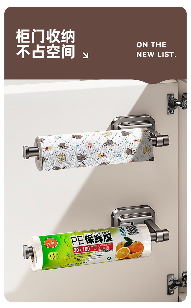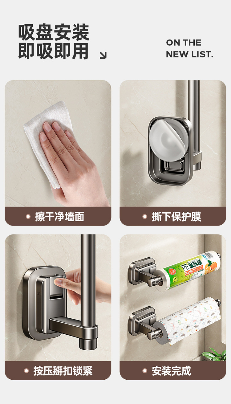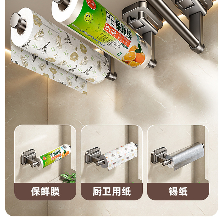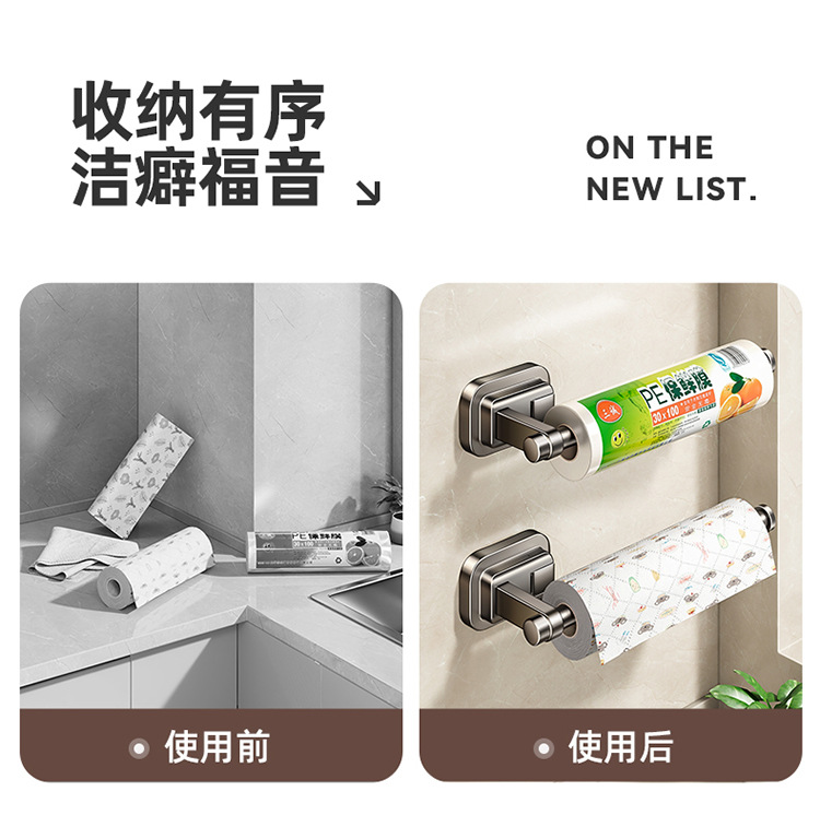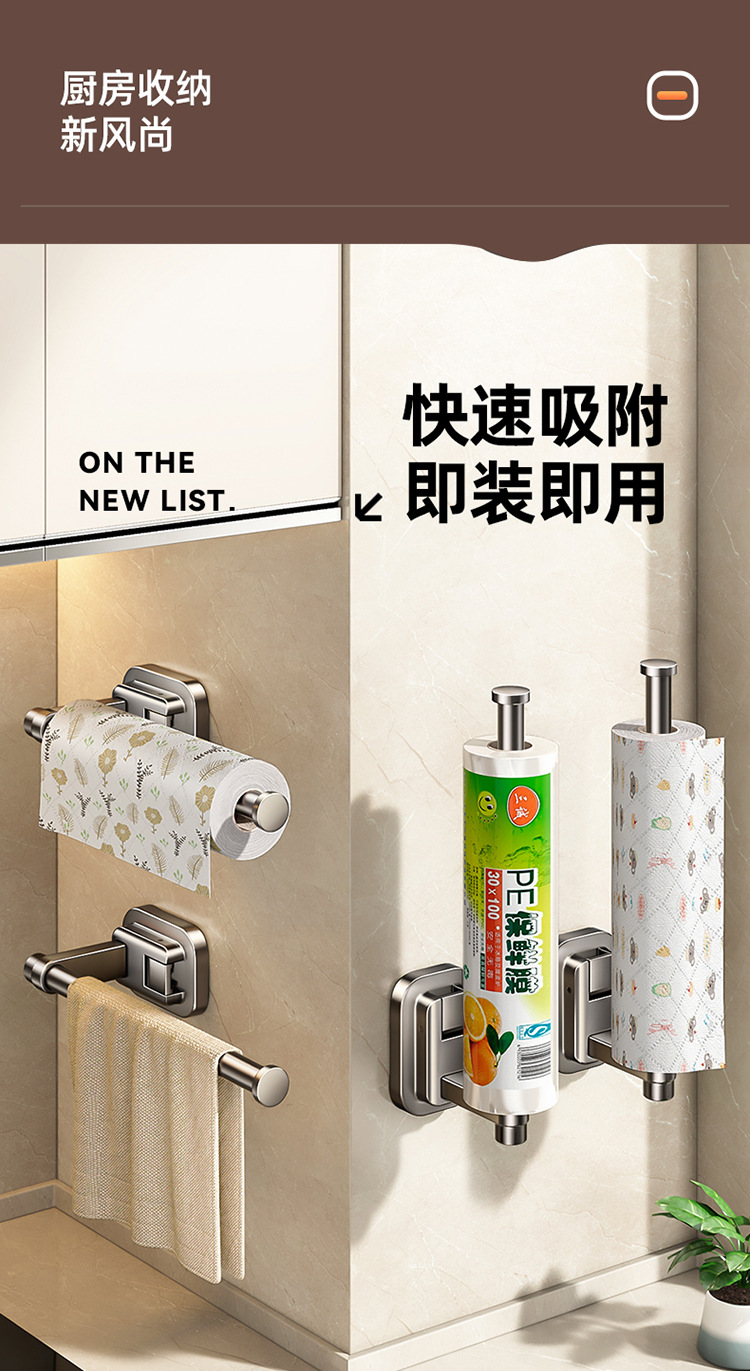 주방 종이 타월 랙 캐비닛 벽에 장착 된 비 천공 흡입 컵 집착 필름 롤 종이 보관 랙 다기능 보관 랙