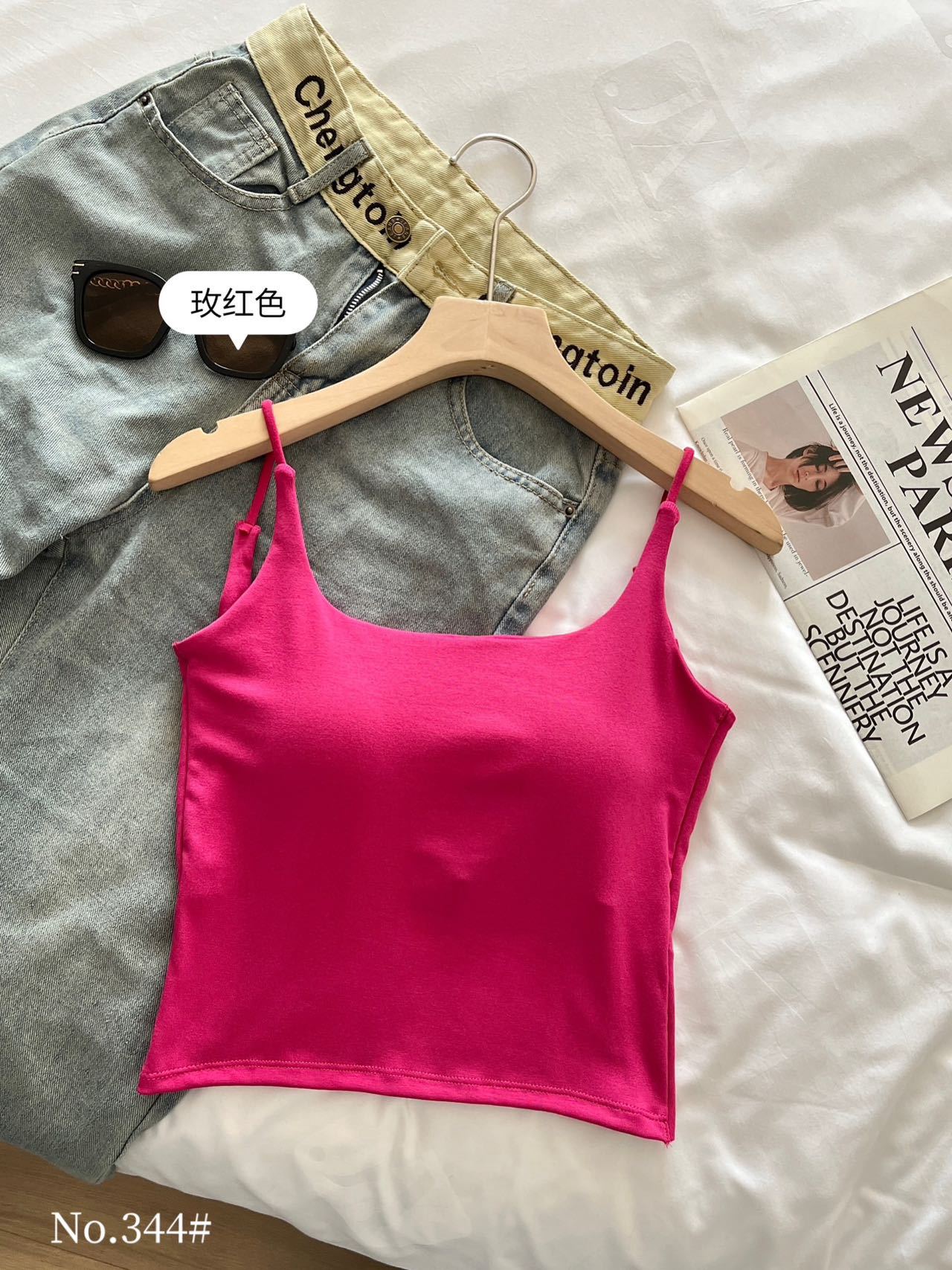 U자형 백리스 캐미솔 여성용 라텍스 가슴 패드 일체형 얇은 어깨끈 슬리밍 효과 여름 아우터용 아름다운 등 디자인 탑스토어 가기