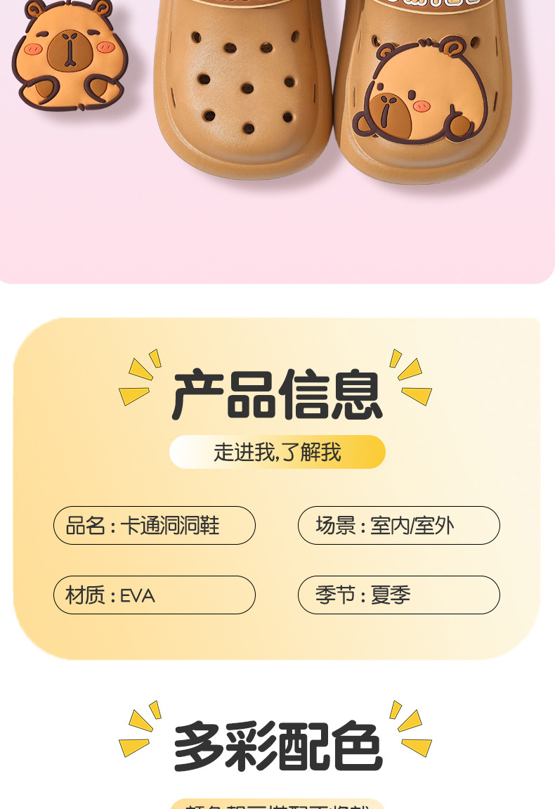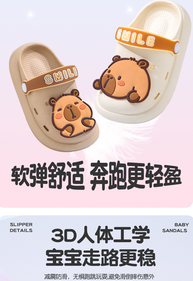 카피바라 여름 어린이용 남아, 여아용 나막신, 발가락 덮개, 통기성, 미끄럼 방지, 중대형 어린이 샌들