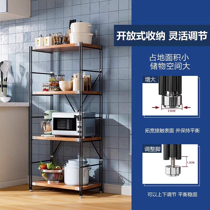 일본식 스토리지 랙 로그 스타일 다층 주방 바닥 스토리지 랙 전자레인지 오븐 다기능 스토리지 랙 프린터 랙