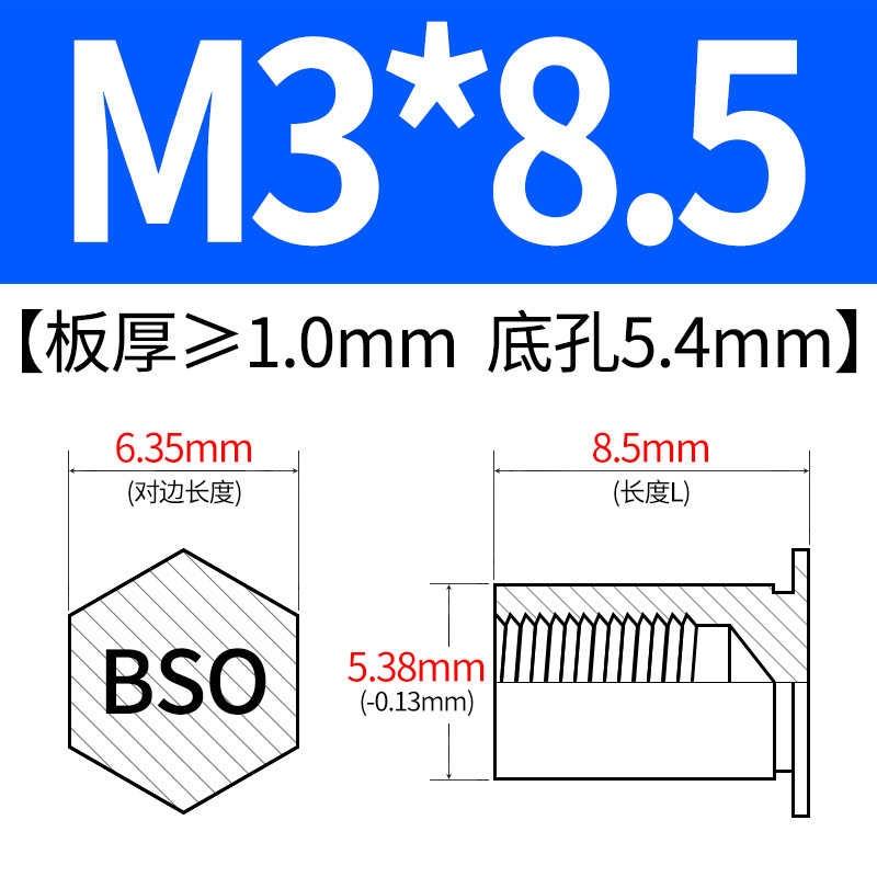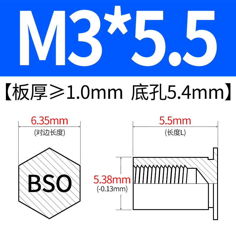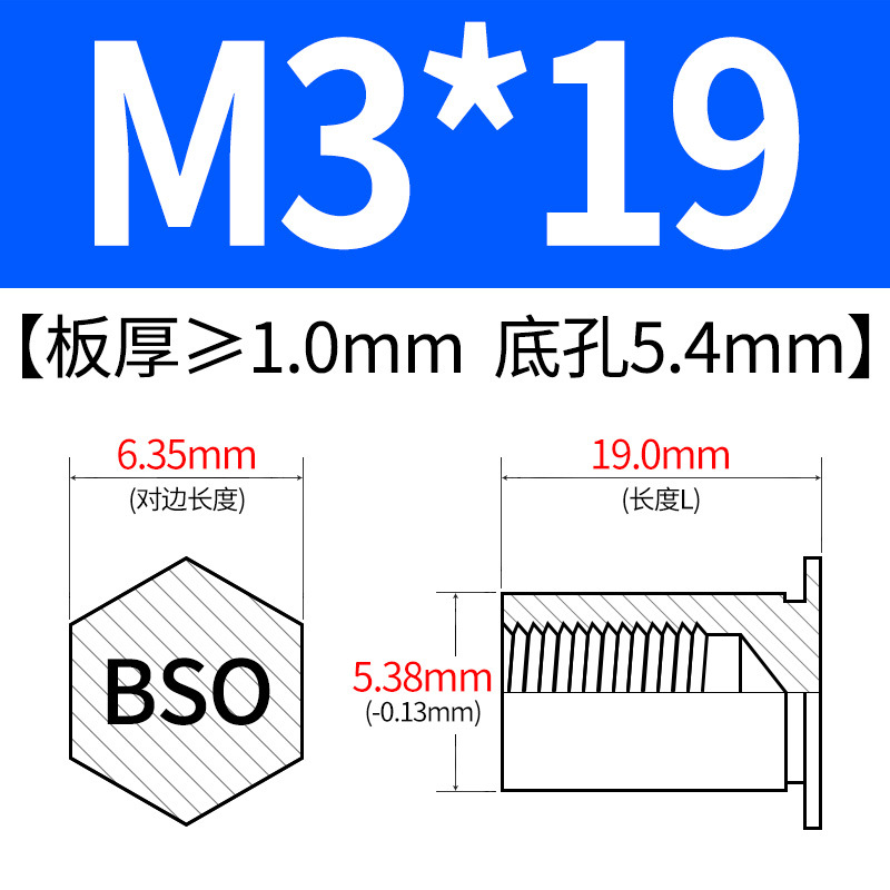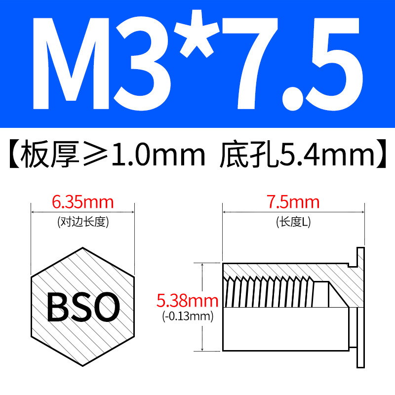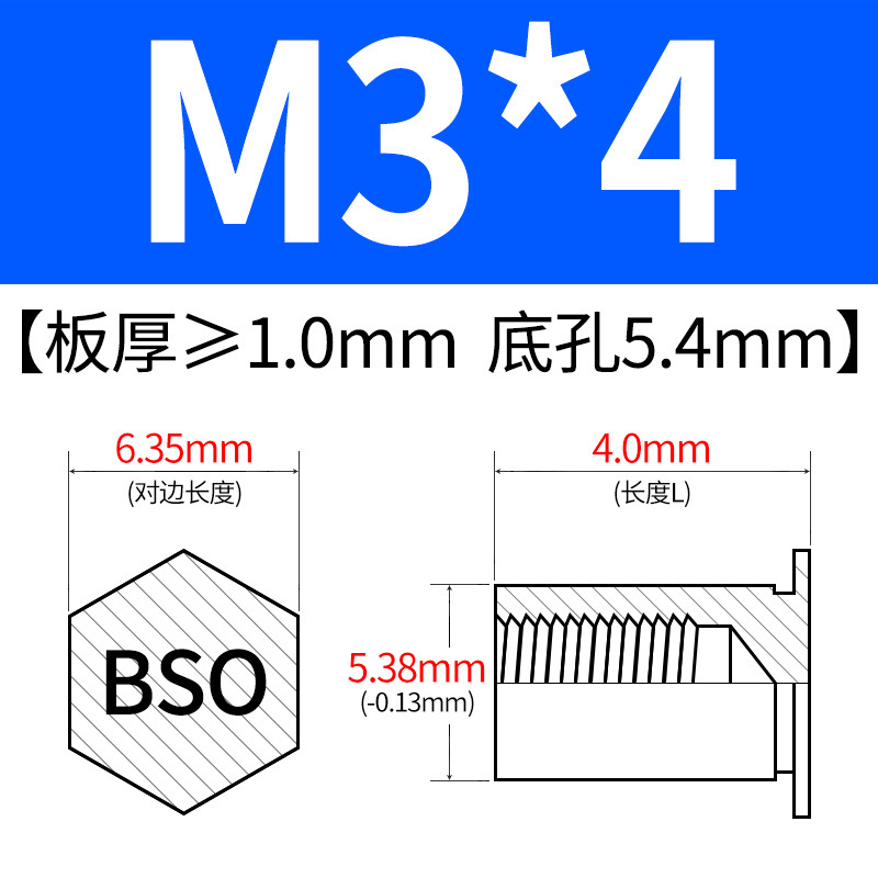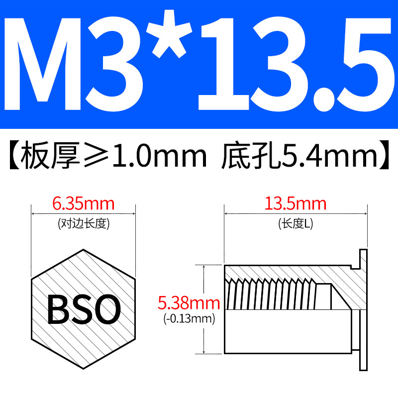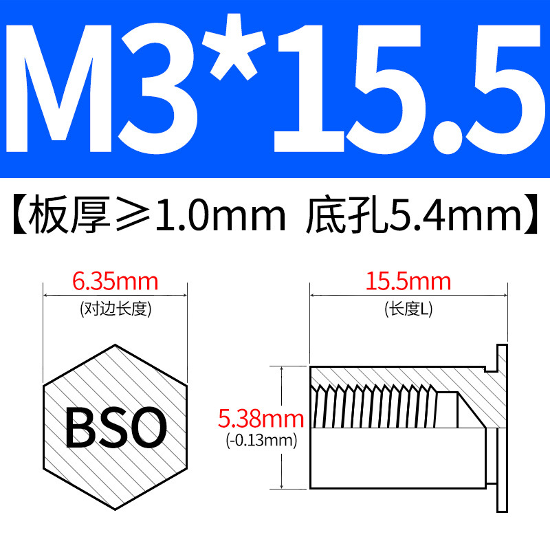 블라인드홀 프레스리벳 스템 BSO-3.5M3-L 대형판재 구멍 5.4mm 판금 케이스 리벳 프레스리벳 육각 리벳 너트 스템스토어 가기