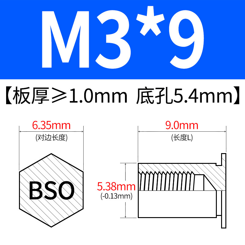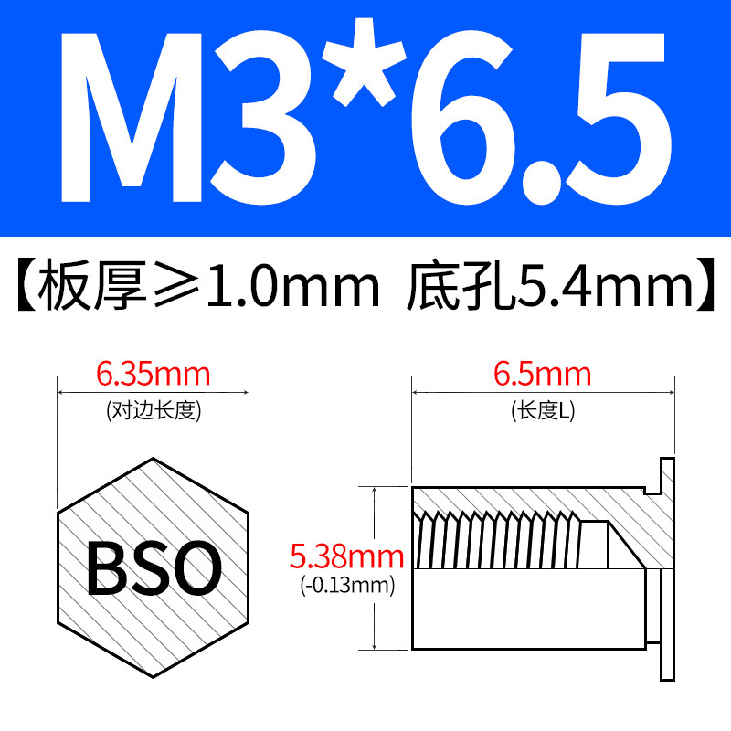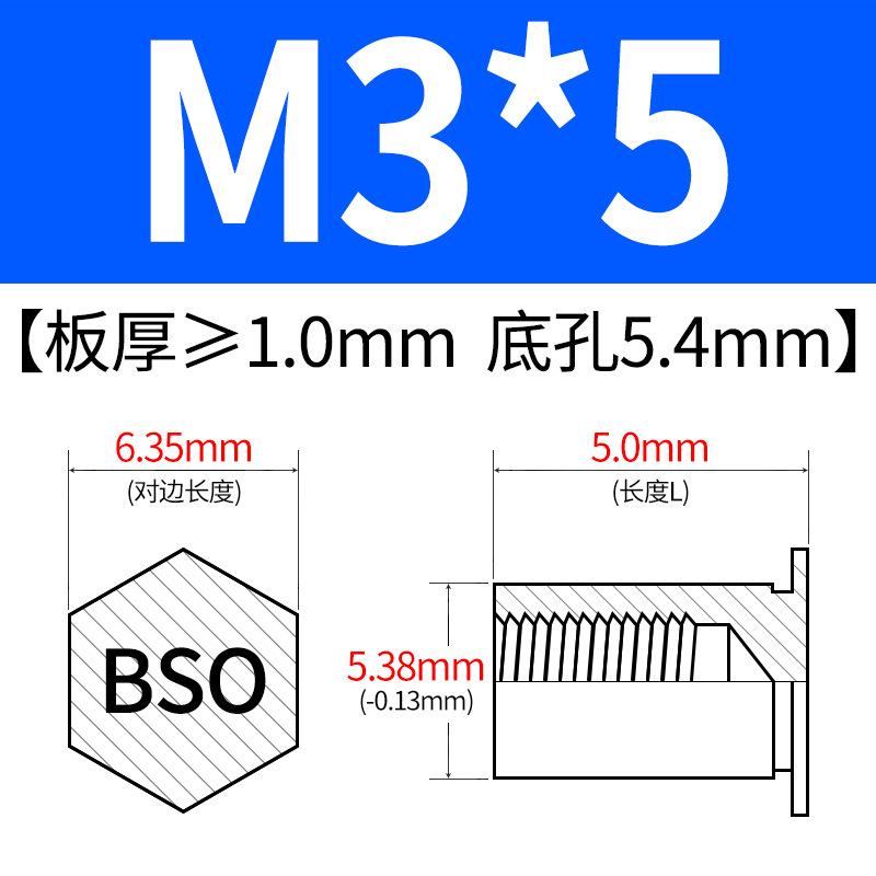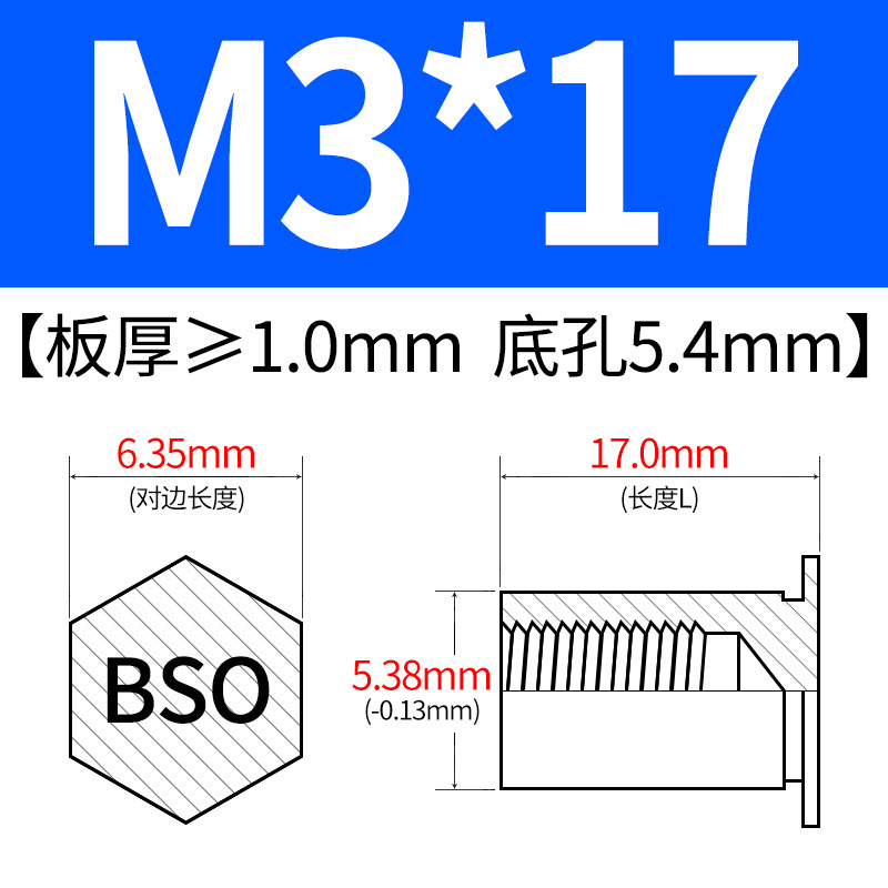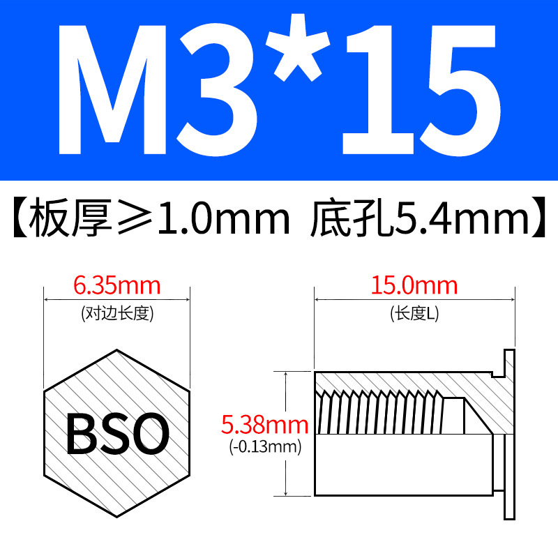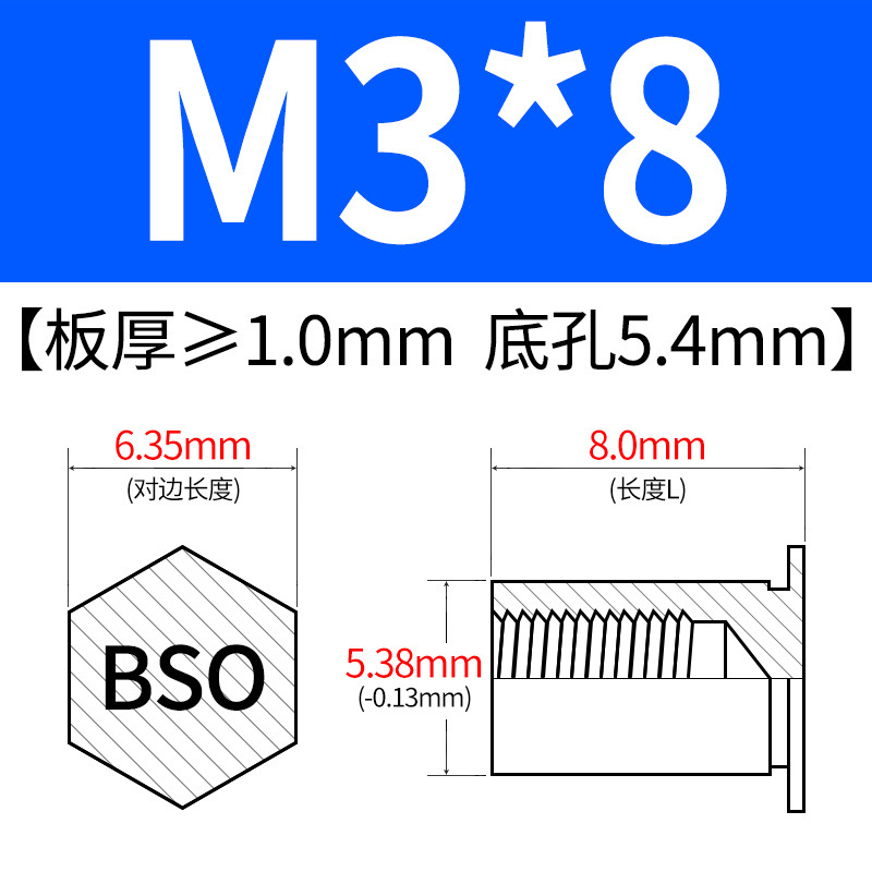 블라인드홀 프레스리벳 스템 BSO-3.5M3-L 대형판재 구멍 5.4mm 판금 케이스 리벳 프레스리벳 육각 리벳 너트 스템스토어 가기
