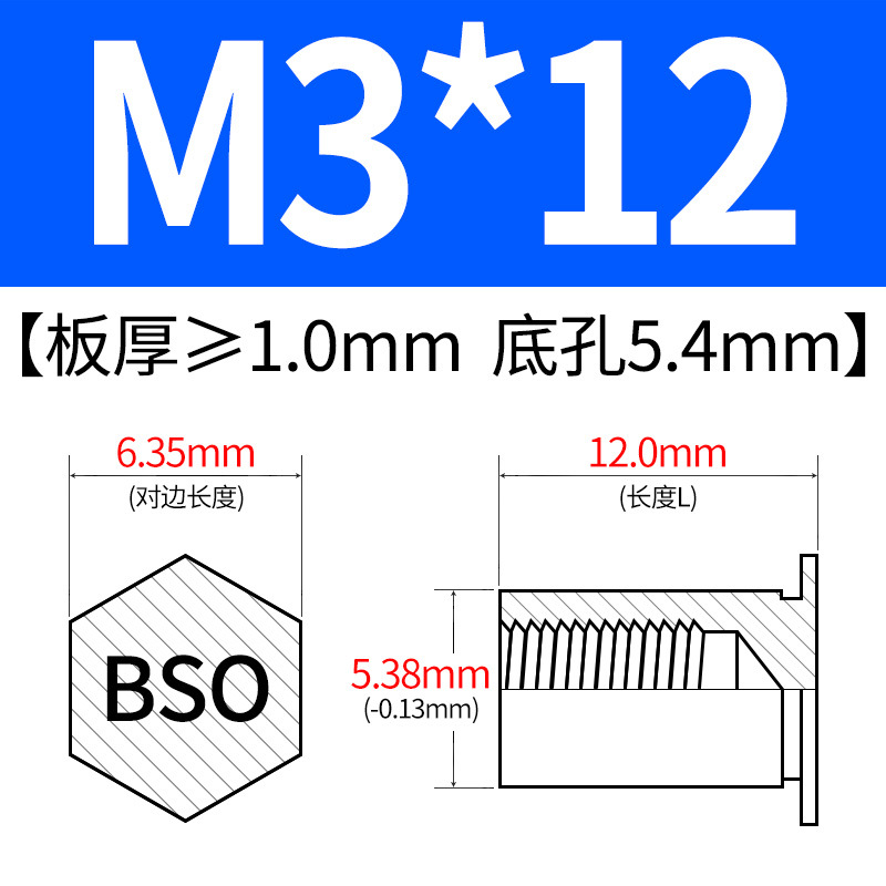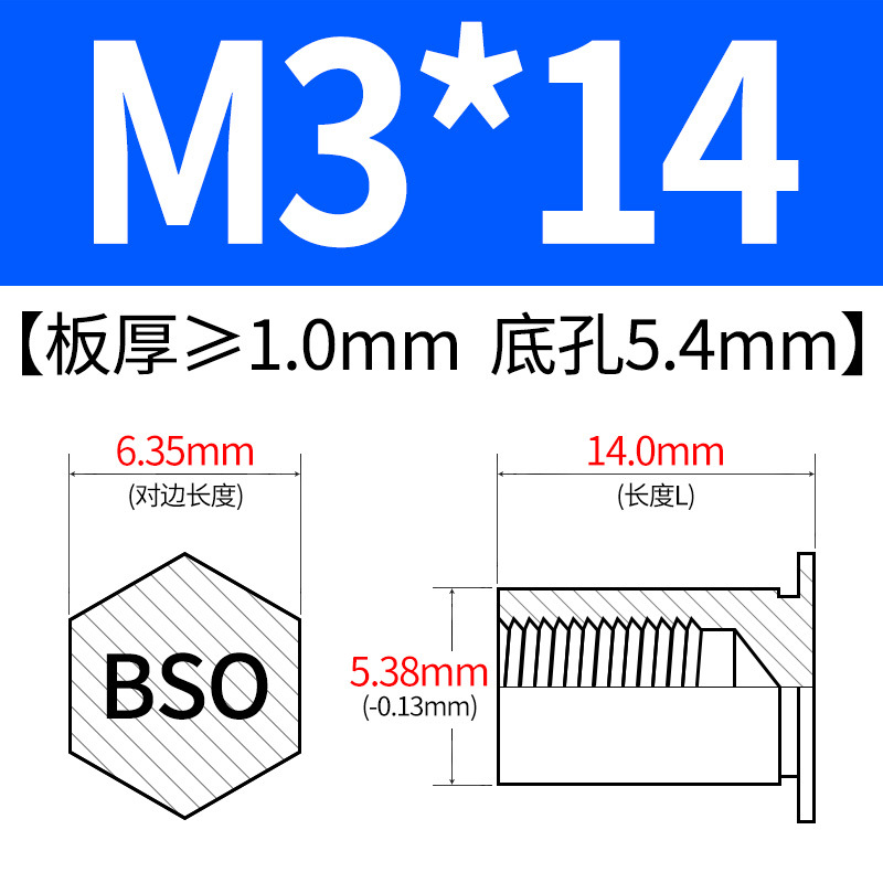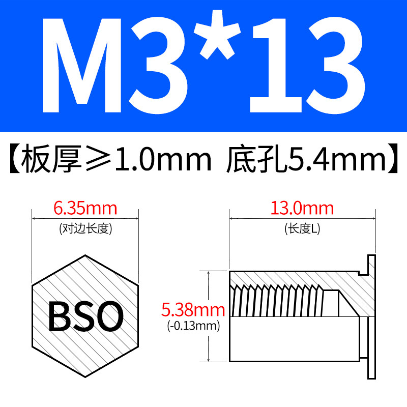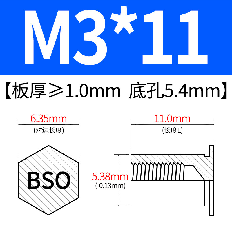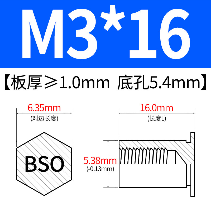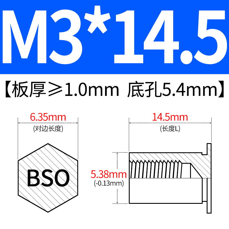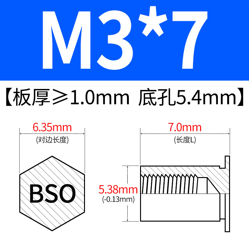 블라인드홀 프레스리벳 스템 BSO-3.5M3-L 대형판재 구멍 5.4mm 판금 케이스 리벳 프레스리벳 육각 리벳 너트 스템스토어 가기