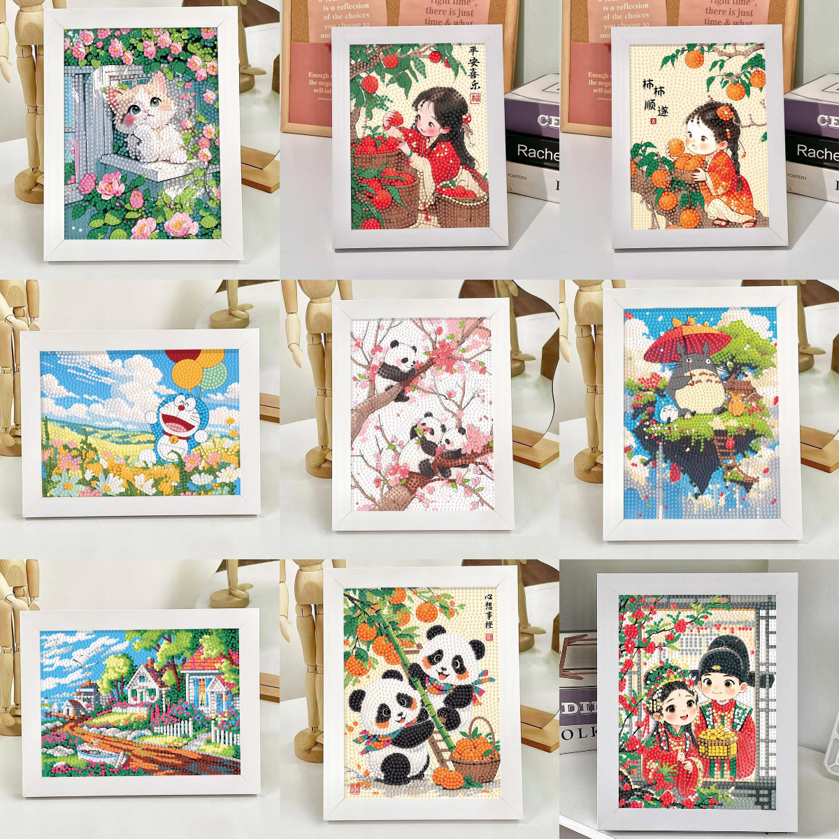 어린이 수제 DIY 다이아몬드 스티커 만화 동물 팬더 사진 프레임 장식 그림 핑 해피 도매스토어 가기