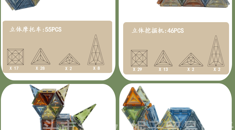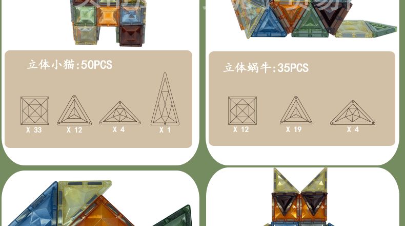 어린이 자연색 다이아몬드 모양 교육용 블록 조립 다양한 자석 조각 DIY 장난감 세트 도매스토어 가기