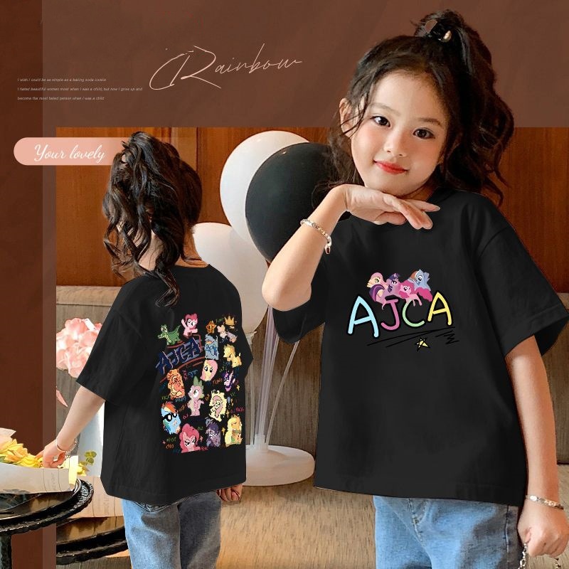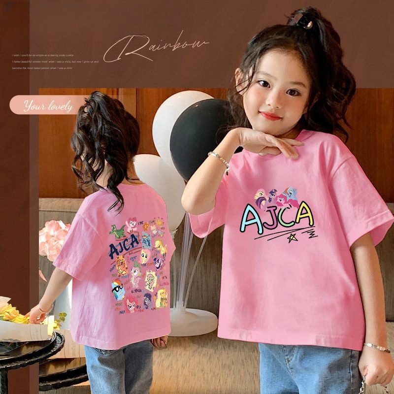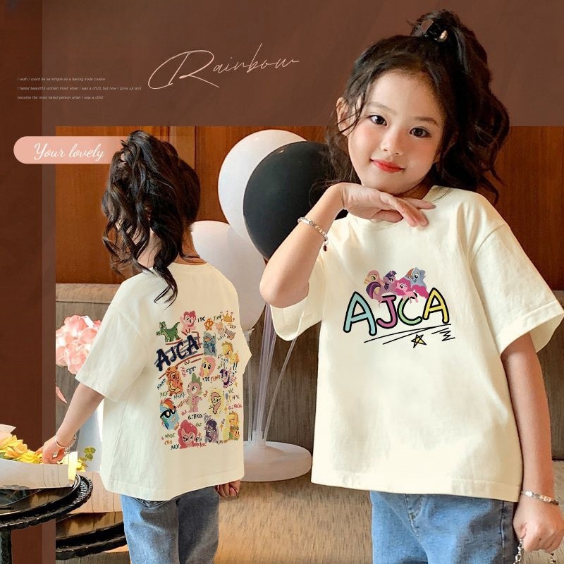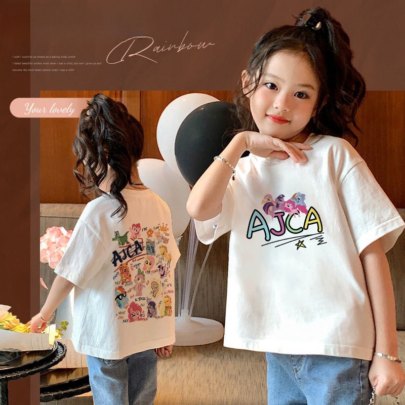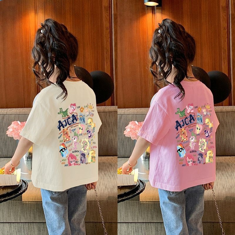 소녀 여름 반소매 코튼 티셔츠 여름 2025 새로운 스타일 중대형 어린이 느슨한 어린이 반소매 캐주얼 탑 트렌디스토어 가기