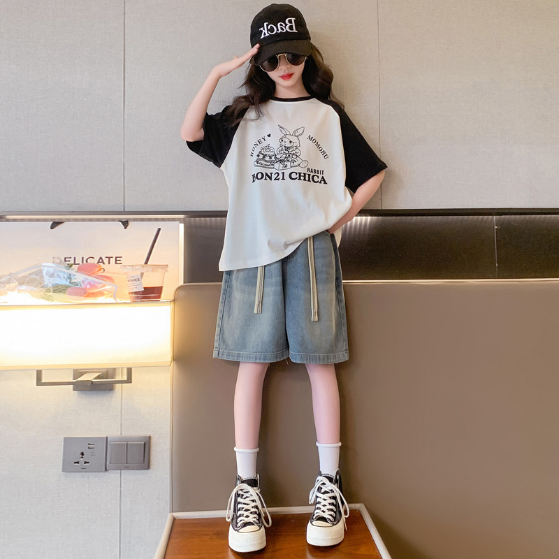 여아 여름 반바지 세트 2025년 신상 한국 스타일 아동 바지 여아 여름옷 얇은 데님 반바지