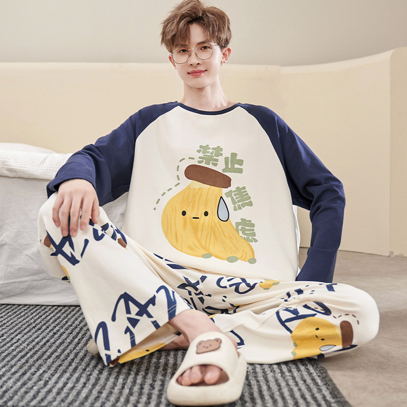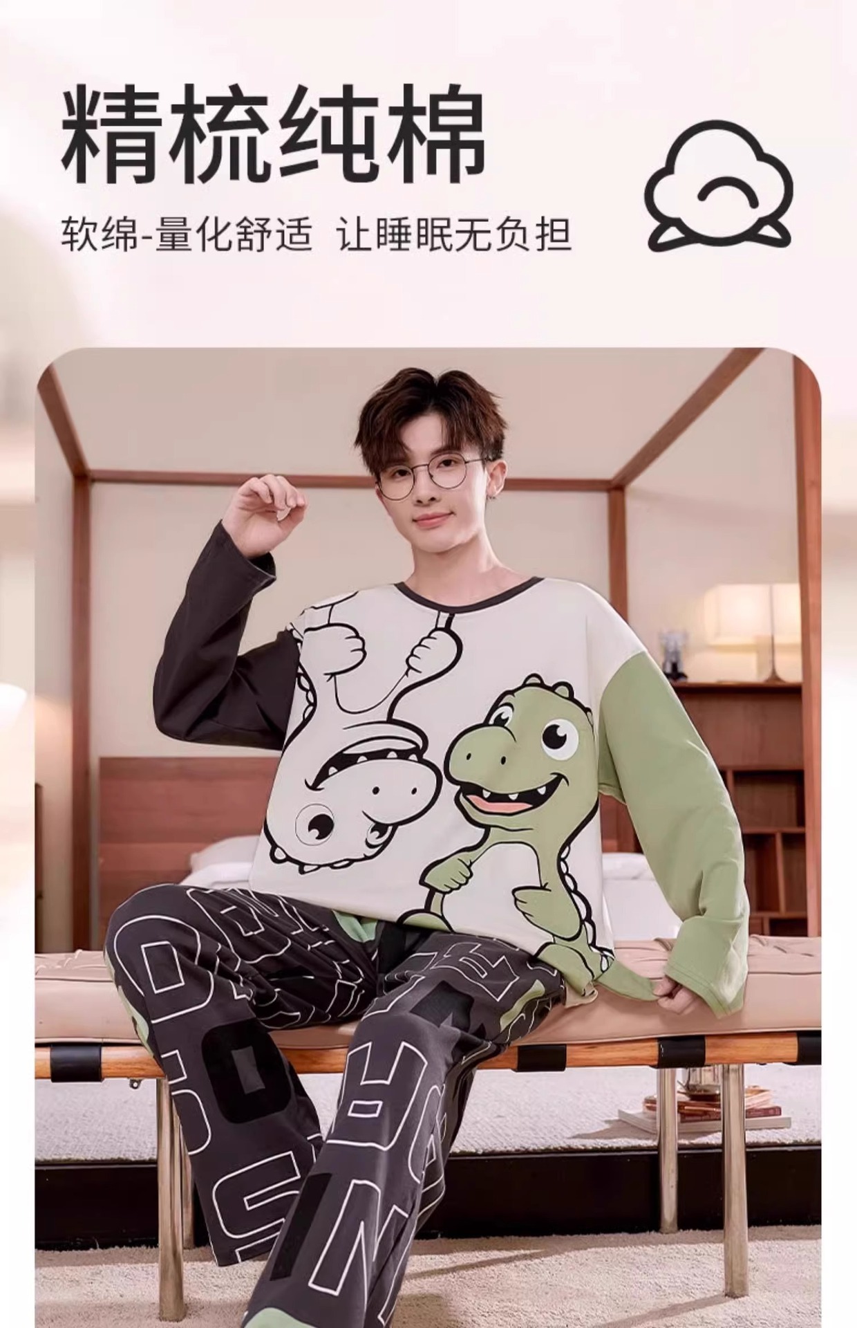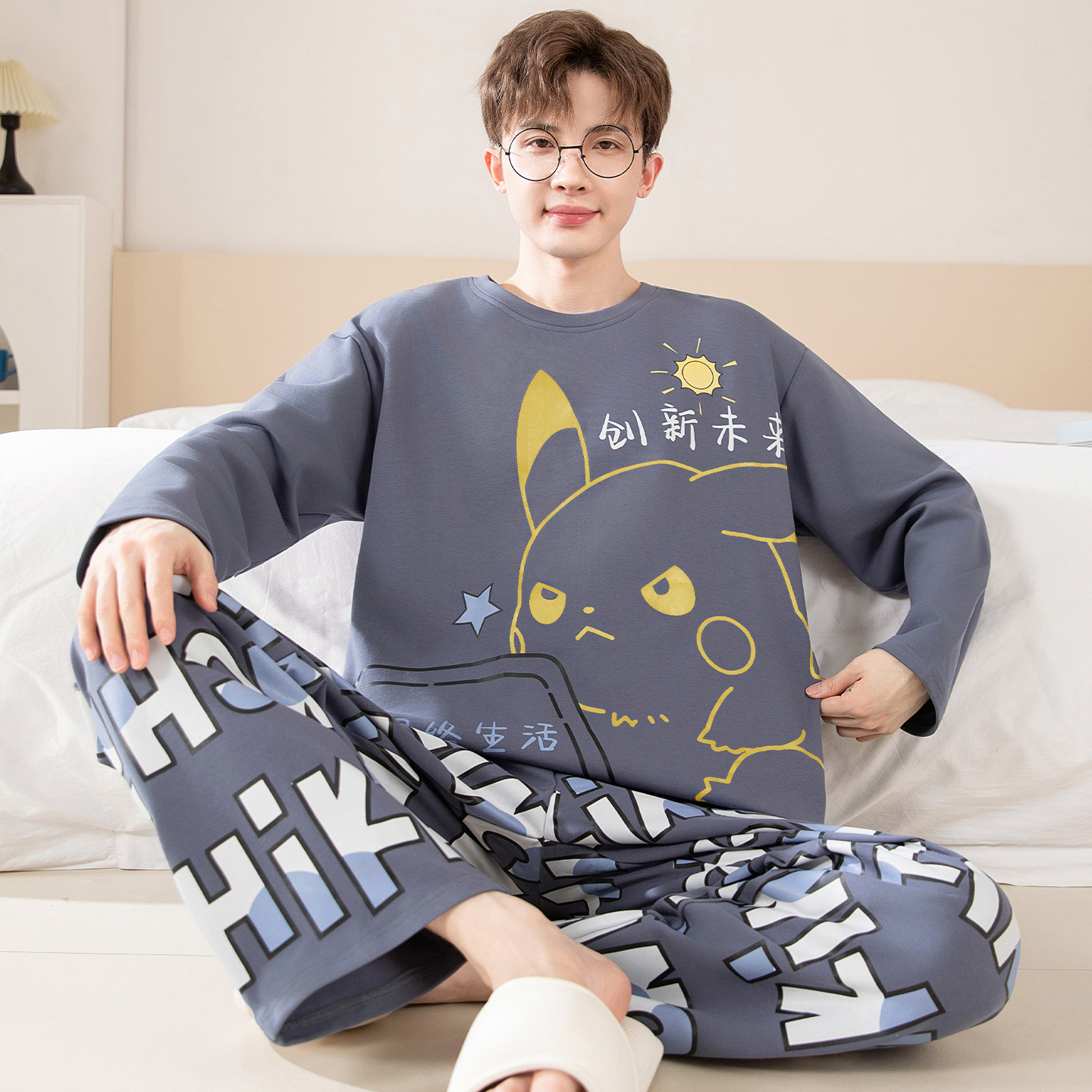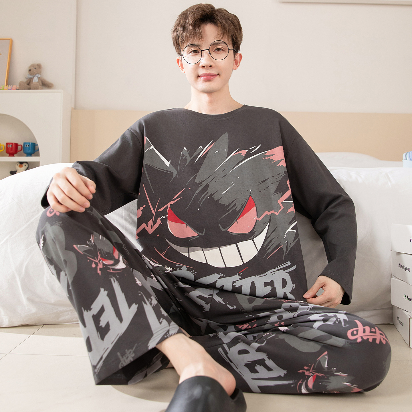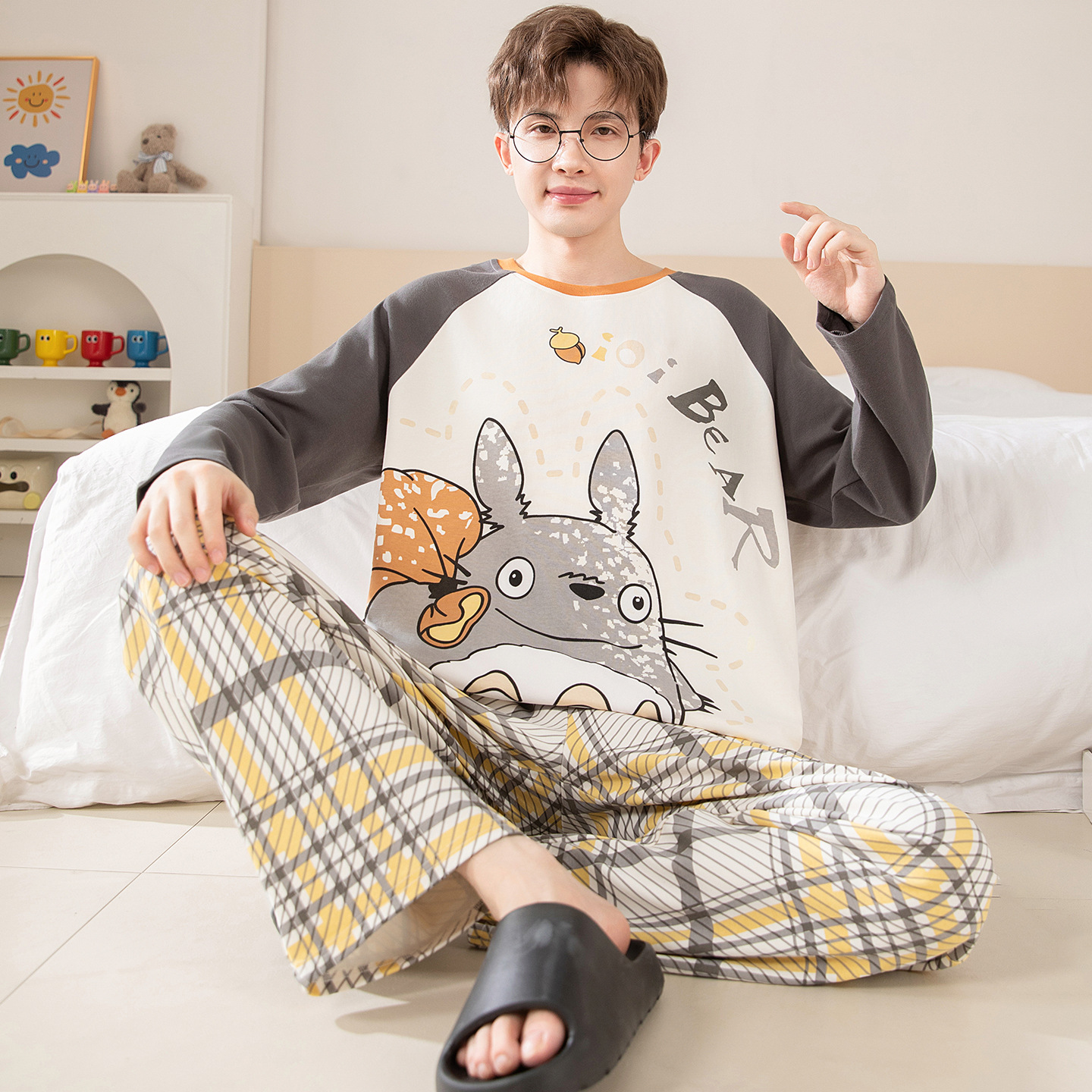 플러스 사이즈 플러스 사이즈 잠옷 남자의 순면 만화 십대 긴 소매 순면 봄과 가을 학생 가정 옷 세트 통통스토어 가기