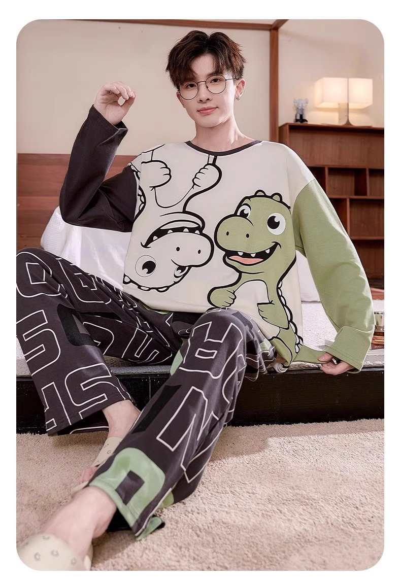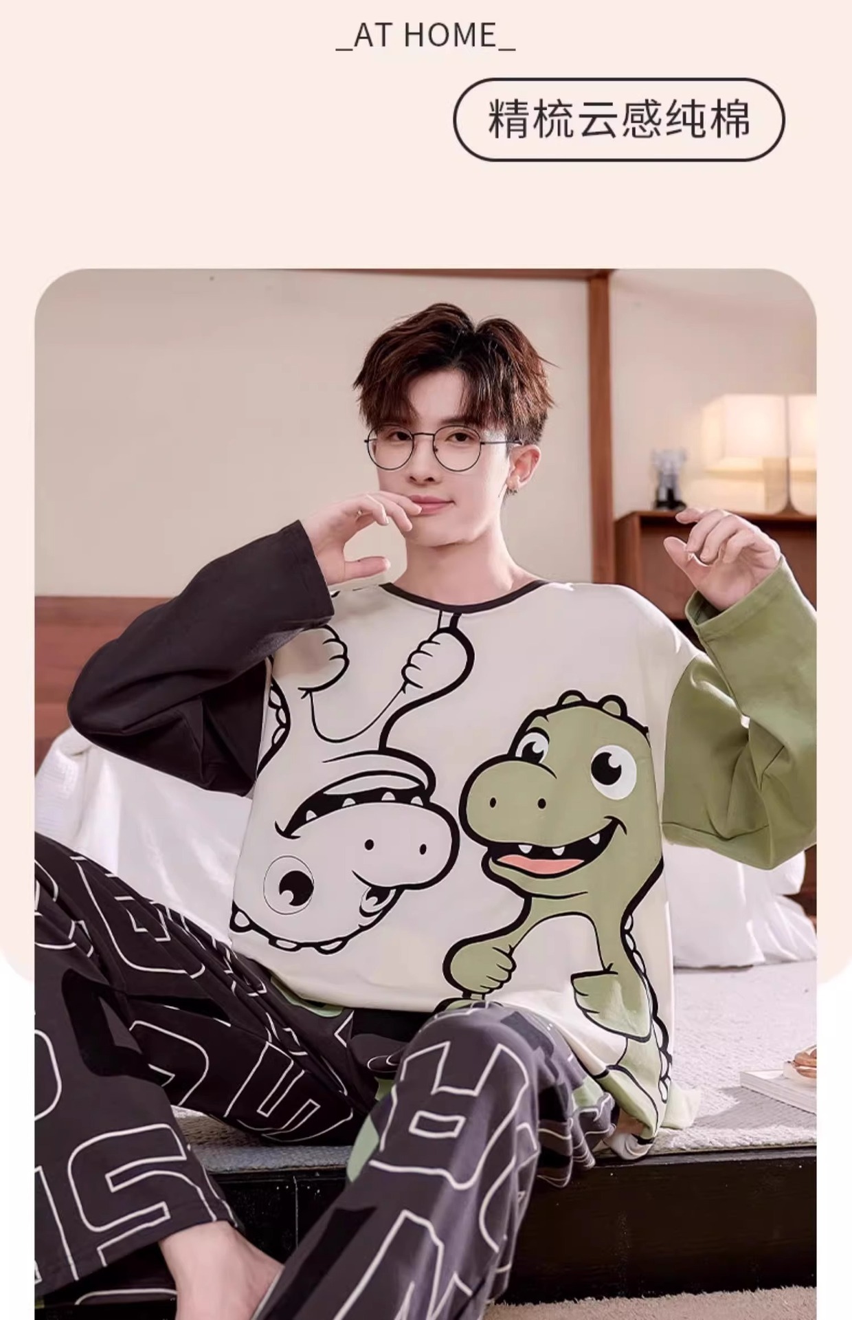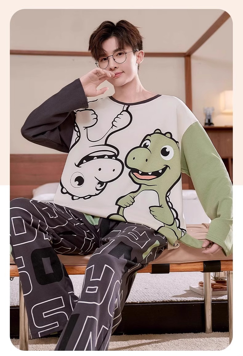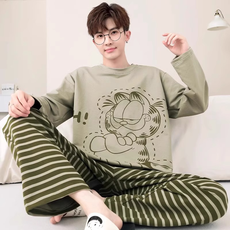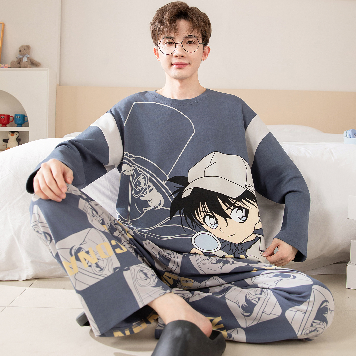 플러스 사이즈 플러스 사이즈 잠옷 남자의 순면 만화 십대 긴 소매 순면 봄과 가을 학생 가정 옷 세트 통통스토어 가기