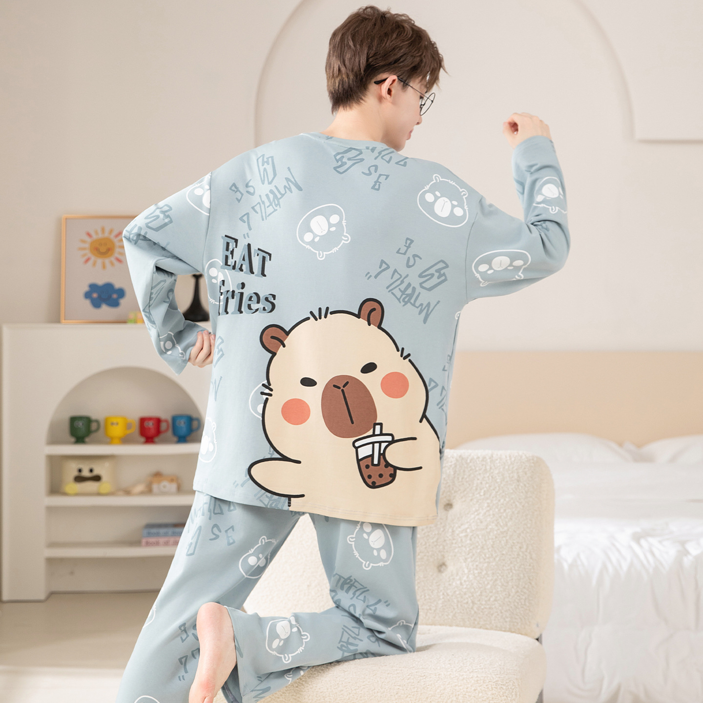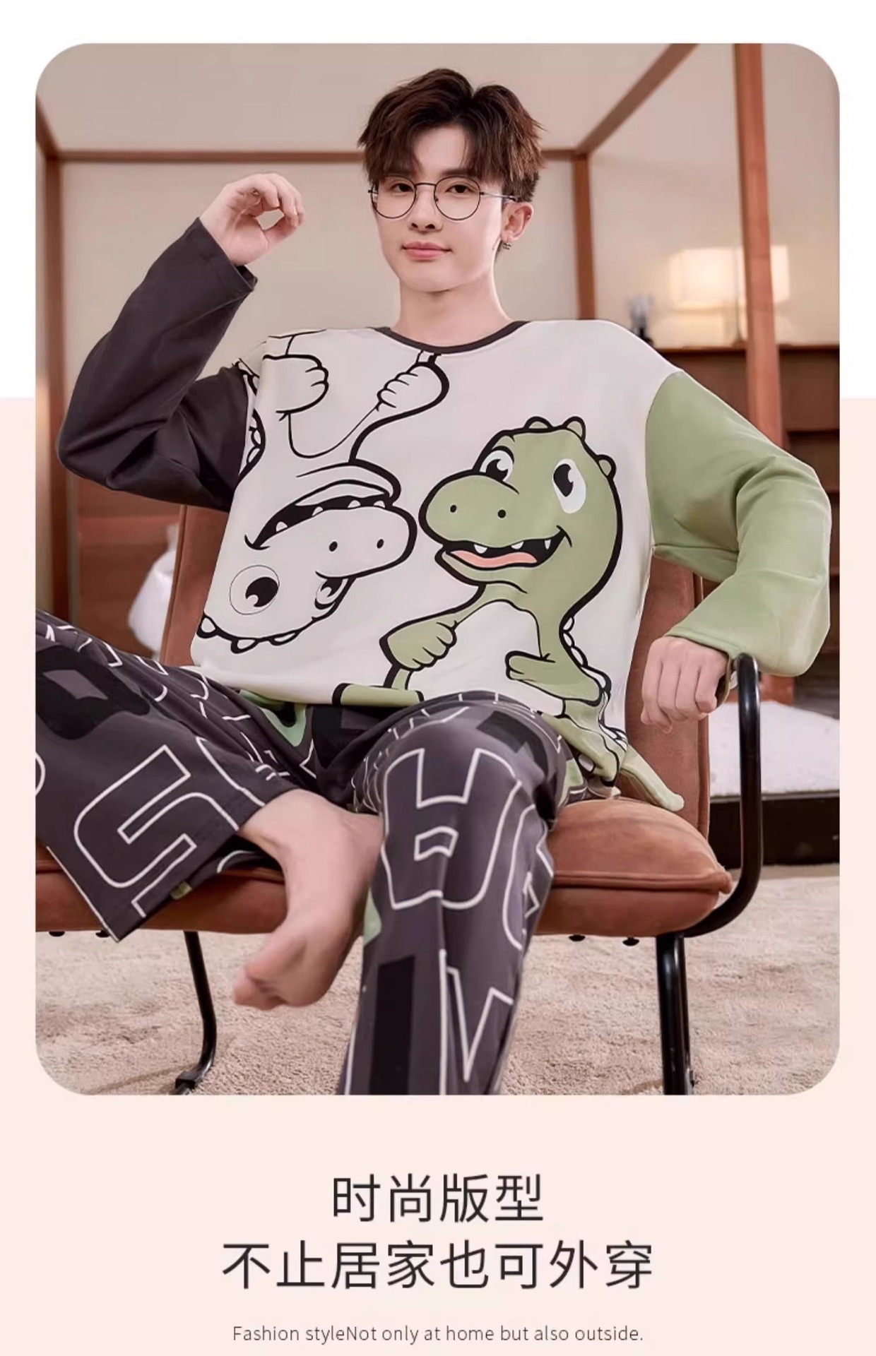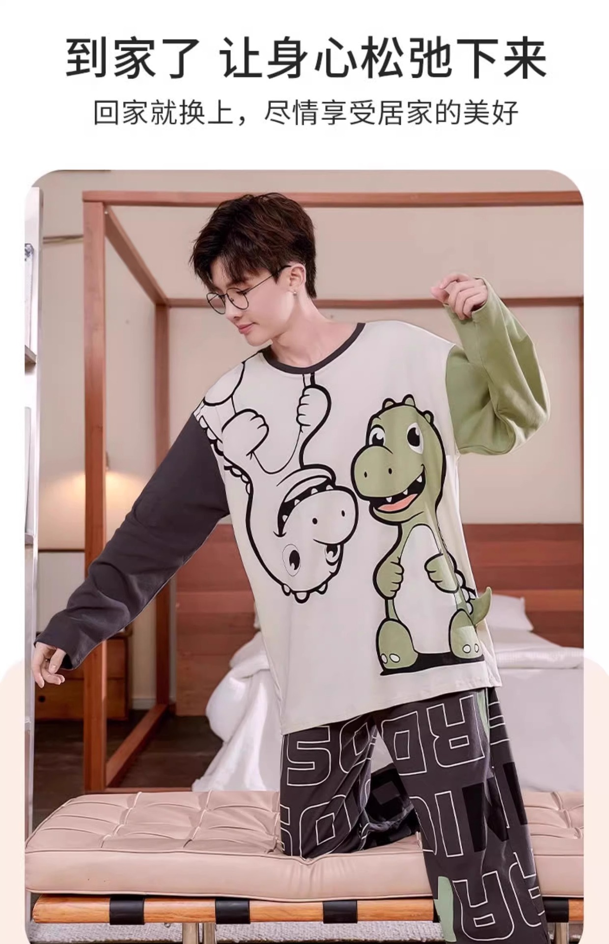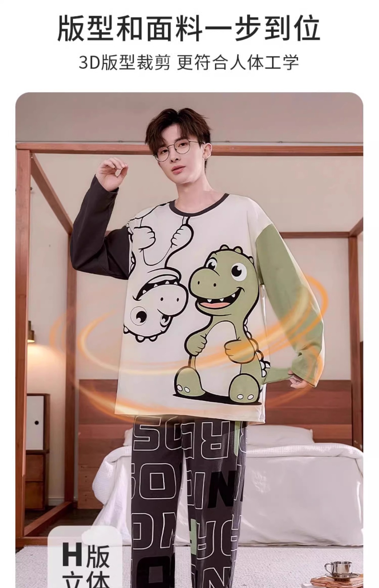 플러스 사이즈 플러스 사이즈 잠옷 남자의 순면 만화 십대 긴 소매 순면 봄과 가을 학생 가정 옷 세트 통통스토어 가기
