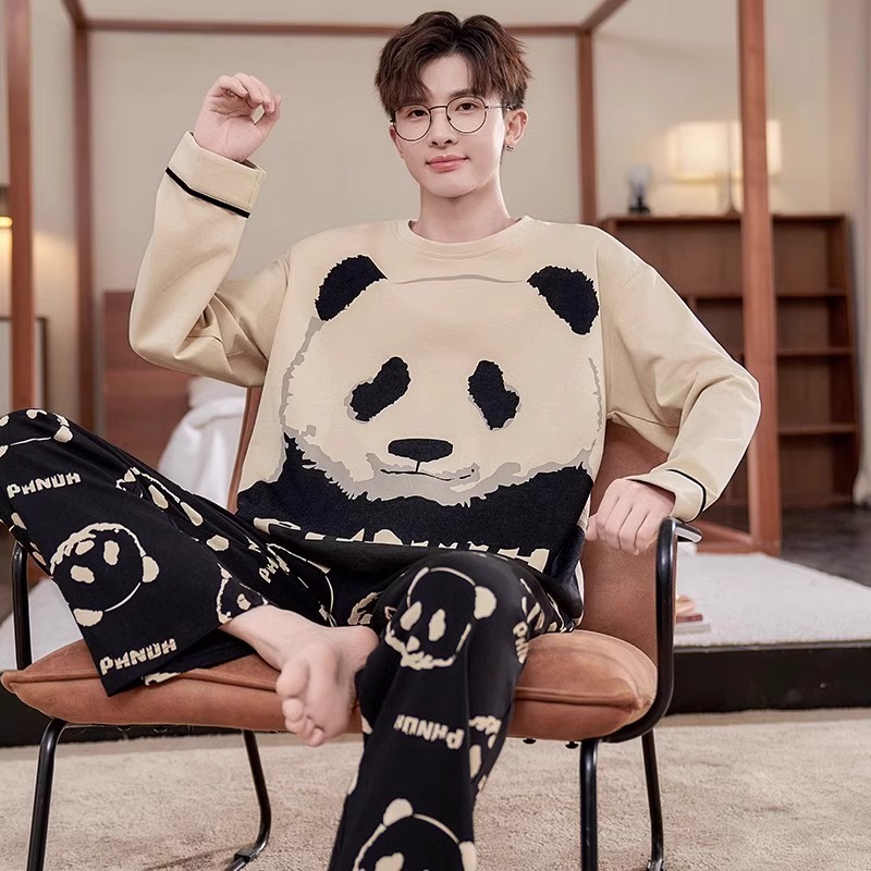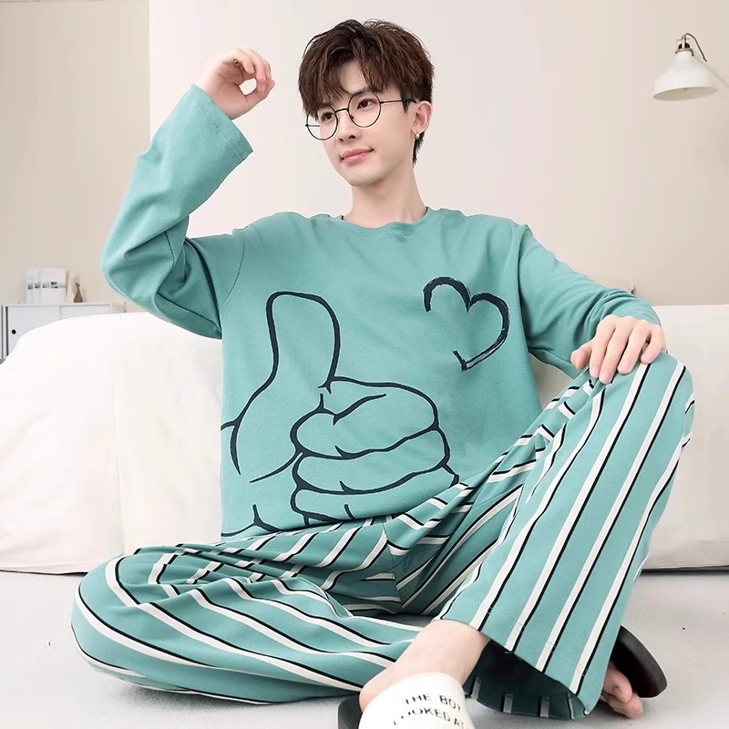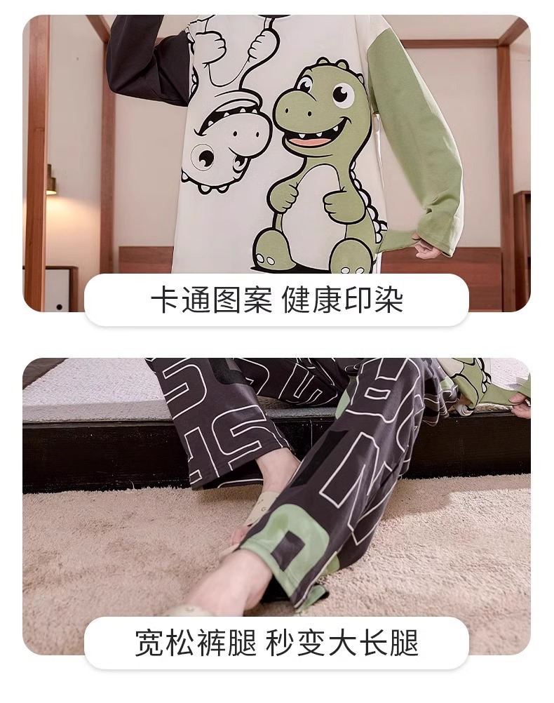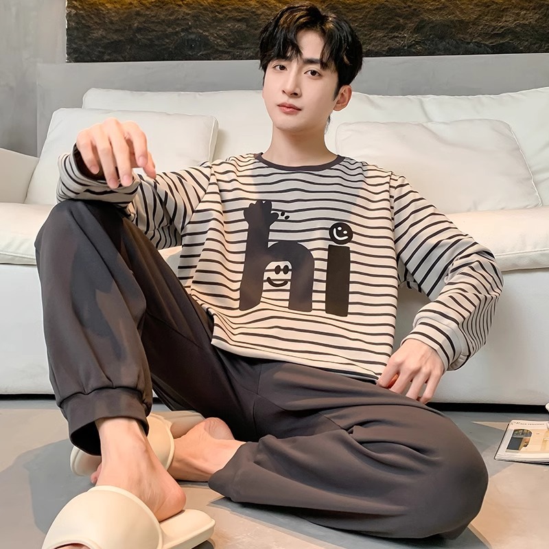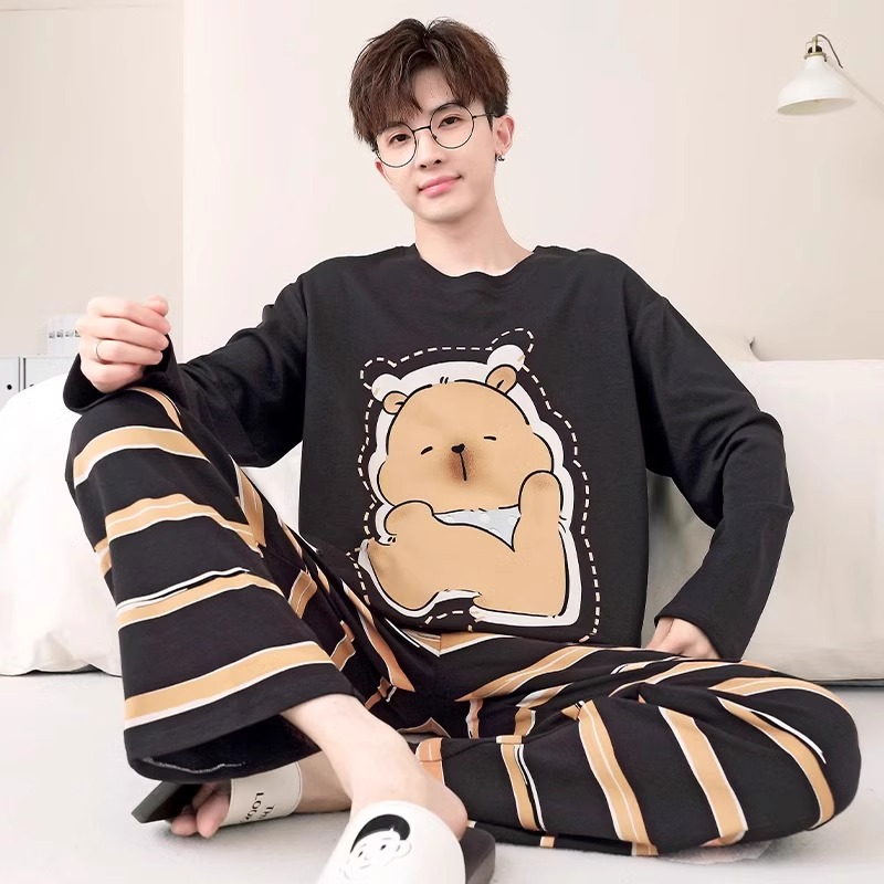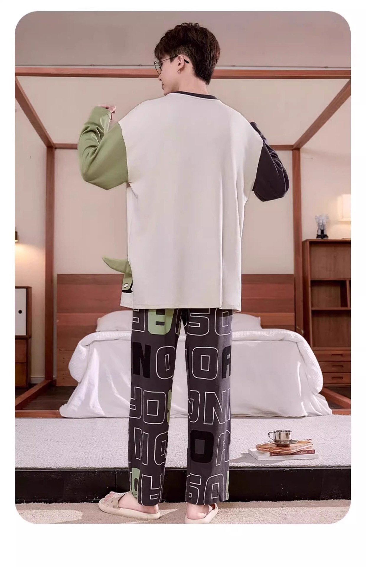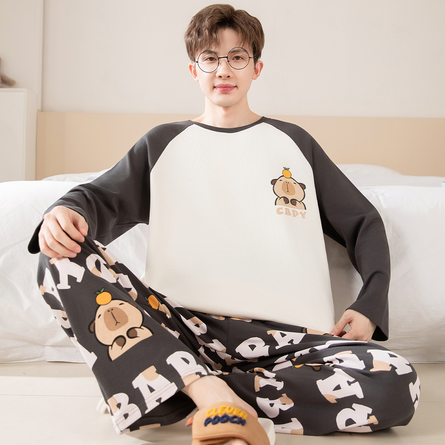 플러스 사이즈 플러스 사이즈 잠옷 남자의 순면 만화 십대 긴 소매 순면 봄과 가을 학생 가정 옷 세트 통통스토어 가기